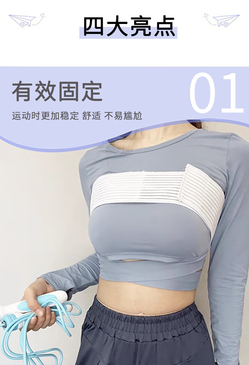Suican chest strap, chest compression strap, running high-intensity bandage, breast protection prosthesis, fixed breast shaping belt after breast augmentation, 150cm white elastic chest strap