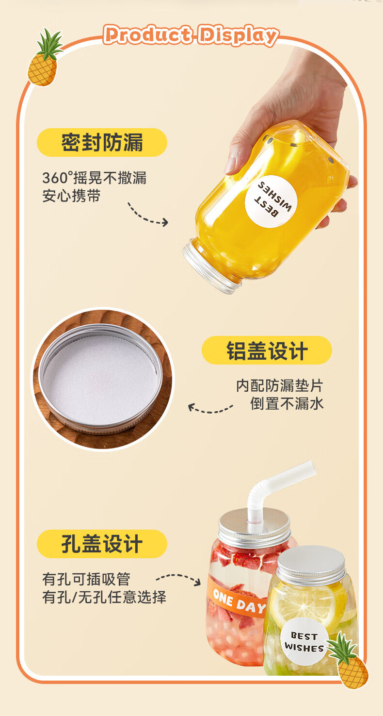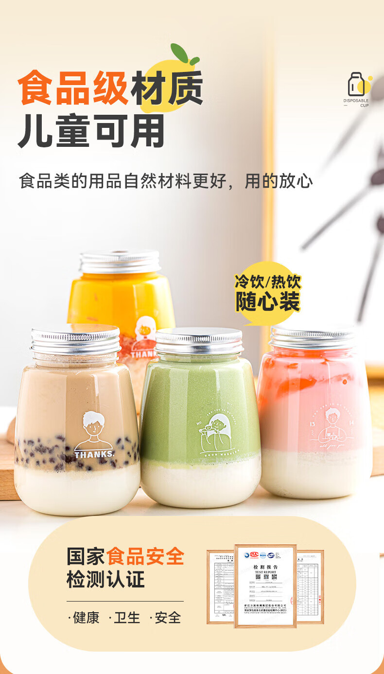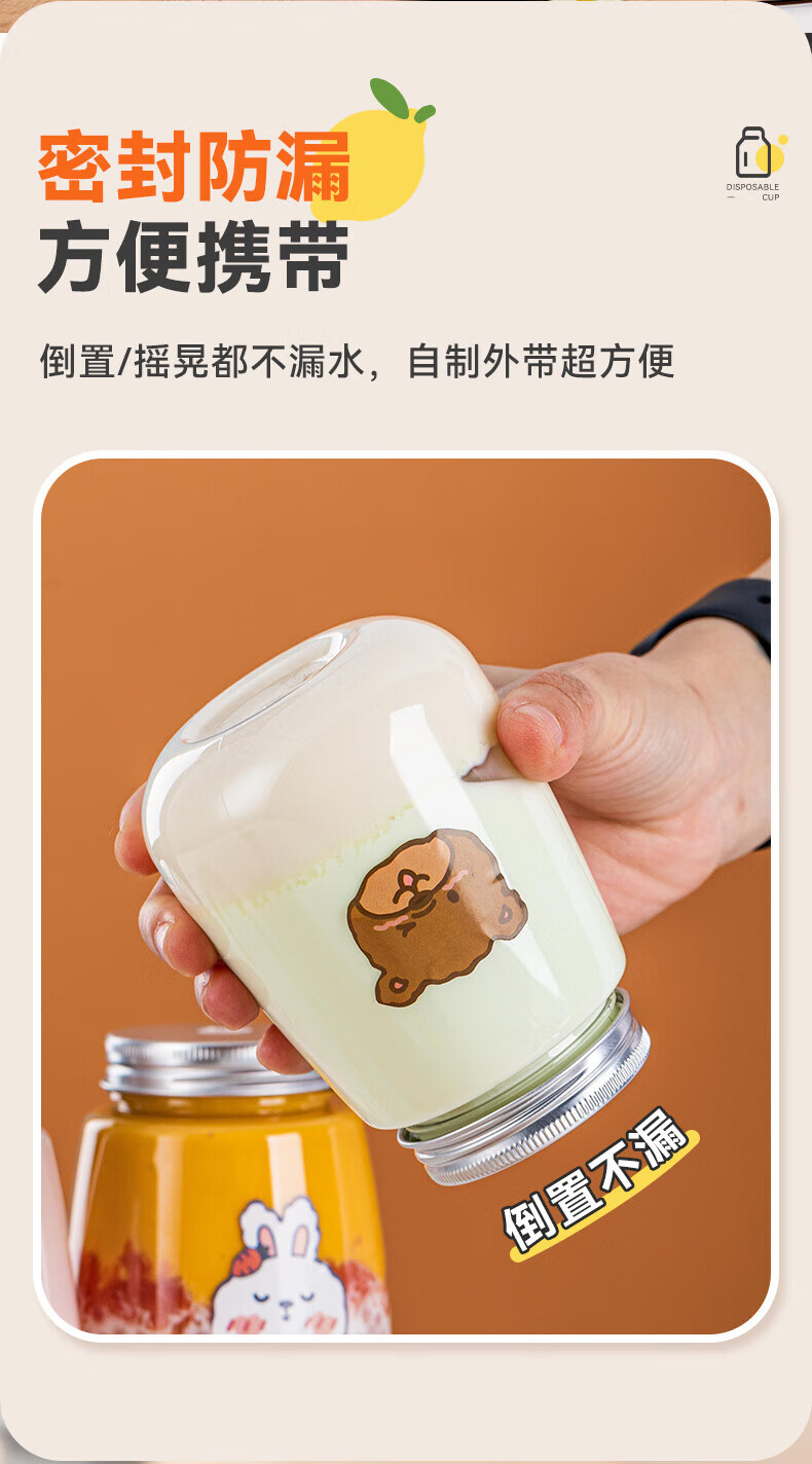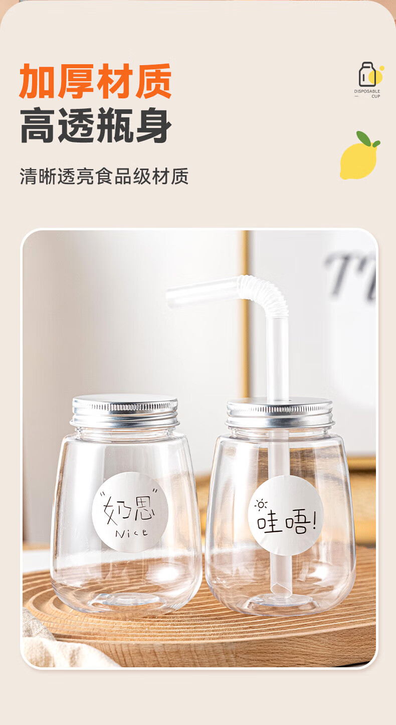 Haofanjie Milk Tea Cup Milk Tea Cup Recyclable Disposable Cold Drink Pear Paste Bottle with Straw Food Grade with Lid 360ml Fat Model 10 Packs with Holes and Stickers