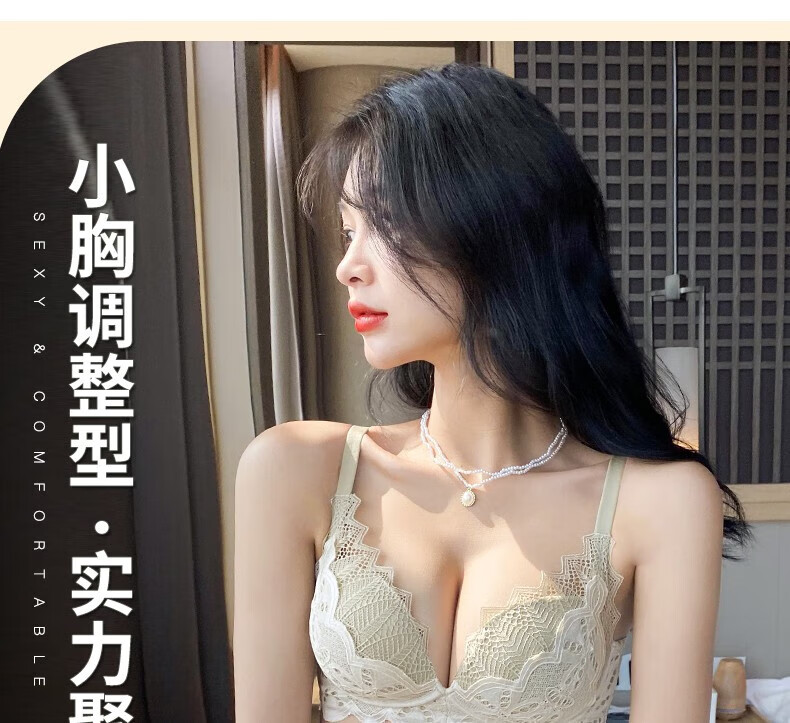 欧迪芬内衣女小胸聚拢显大无钢圈文胸收副乳上托调整型性感蕾丝纯欲胸罩 黑色套装 80B =36b