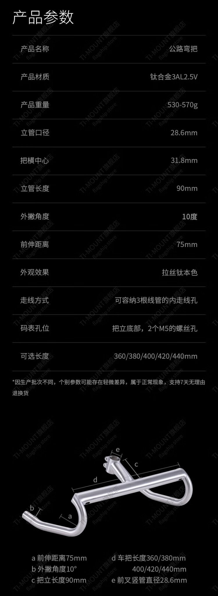 TI-MOUNT titanium alloy road bicycle bent handlebar integrated stem internal cable routing with computer hole position outwards racing bicycle handle 31.8x360