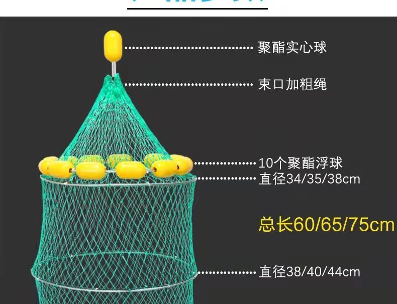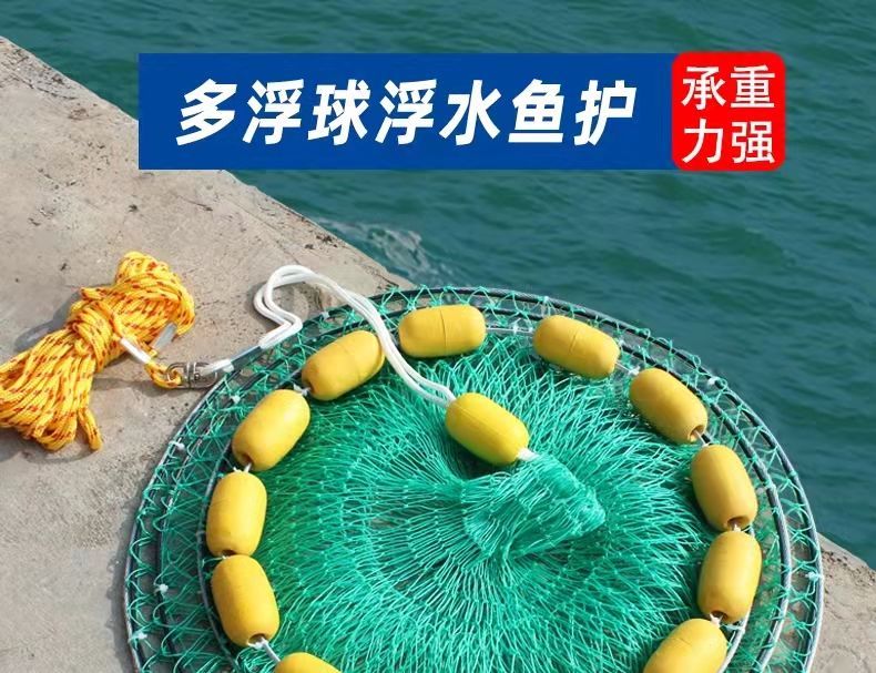 MieLanat multi-floating ball sea fishing protection, small fish protection, boat fishing protection, rock fishing protection, reservoir fishing protection, nylon net floating fish protection, 0.7m 40cm, three floating balls, thick steel wire