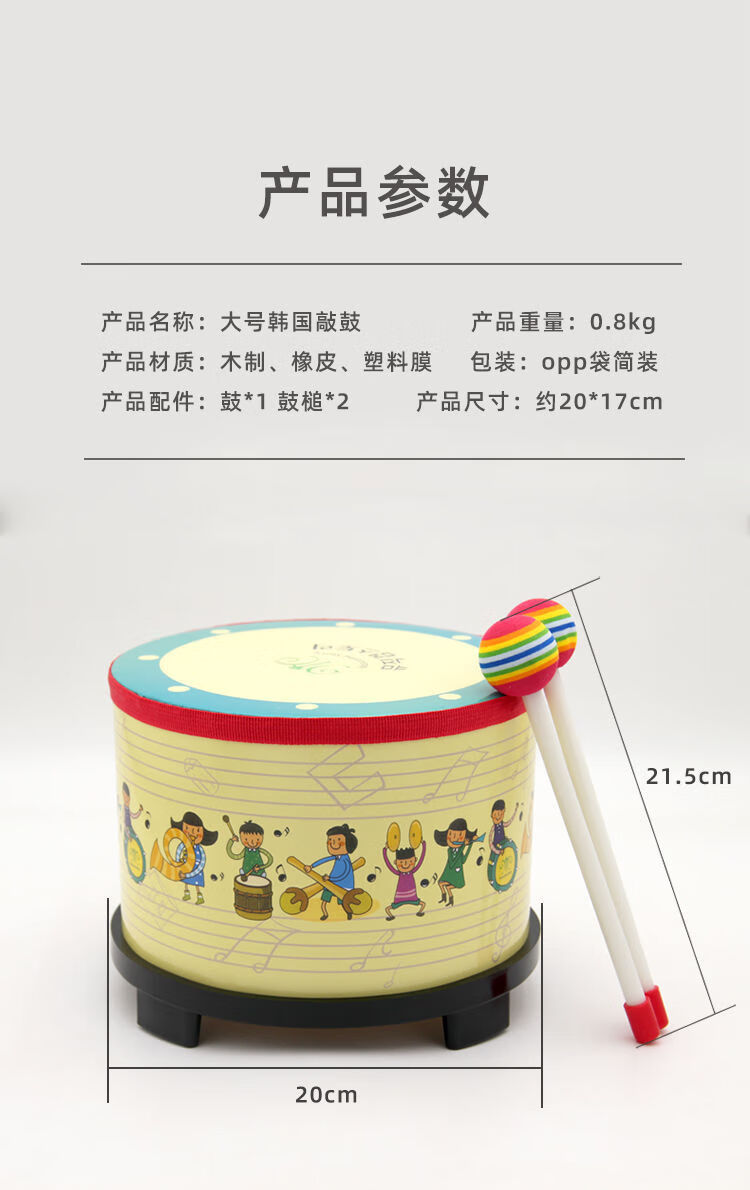 Beimuhui infant early education music toy Orff musical instrument percussion drum children's intellectual toy 1-2-3-4 years old Korean version percussion drum (including 2 hammers)