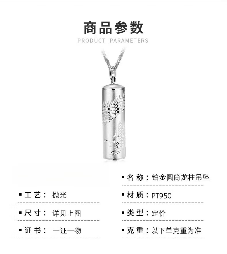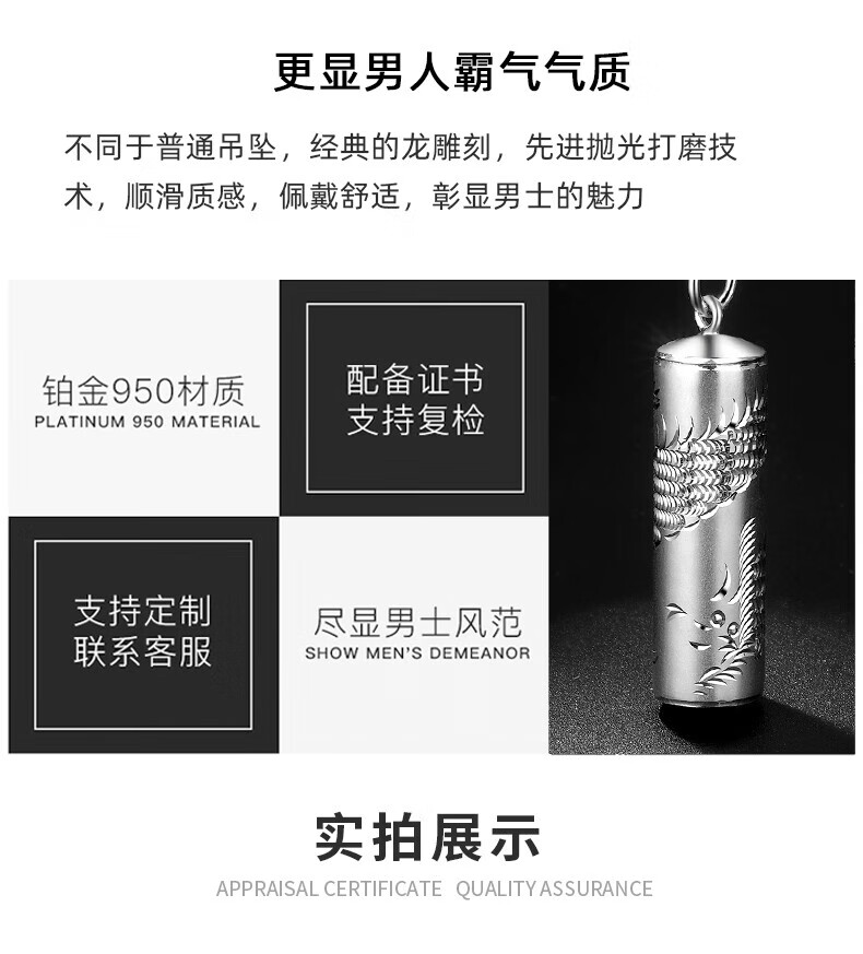 Yubo Workshop (YUBOGONGFANG) men's platinum pt950 pendant dragon column platinum pendant carved platinum pendant pt950 men's necklace pendant weighs about 1.51 grams, height 2.5CM*width 0.4CM
