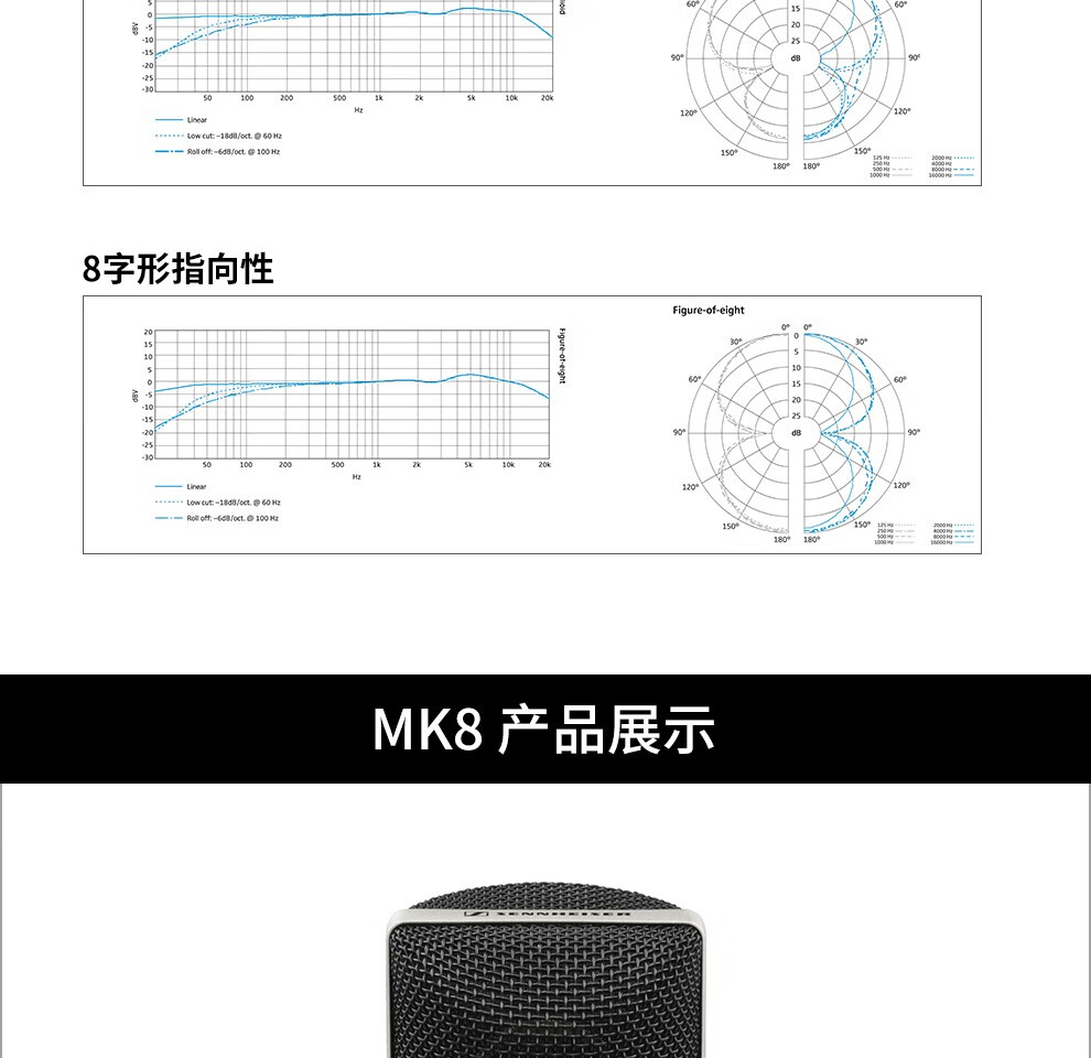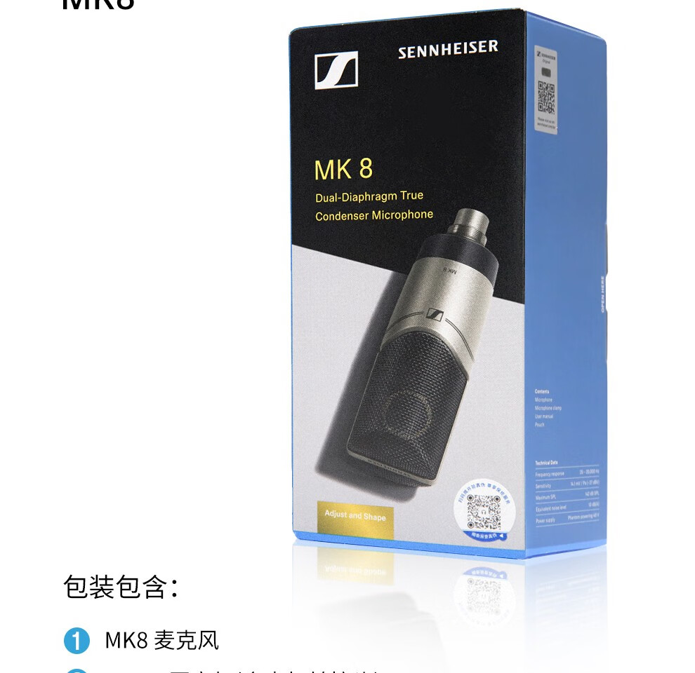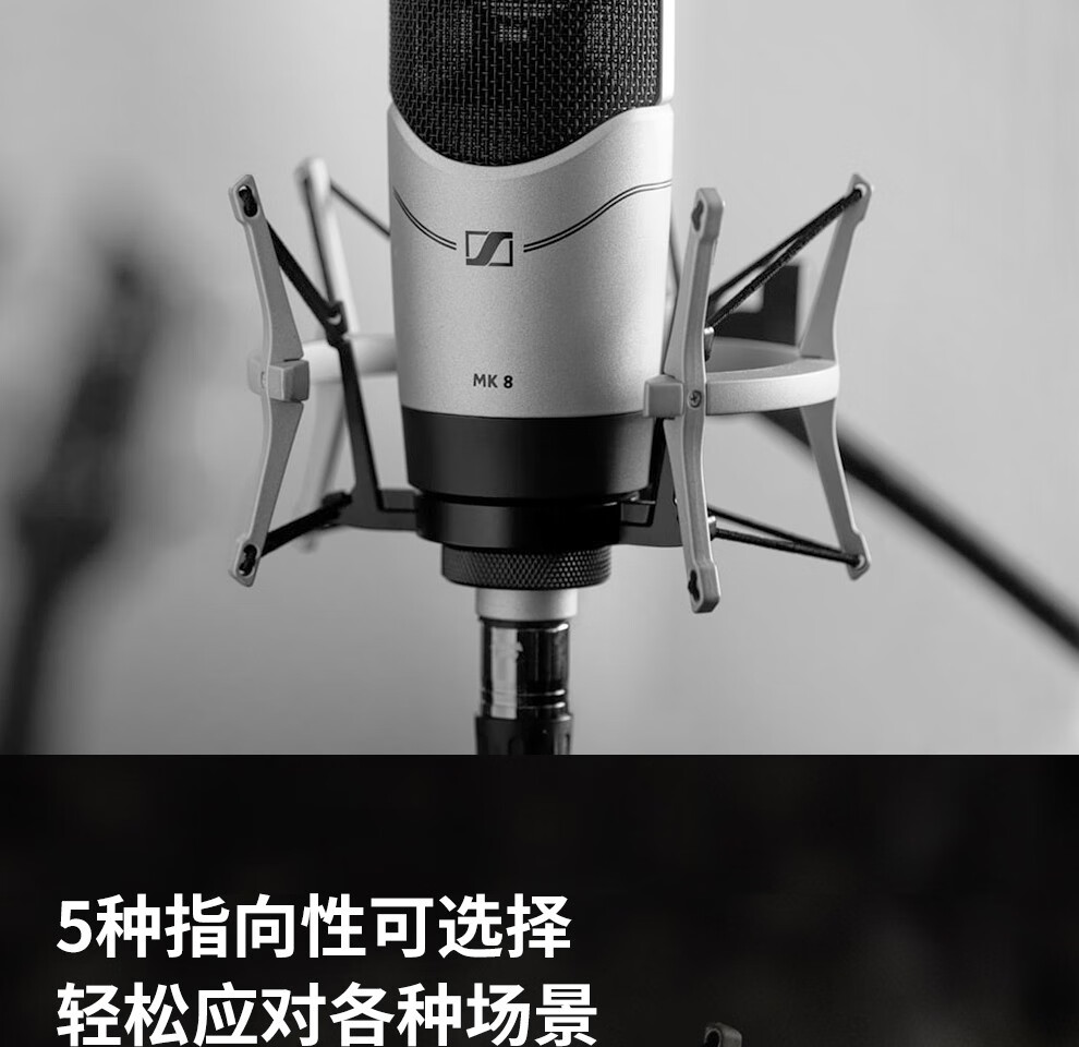 Sennheiser MK8 professional recording condenser microphone anchor live singing dubbing chorus instrument pickup microphone dual diaphragm multi-directional adjustable MK4 condenser microphone imported from Germany