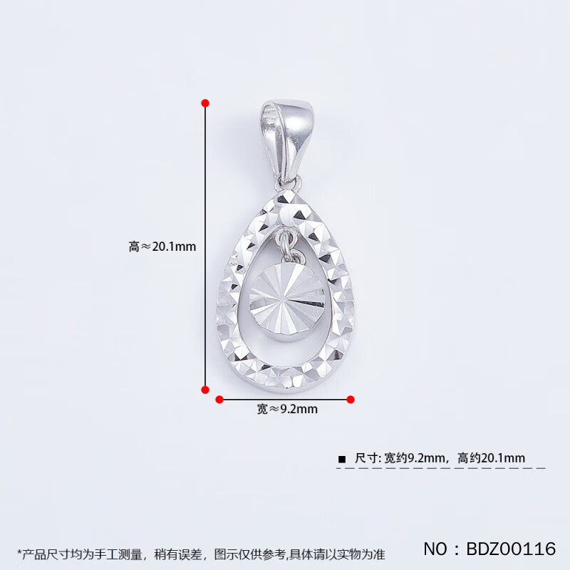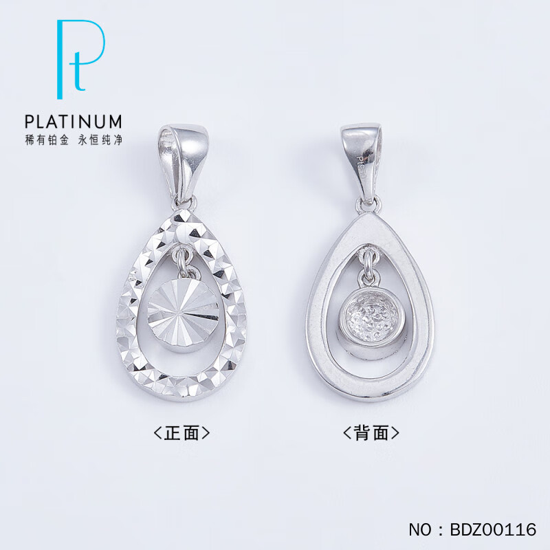 Jibaolou PT950 platinum pendant imitation diamond drop-shaped platinum pendant (excluding chain) 2.04g