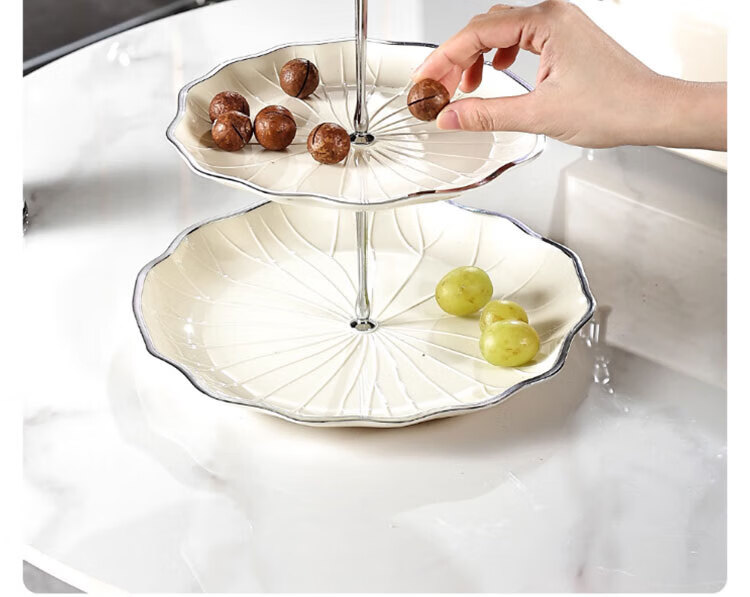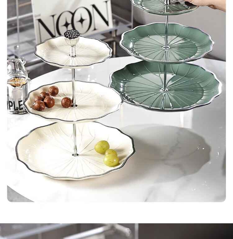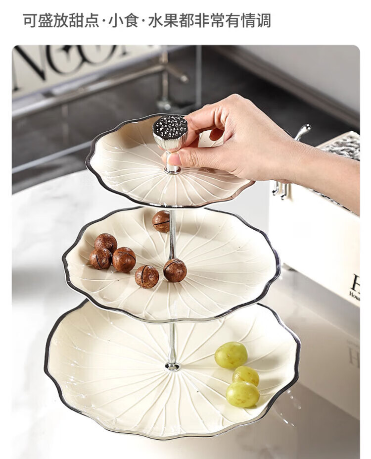 Haofanjie Dessert Rack Multi-layer Fruit Plate Rack European-style Fruit Plate Cupcakes Three-tier Dessert Tray Rack Pastry Tea Break Display Lotus Style丨Three Tiers Phnom Penh*Milk White