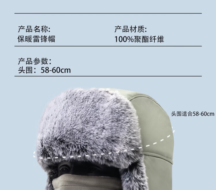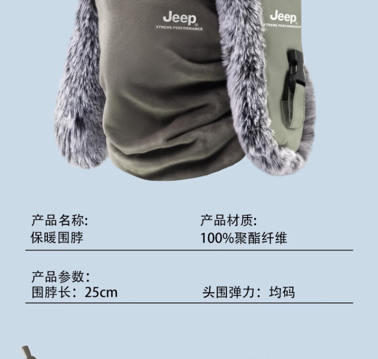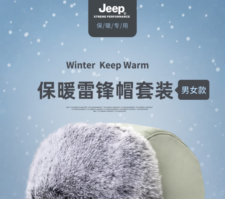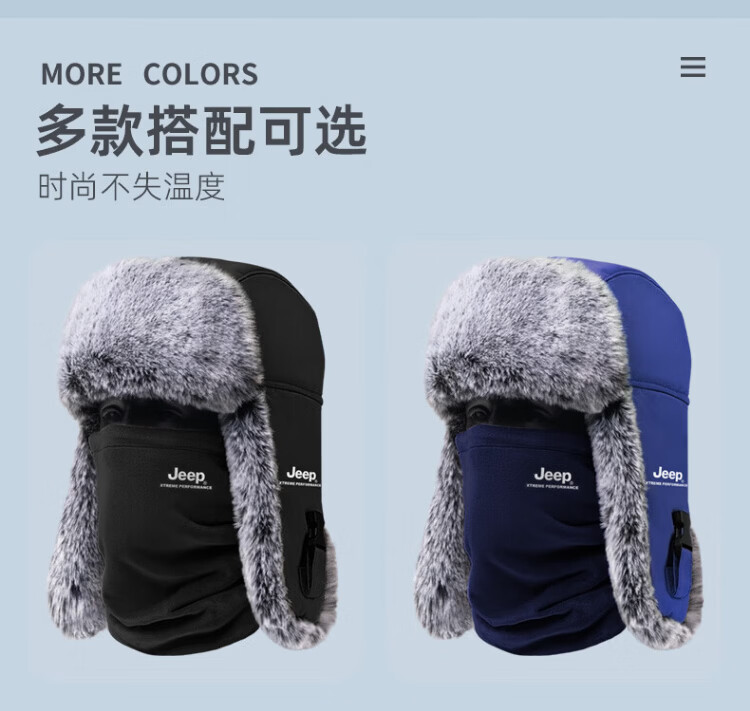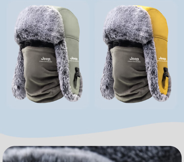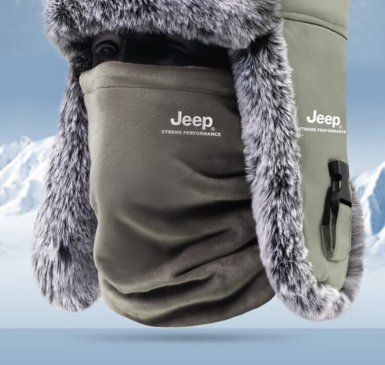 JEEP Lei Feng Hat Men's Winter Neck Protection Cold Mask Plus Velvet Thickened Ear Protection Cotton Hat Winter Hat Northeast Warm Hat Men's Light Gray Warm Suit