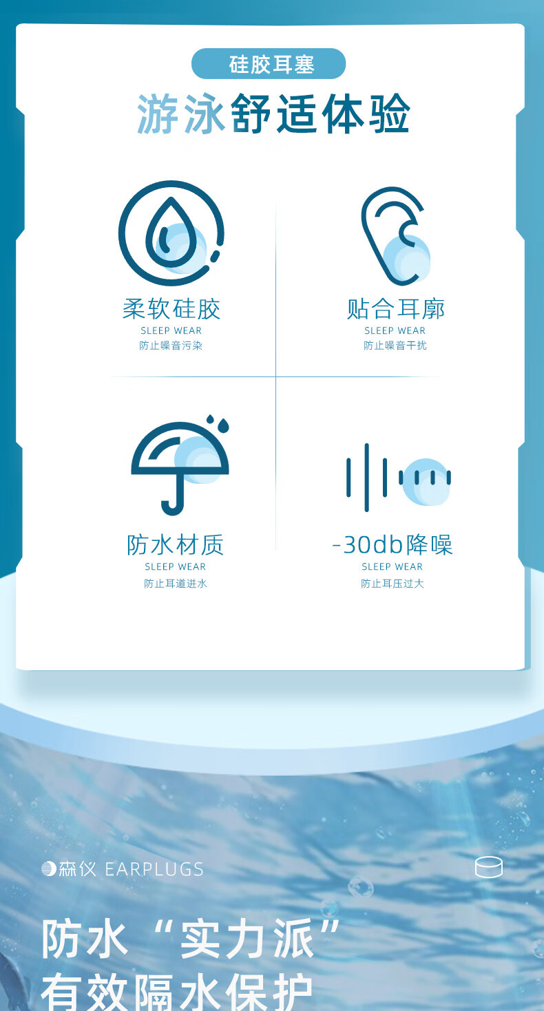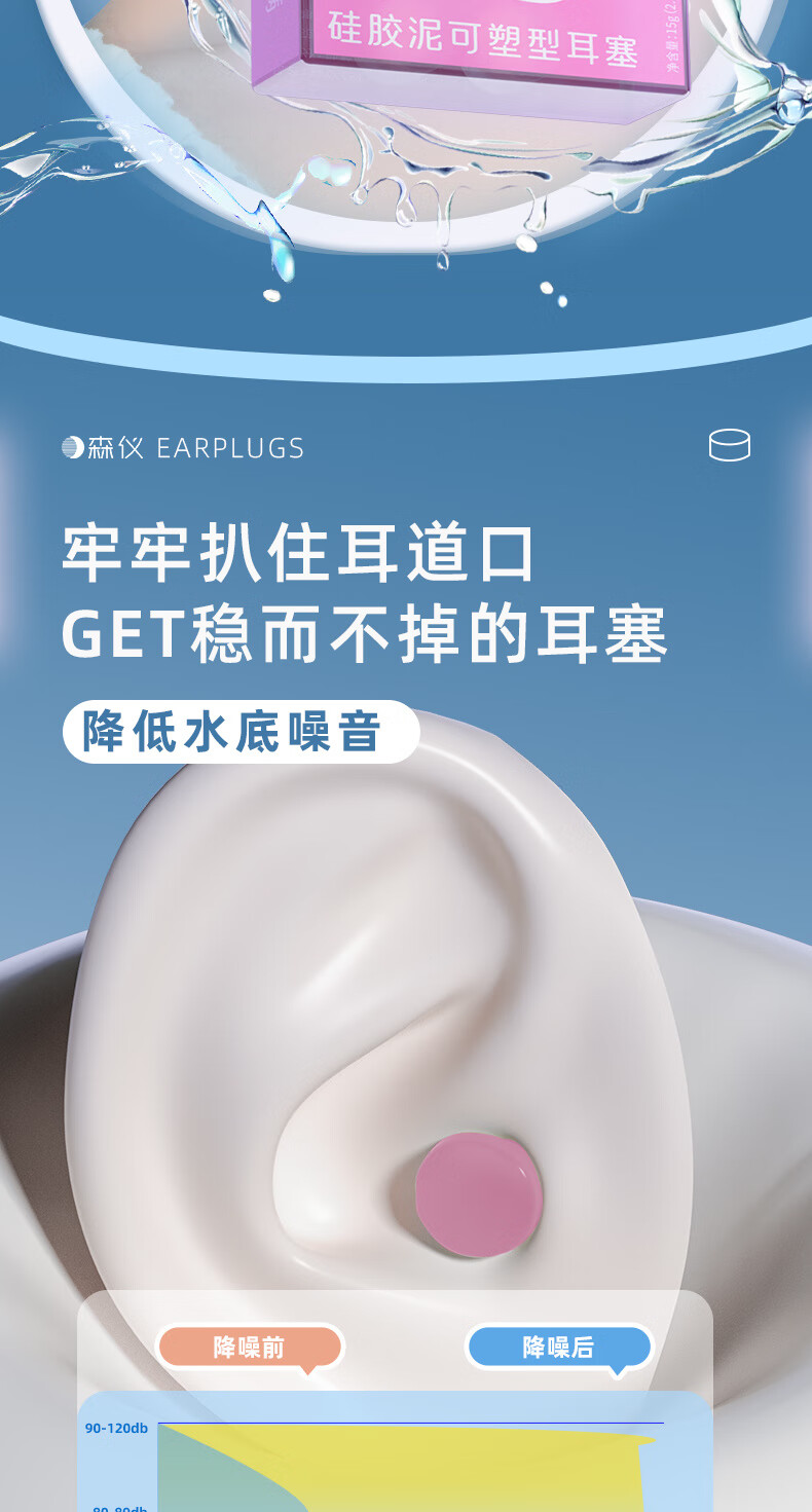 Earplugs for swimming adults only Senyi swimming earplugs waterproof special anti-choking soundproof nose clip for men and women bathing flawless white peach