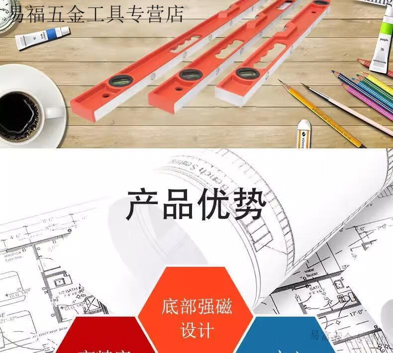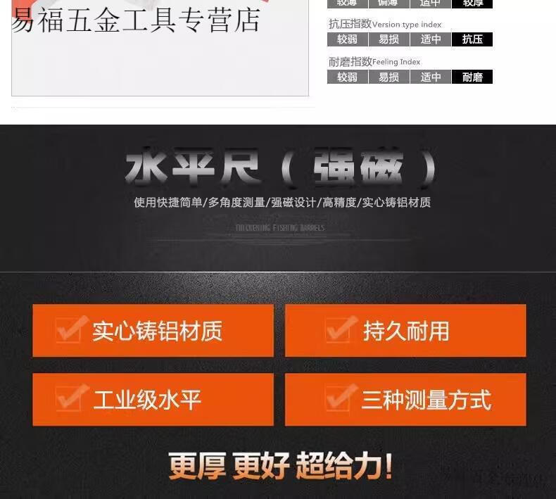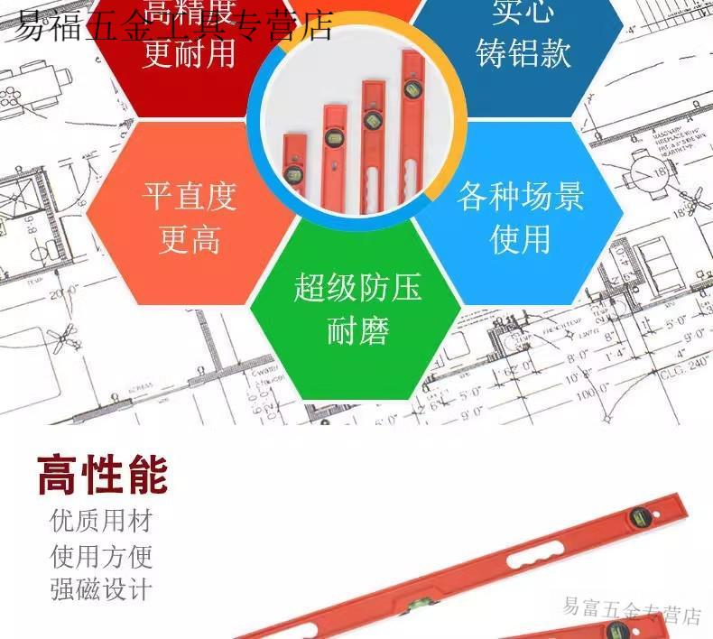 Qinkai high-precision solid cast aluminum level with magnetic fan small aluminum alloy solid anti-fall balancer tool strong magnet industrial grade solid cast aluminum 100cm strong magnet