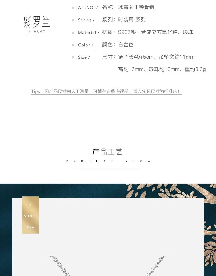 KARZUMYA Ice Queen S925 Silver Sterling Silver Pearl Necklace New Clavicle Chain Birthday Gift Valentine's Day for Girlfriend and Wife Ice and Snow Series Pearl Necklace