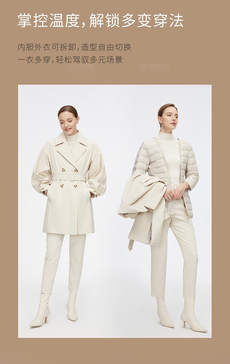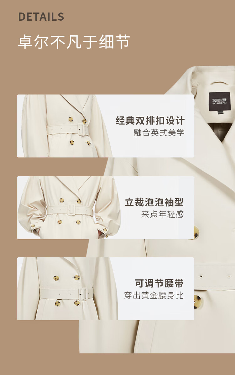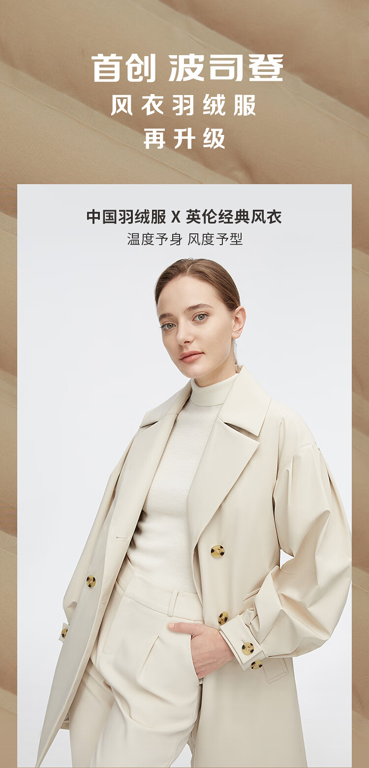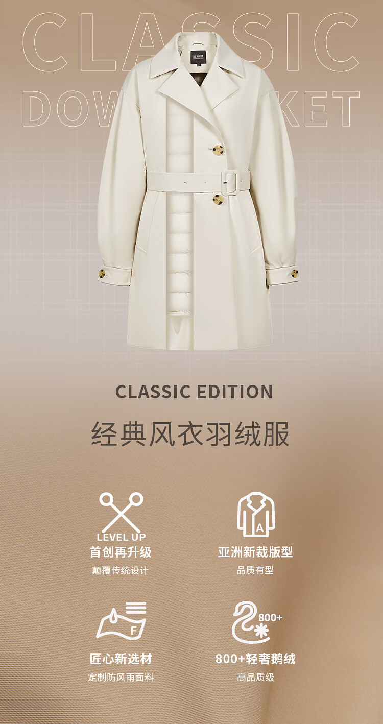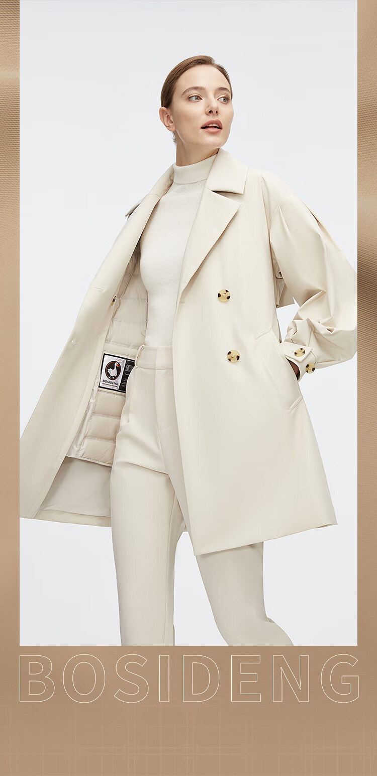 Bosideng (BOSIDENG) off-size clearance windbreaker goose down down jacket women's style mid-length new national standard 90 down shopping mall same style oatmeal color 7185 M 165/88A