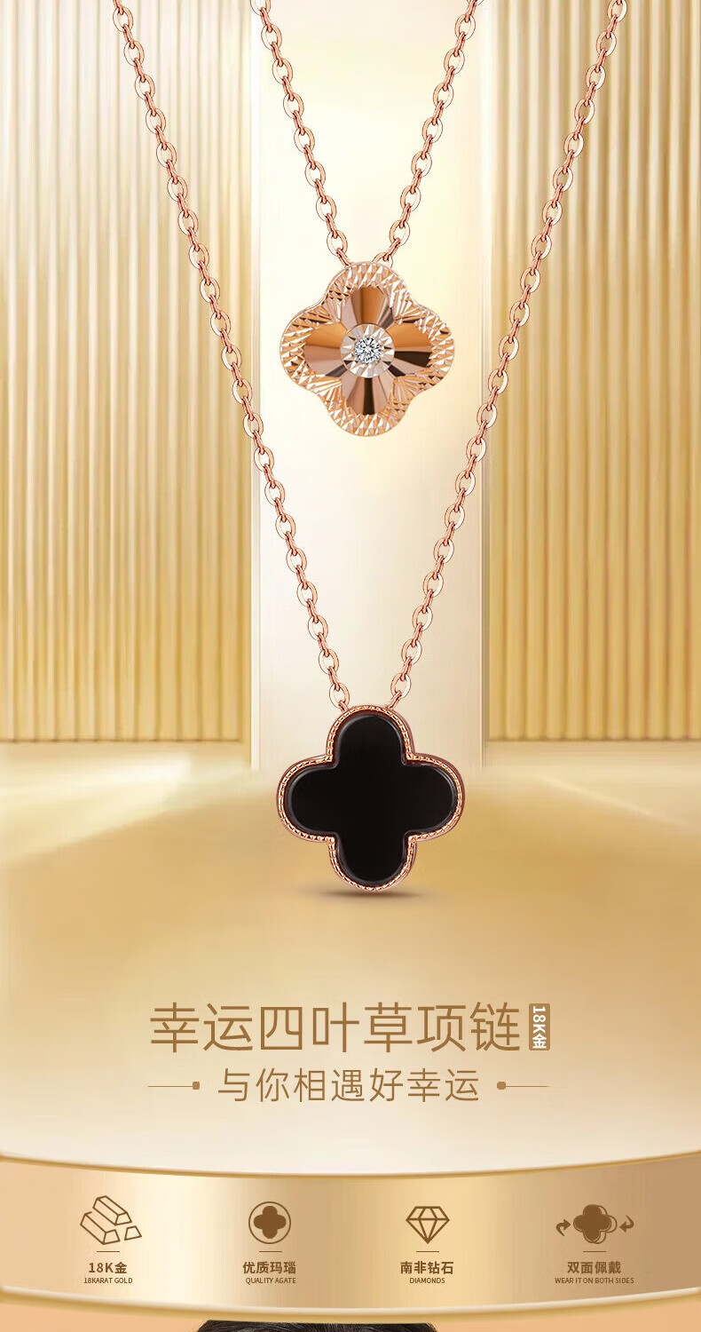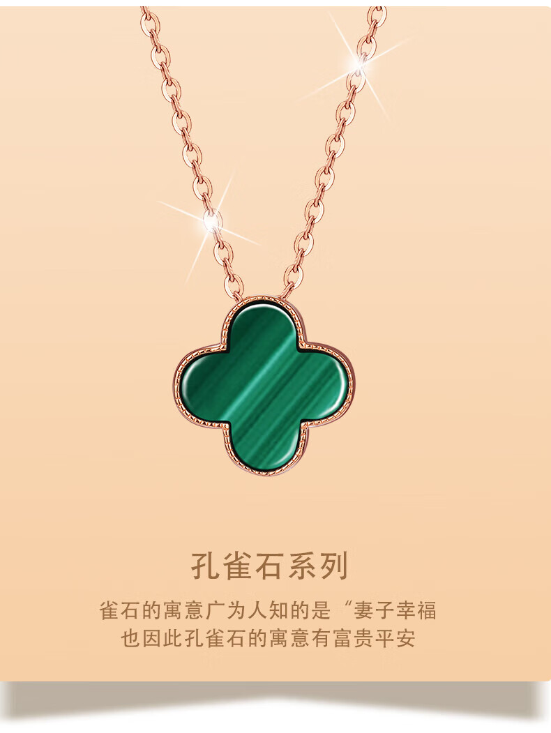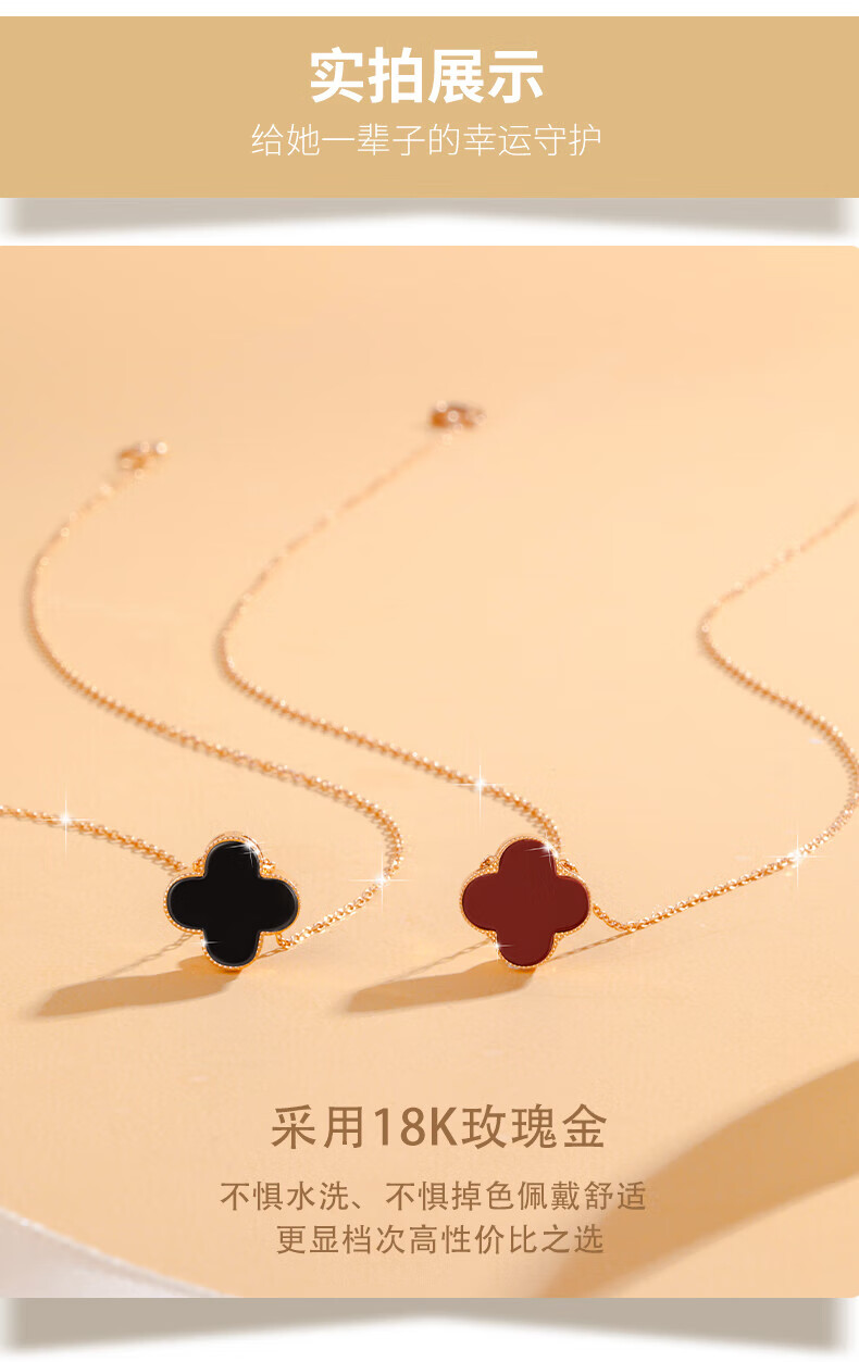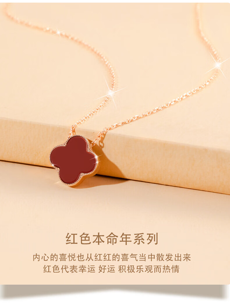 Ji Sifan light luxury four-leaf clover 18k gold necklace for women rose gold Valentine's Day anniversary birthday gift for wife and girlfriend rose gold cinnabar stone necklace