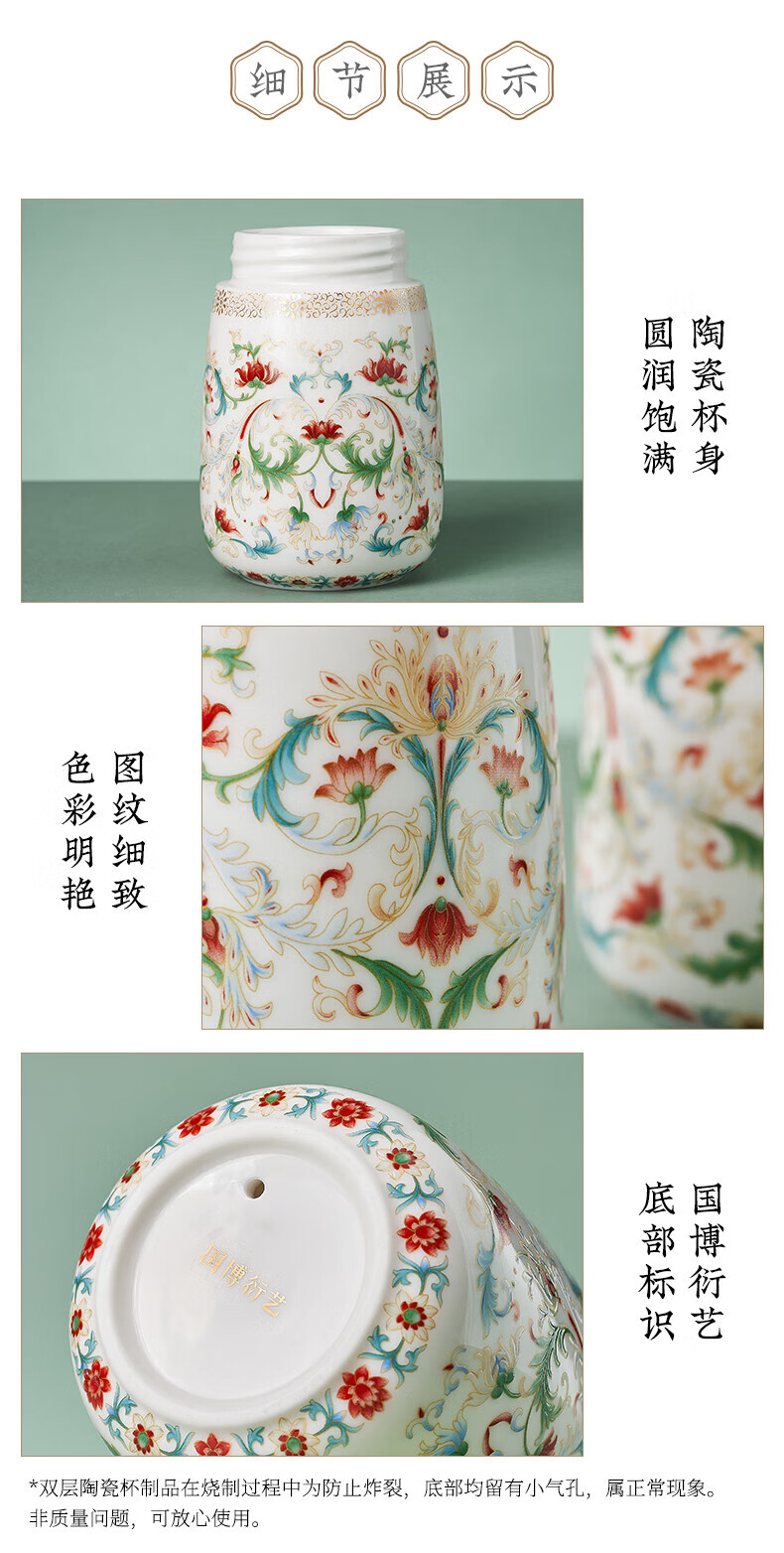 National Museum of China (NATIONAL MUSEUM OF CHINA) Jixiang Furui Ceramic Double-layered Tumbler, High-looking, Portable and Multi-purpose Museum Cultural and Creative Gifts for Friends Birthday Gifts, Jixiang Furui Ceramic Double-layered Tumbler, 1 piece