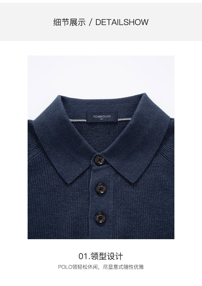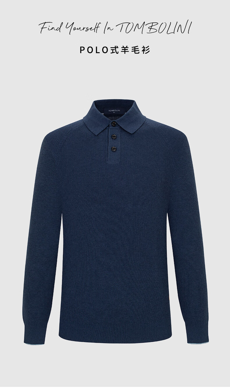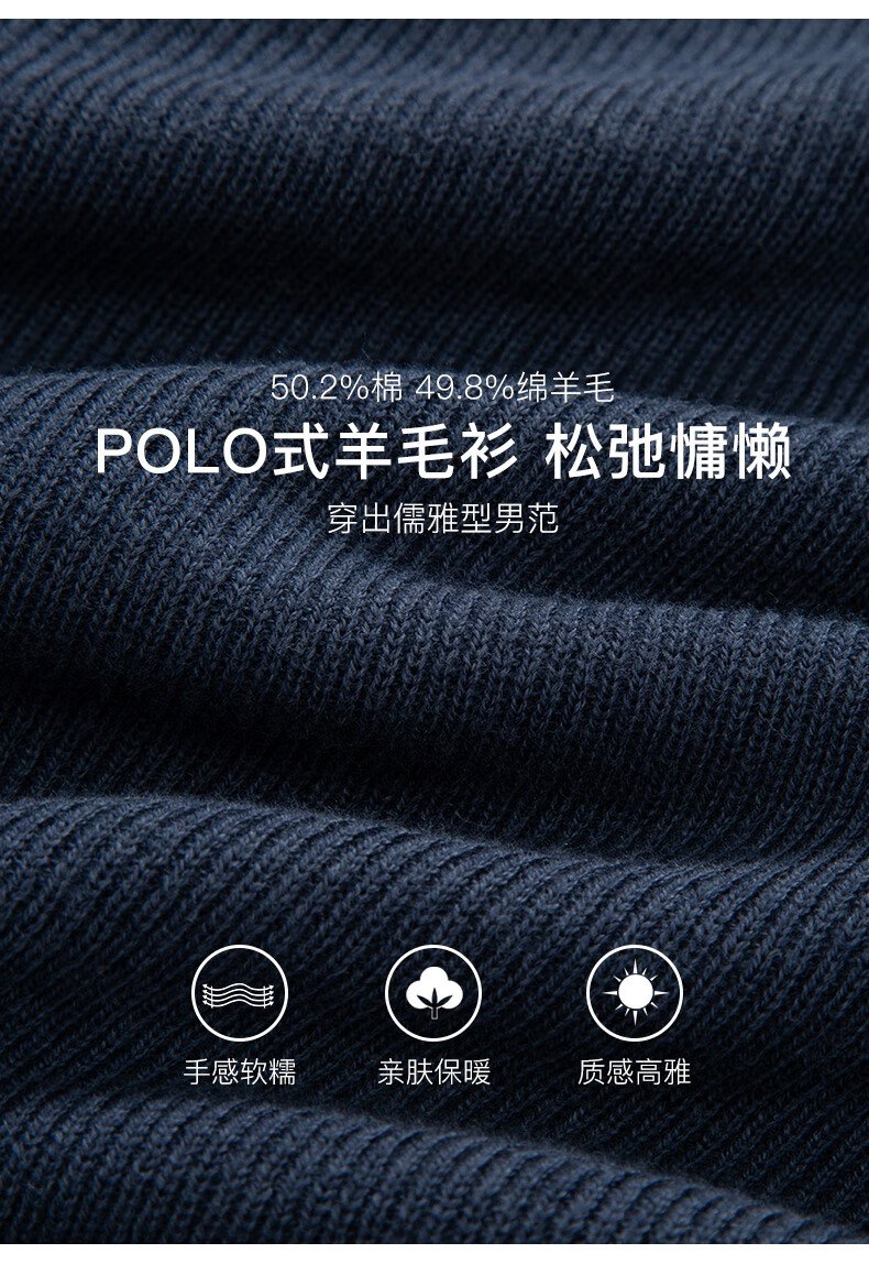 Dongbolini Men's New Autumn and Winter Relaxed Polo Style Wool Sweater Lapel Solid Color Sweater Twilight Blue One Size 52