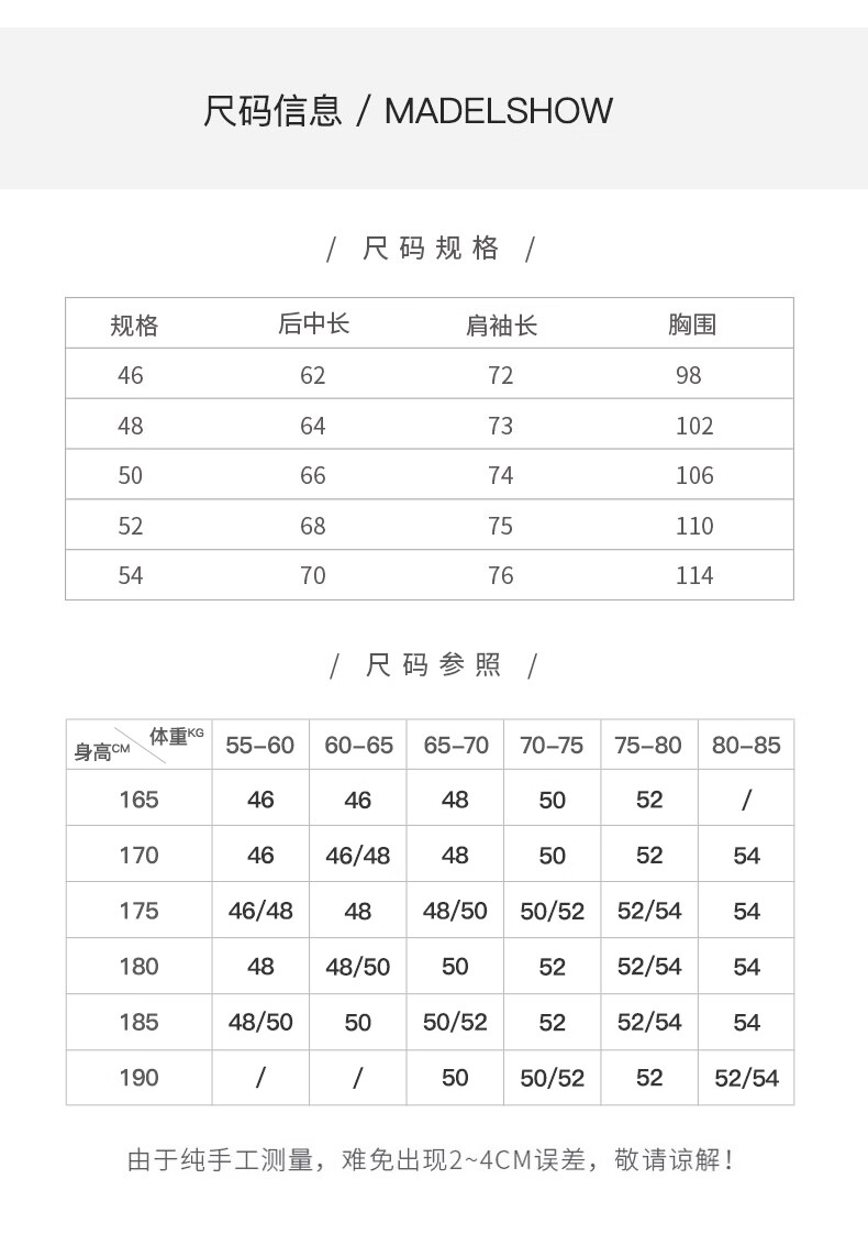 China (cm) 165 / 88-90 170 / 96-98 175 / 108-110 180 / 118-122 185 / 126-130