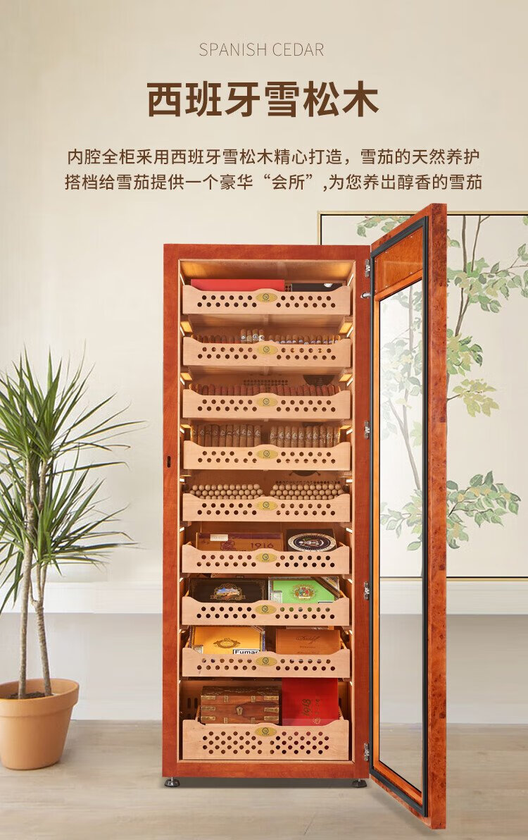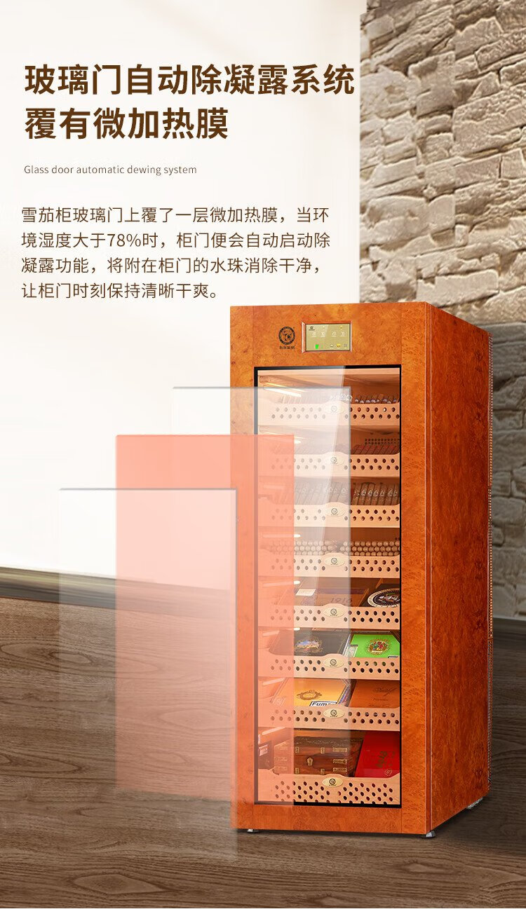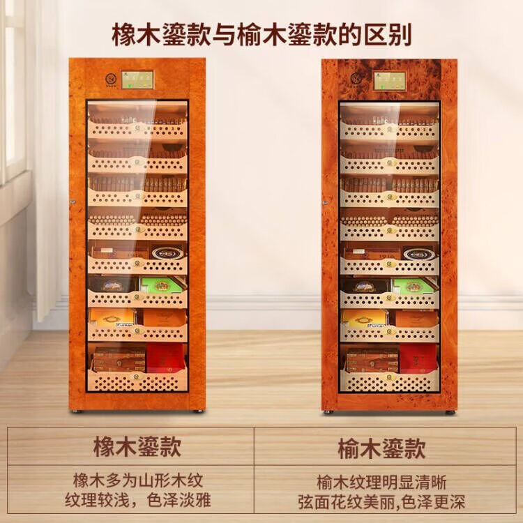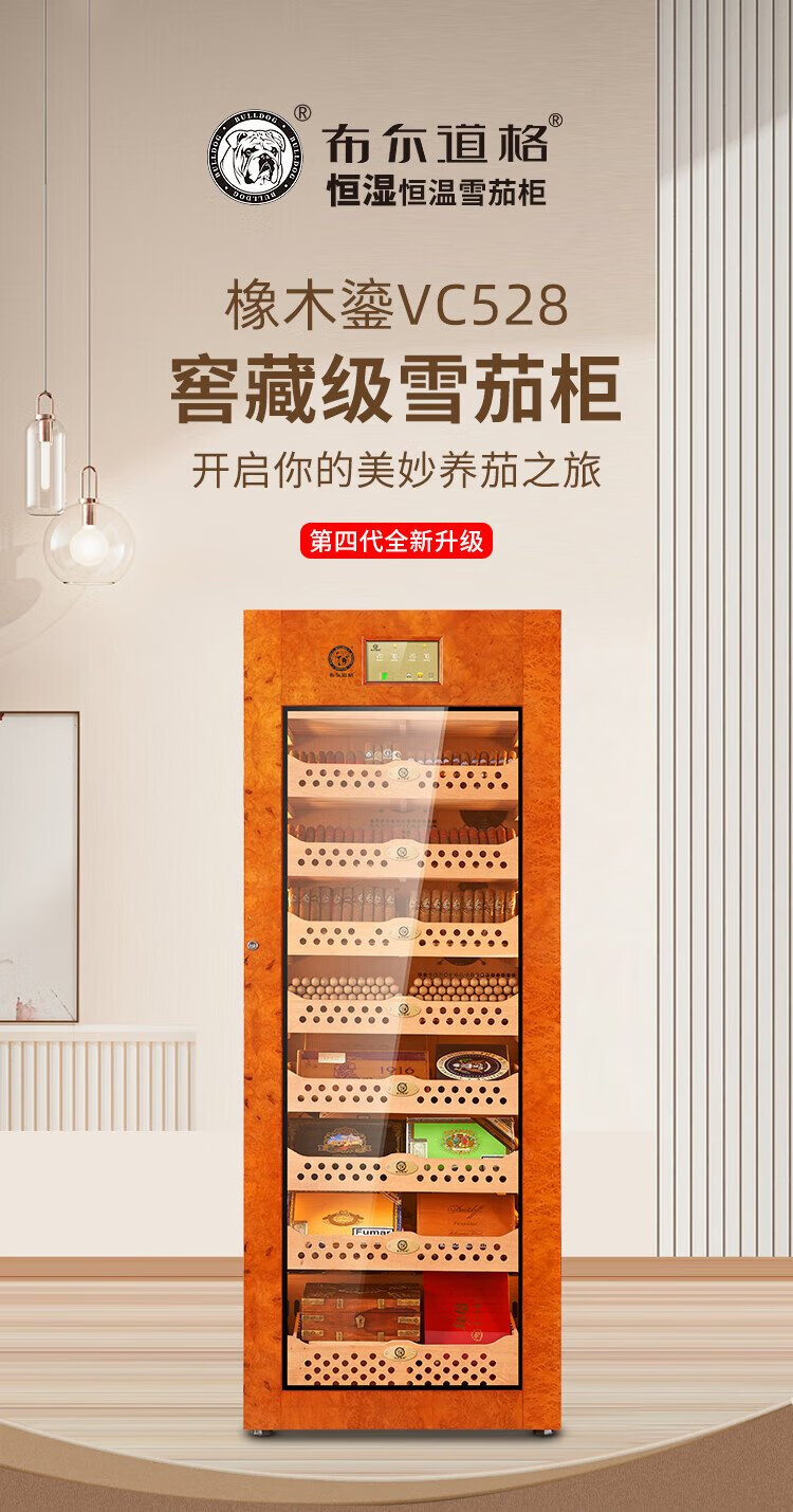 Bulldog cigar cabinet constant temperature and humidity control humidification cabinet constant humidity ammonia removal red wine cabinet compressor constant temperature humidification cabinet cedar wood fingerprint password lock wifi high-end solid wood shell VC528 elm fourth generation plus with fingerprint password lock WiFi 2800 pieces