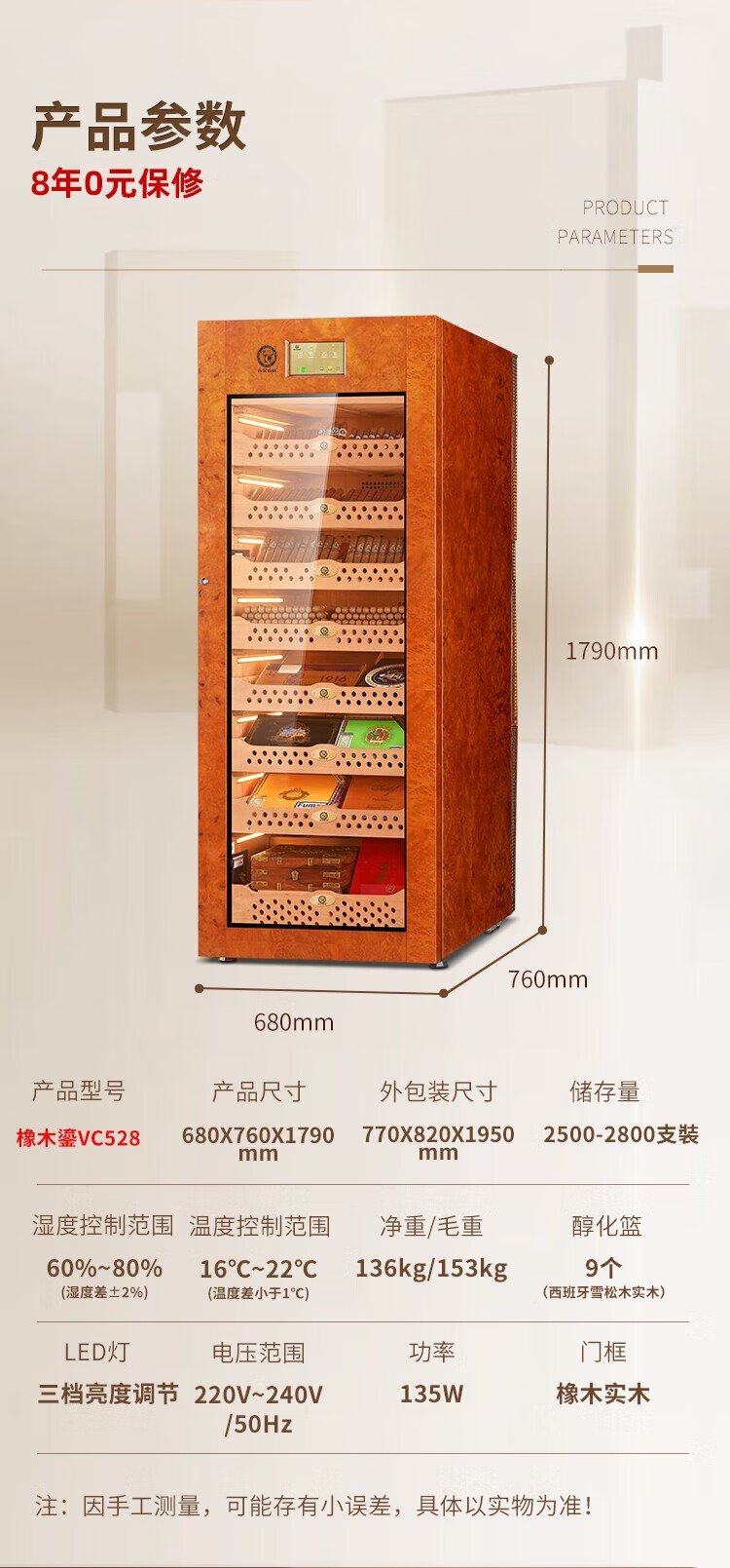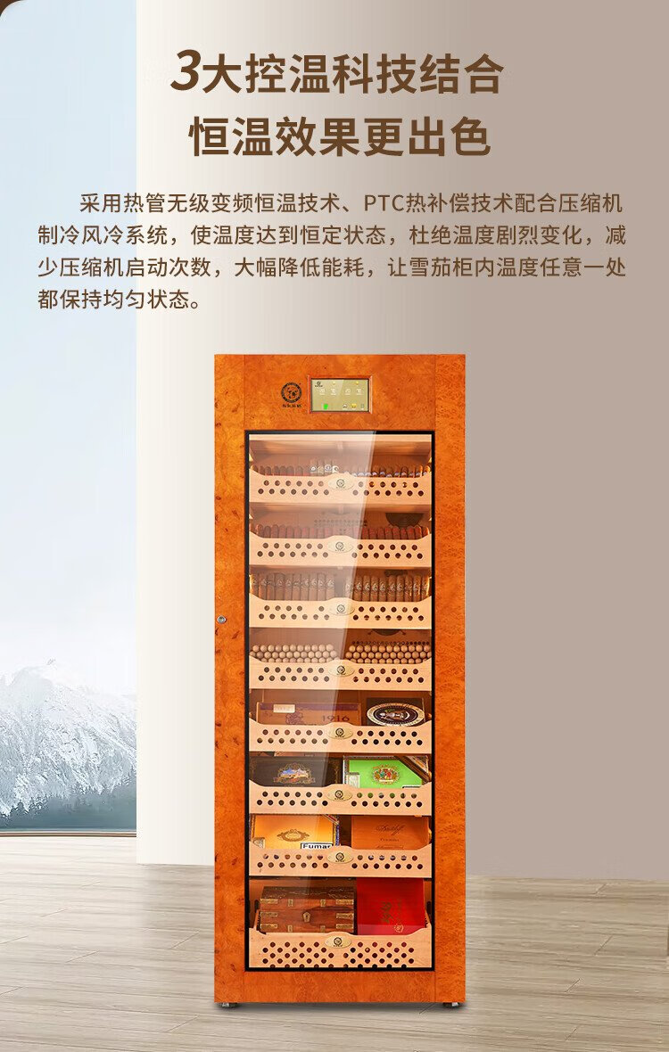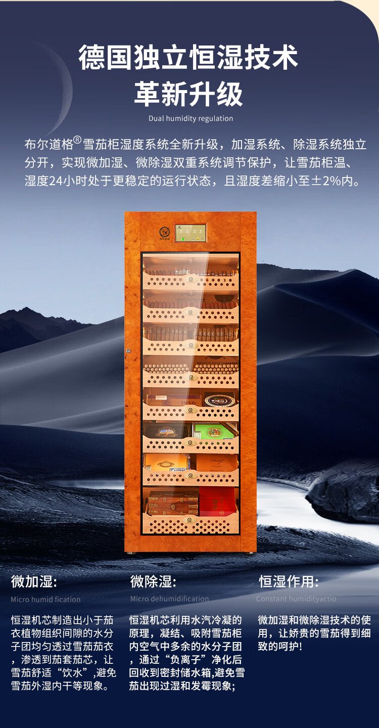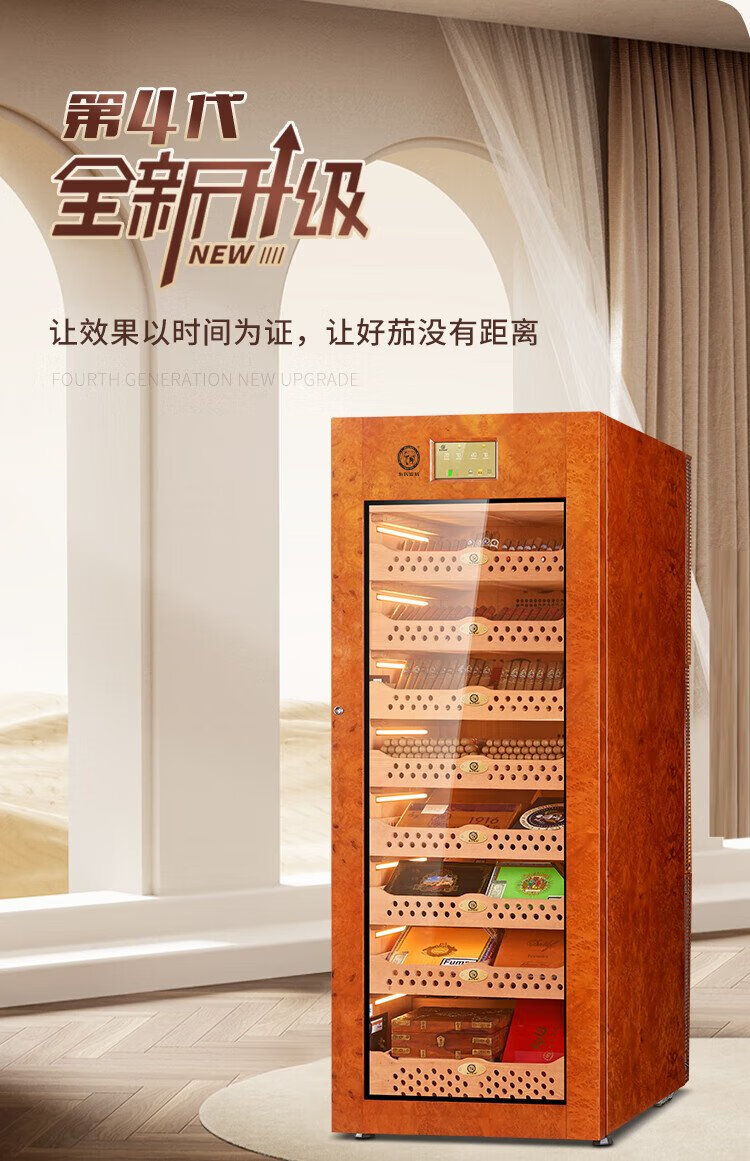 Bulldog cigar cabinet constant temperature and humidity control humidification cabinet constant humidity ammonia removal red wine cabinet compressor constant temperature humidification cabinet cedar wood fingerprint password lock wifi high-end solid wood shell VC528 elm fourth generation plus with fingerprint password lock WiFi 2800 pieces