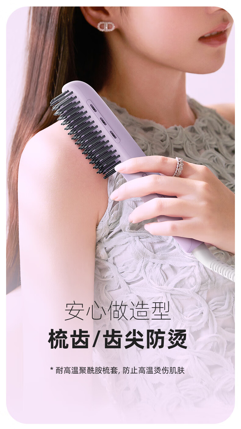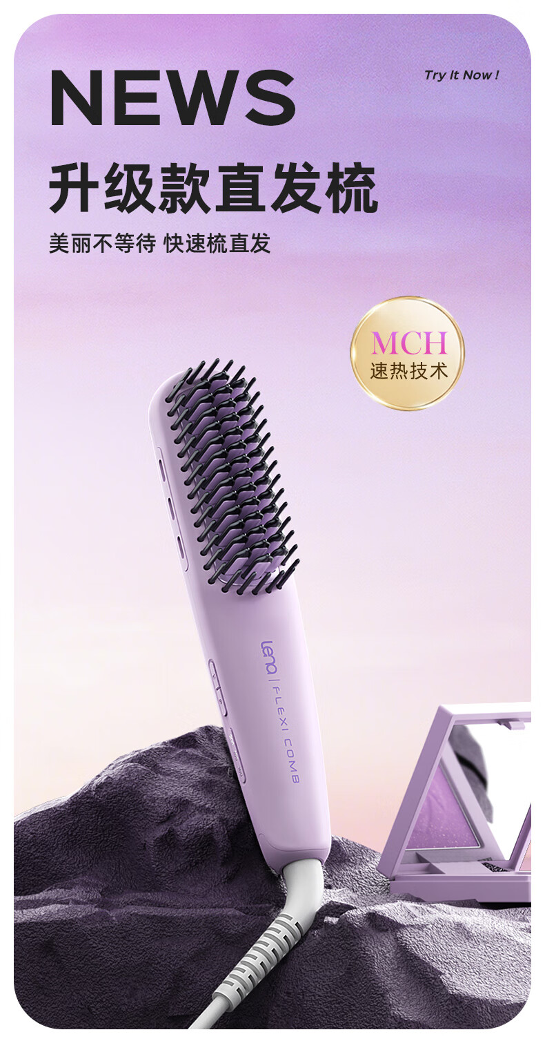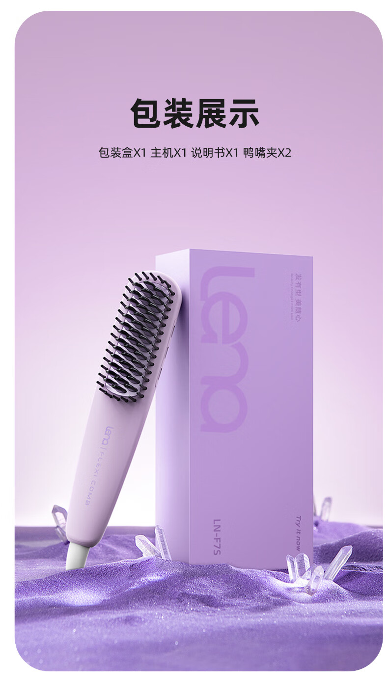 Lena straight hair comb negative ions, curling comb inner buckle, mini portable bangs perm comb, fluffy artifact styling comb, short hair straightening electric comb New Year's gift F7S 70 million negative ions, smooth with one comb