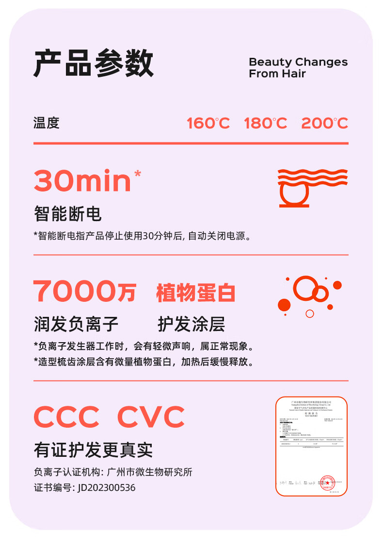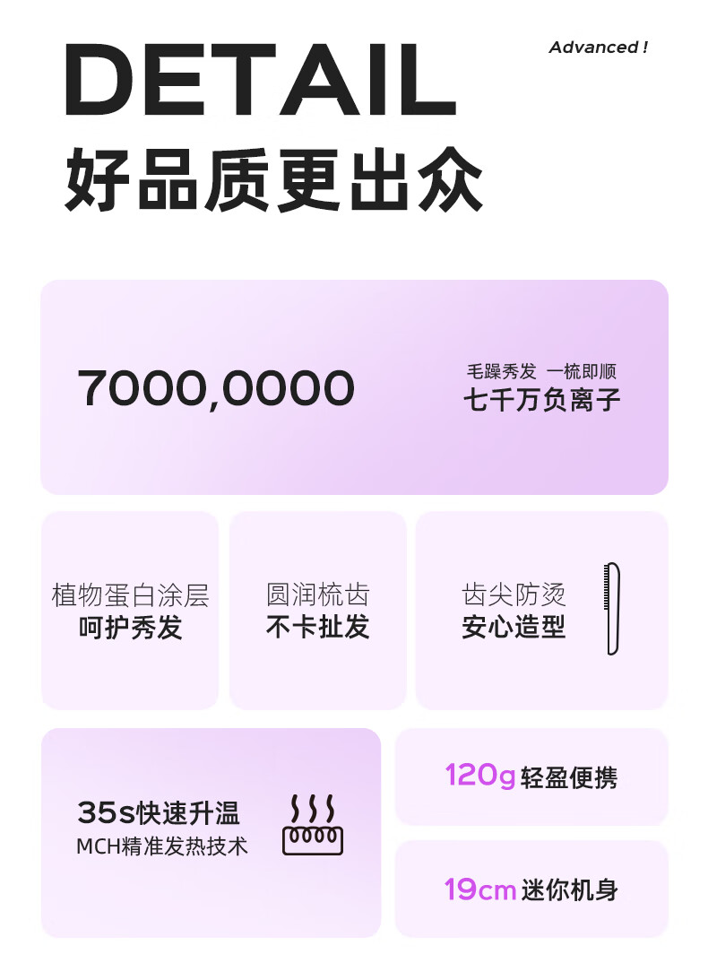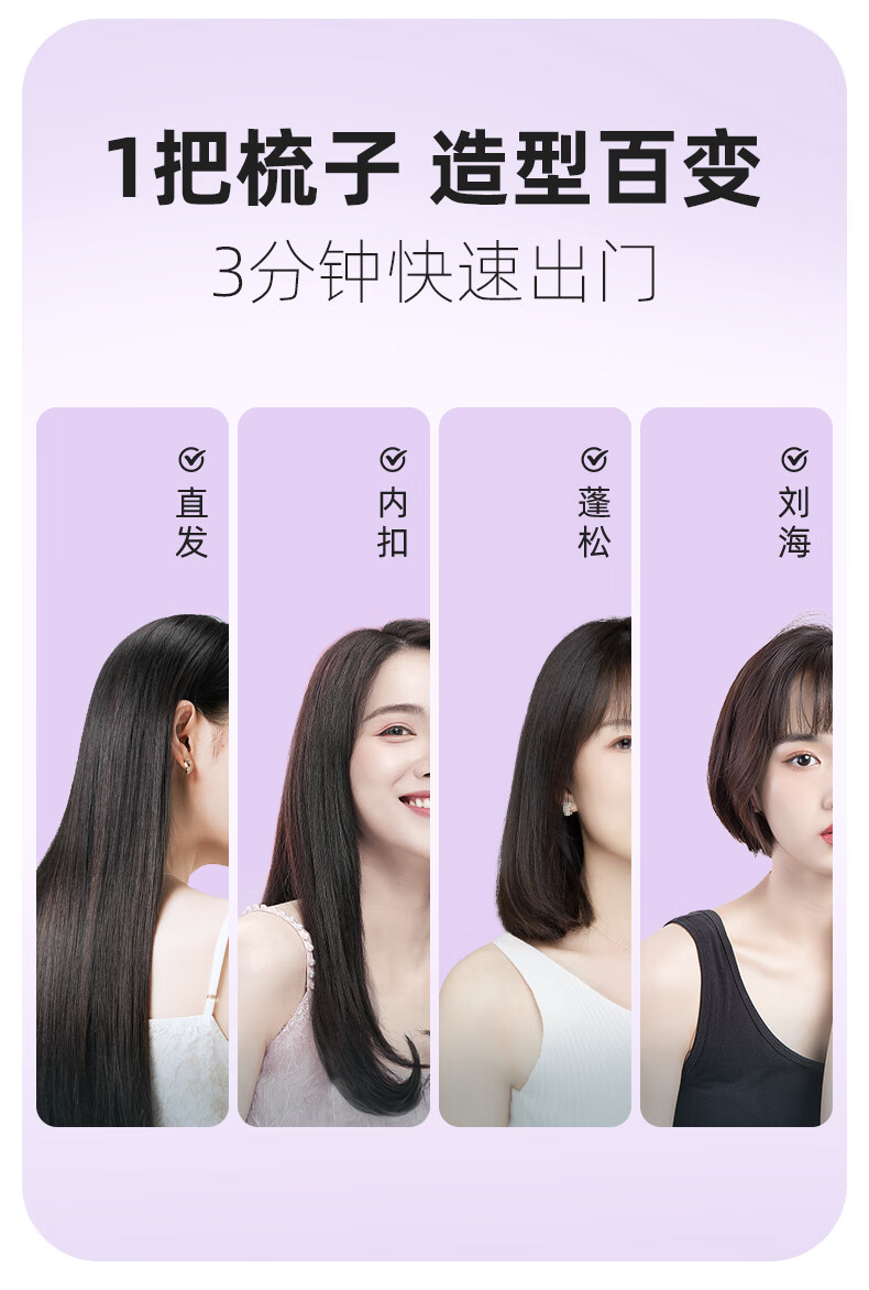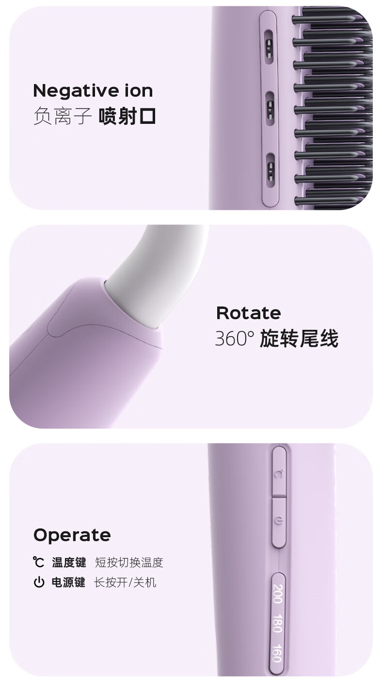Lena straight hair comb negative ions, curling comb inner buckle, mini portable bangs perm comb, fluffy artifact styling comb, short hair straightening electric comb New Year's gift F7S 70 million negative ions, smooth with one comb