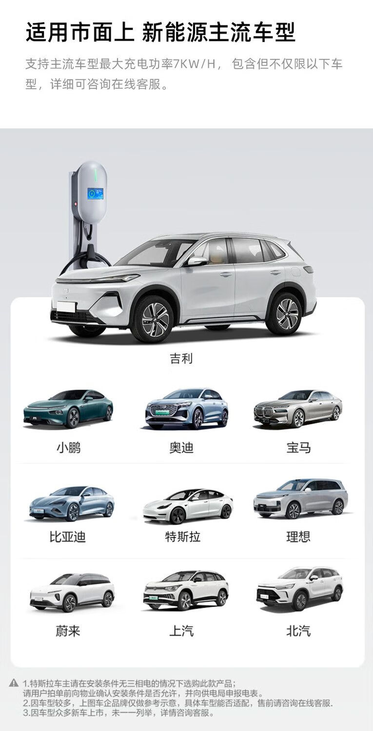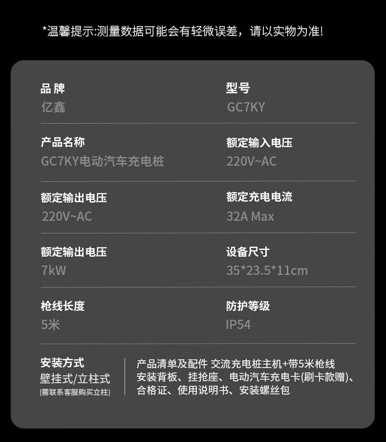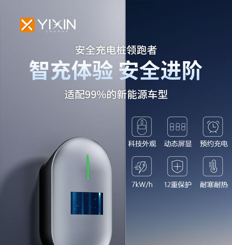 Xiaomi's same appearance design Yixin new energy charging pile 7KW home BYD NIO Changan Ji Krypton Xiaomi universal 32A fast charging gun Mini program reservation version/swipe card (indicator light) 5m gun line/7kw wall-mounted