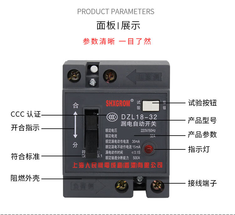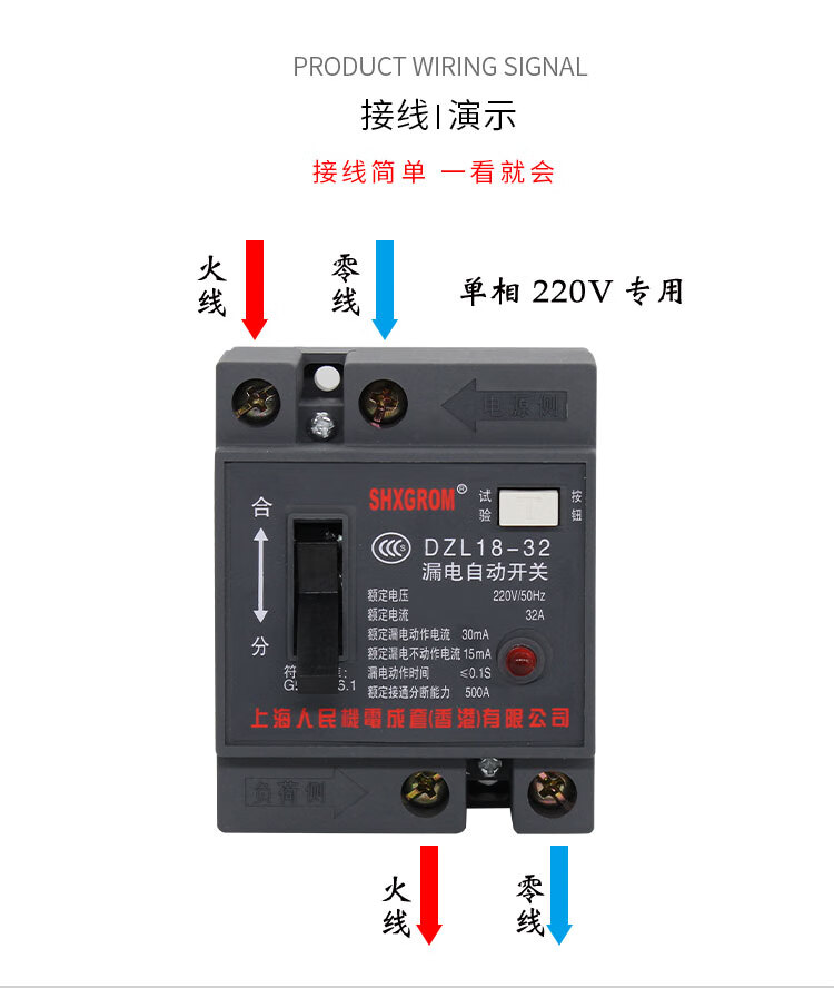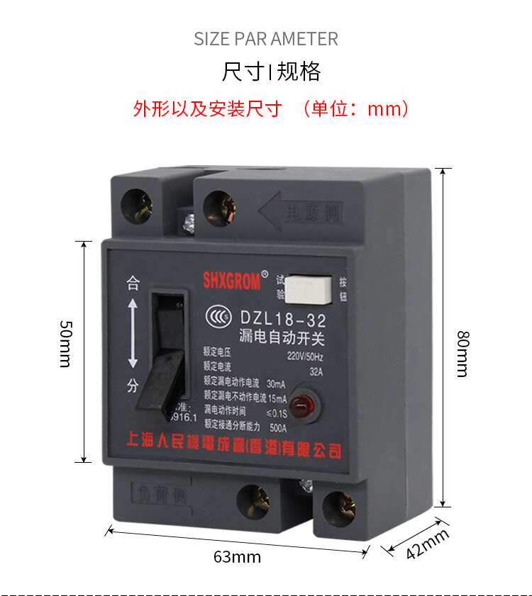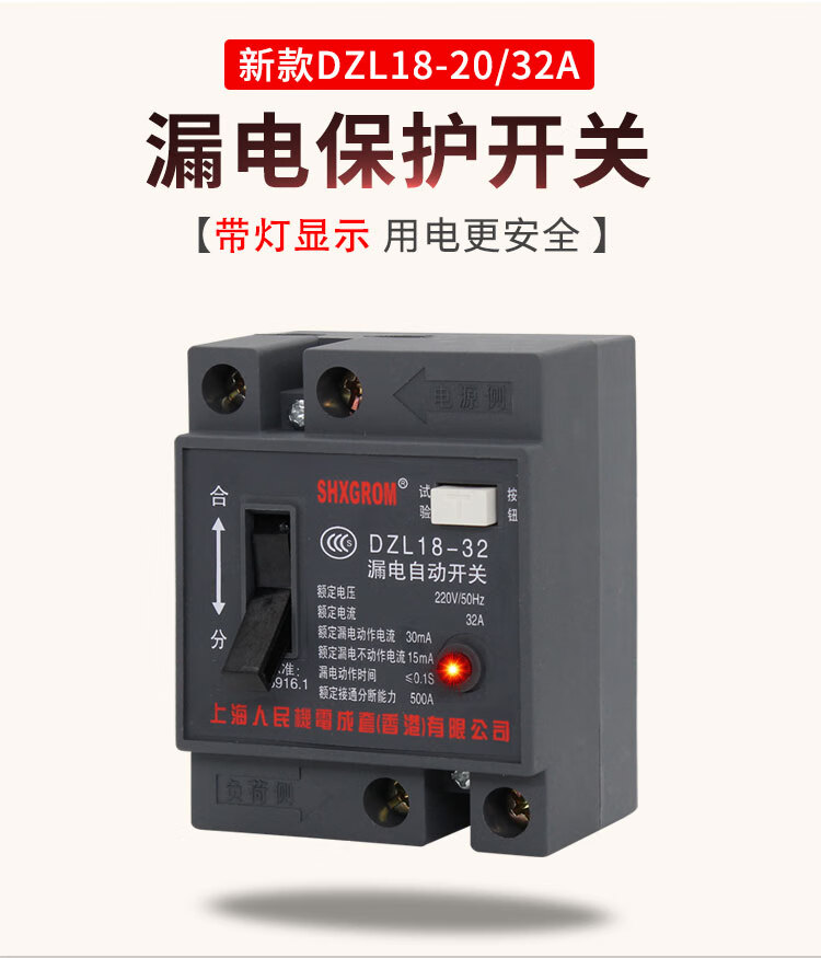 Shanghai People's DZL18-/20A leakage protector cable tray suitcase two-phase leakage switch construction site 2P 32A
