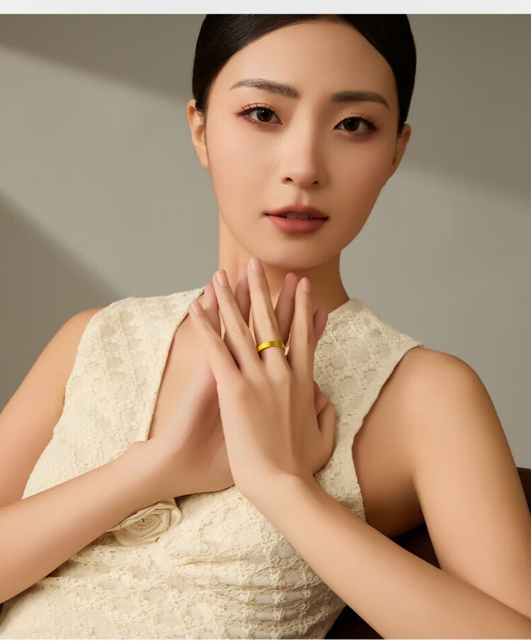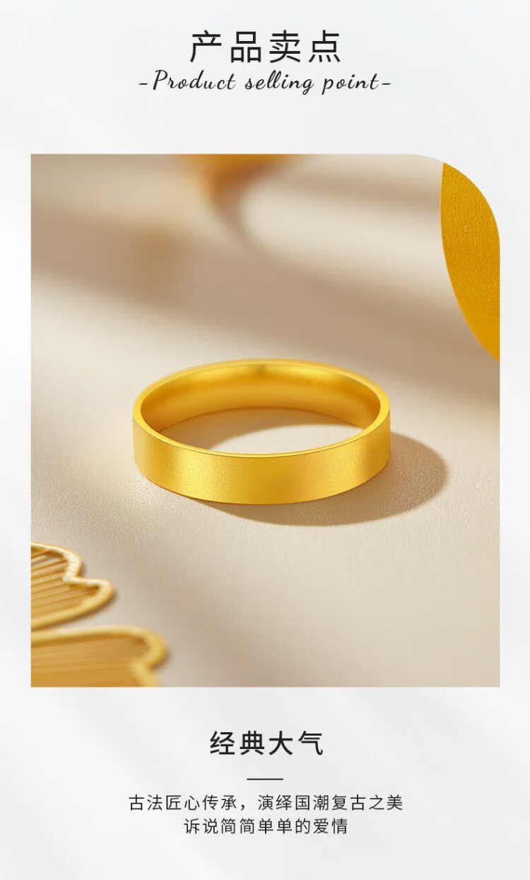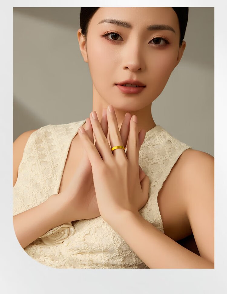 CHINA GOLD gold ring men's plain ring wide solid ring women's wedding and engagement couple's ring as a birthday gift for boyfriend, 18 rings, about 5.2g