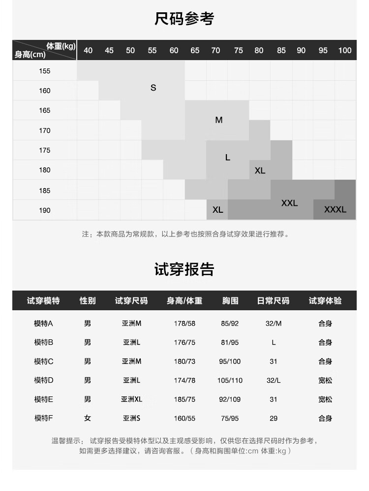 China (cm) 160-165/84-86 165-170 / 88-90 167-172 / 92-96 168-173 / 98-102 170-176 / 106-110