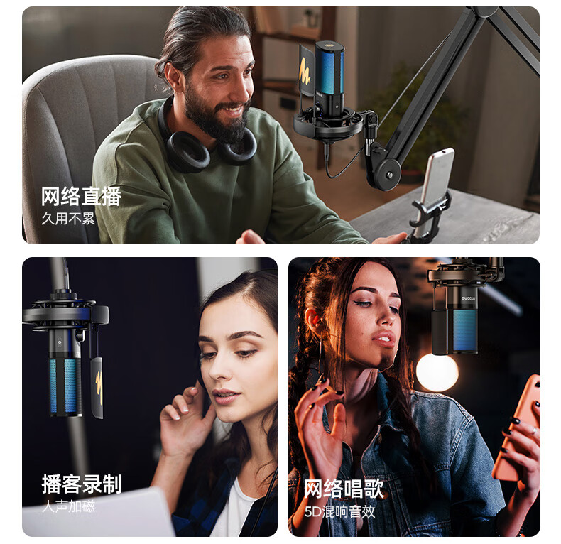 Flash Maono microphone computer live broadcast built-in sound card professional recording dubbing game noise reduction singing radio USB mobile phone condenser microphone wired desktop microphone Flash pm450 PM450S cantilever model comes with reverberation modification-customized tone