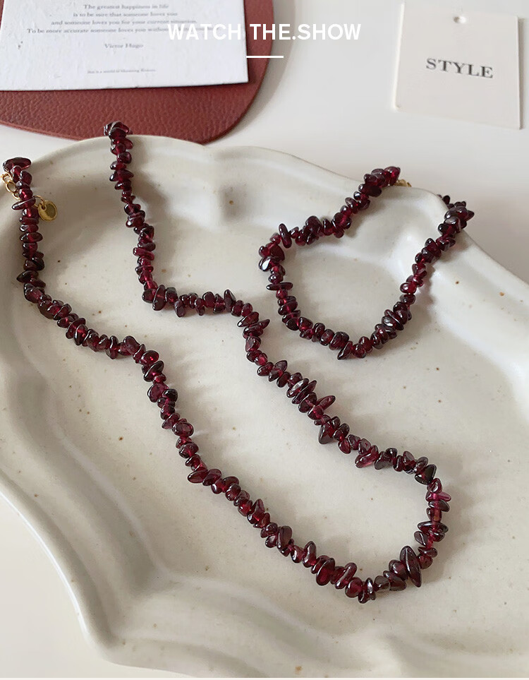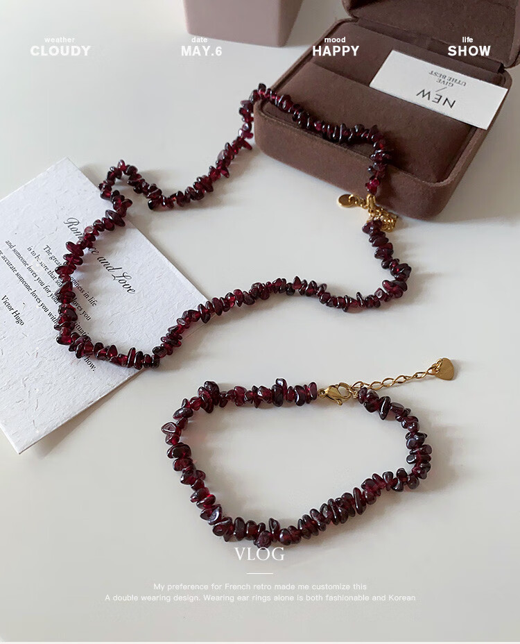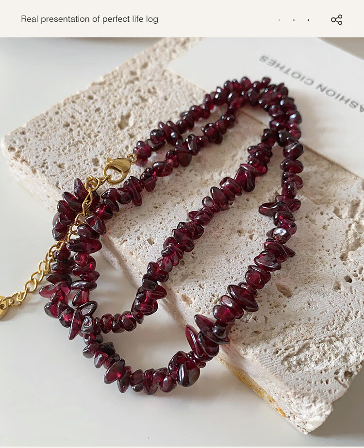 Baozha dark red garnet necklace 2024 new natural stone beaded sweater chain new Chinese style retro clavicle chain dark red necklace about 40cm+5.5cm