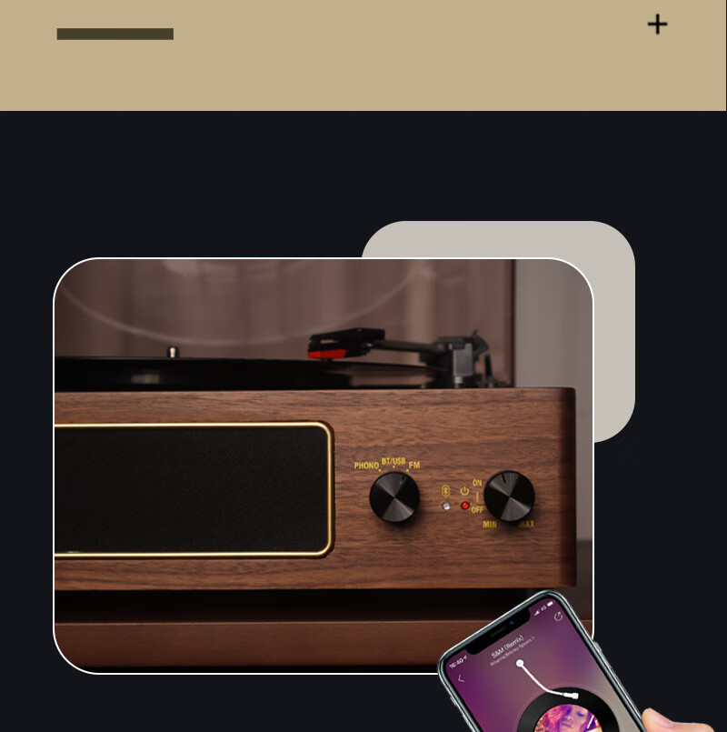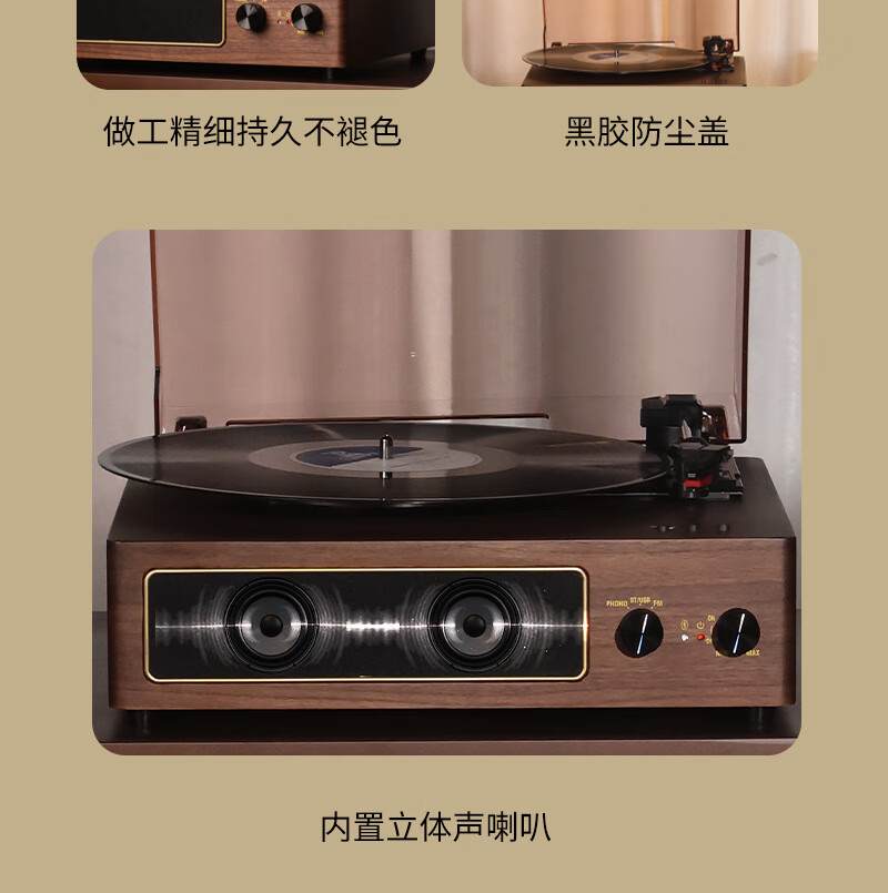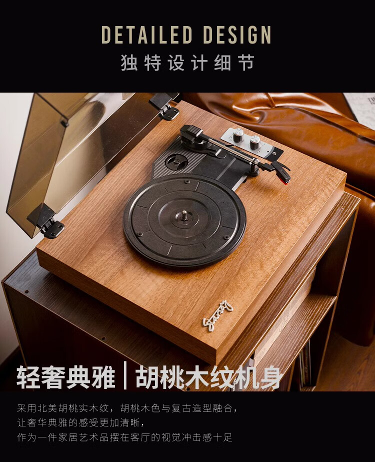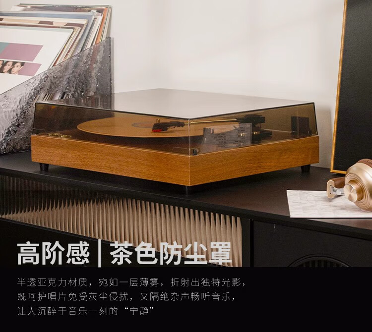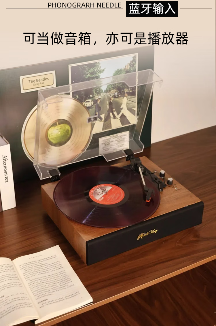 HKMW Sony SOYN suitable for vinyl record turntables, retro gramophone, living room, European Bluetooth speakers, audio ornaments, creative housewarming gifts, classical brown + Teresa Teng records, HIFI sound quality + wireless Bluetooth + ruby