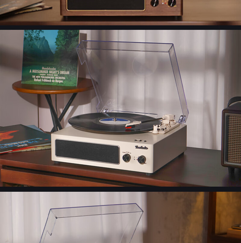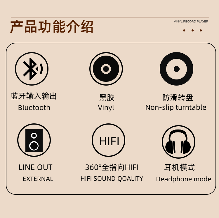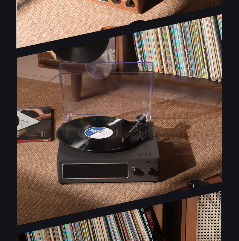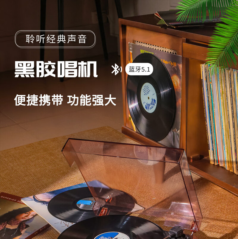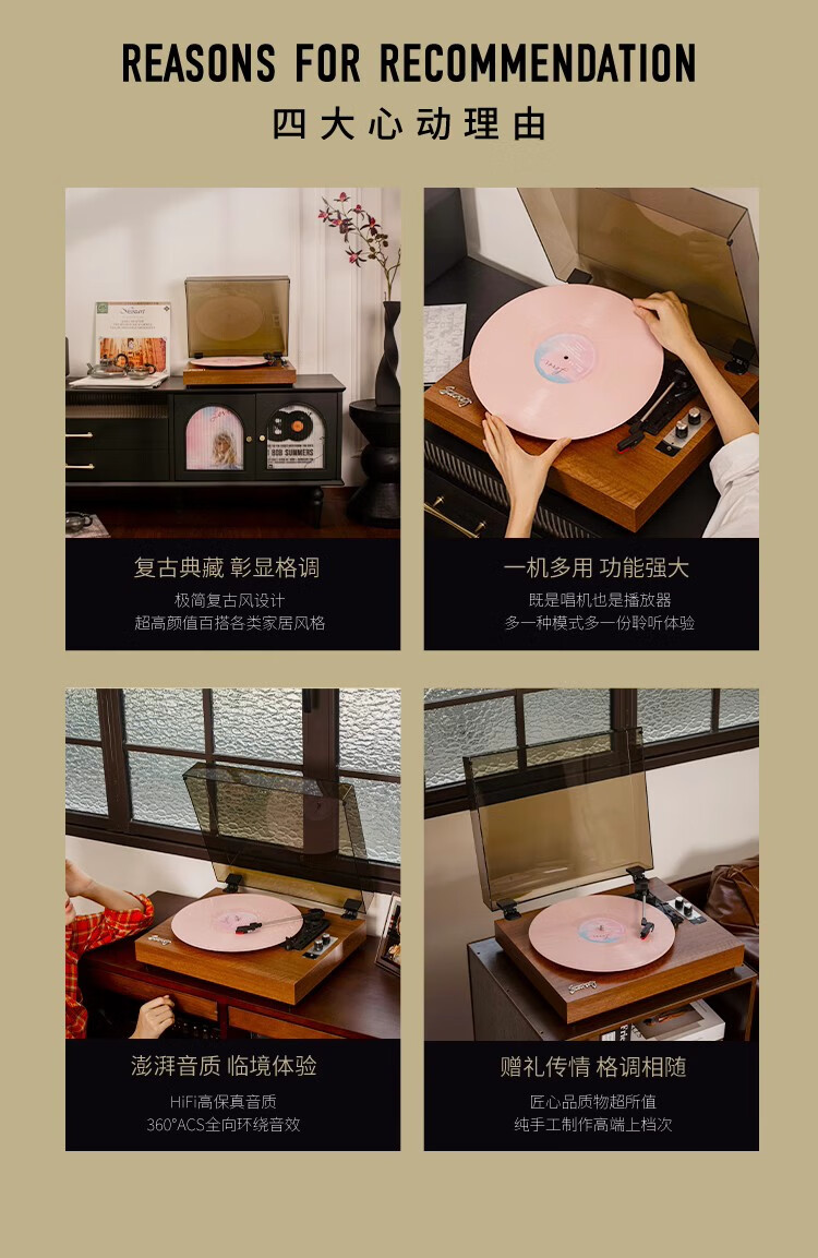 HKMW Sony SOYN suitable for vinyl record turntables, retro gramophone, living room, European Bluetooth speakers, audio ornaments, creative housewarming gifts, classical brown + Teresa Teng records, HIFI sound quality + wireless Bluetooth + ruby