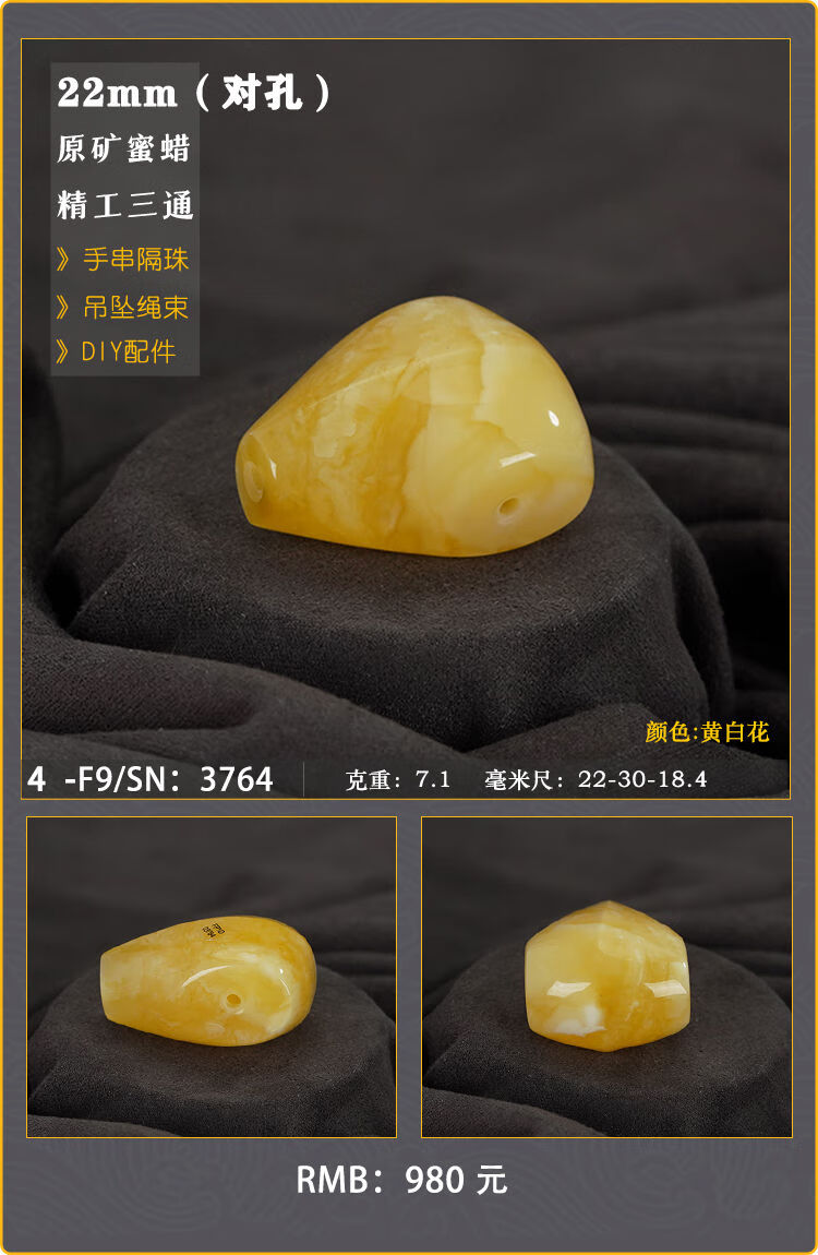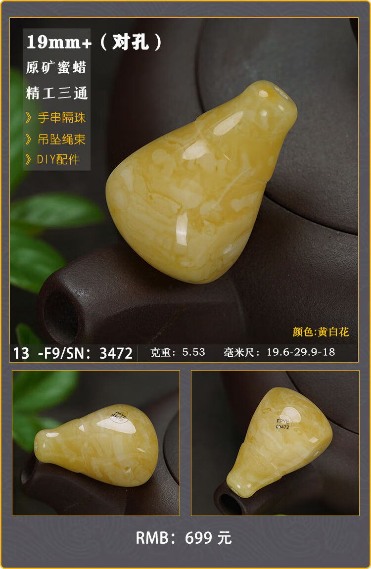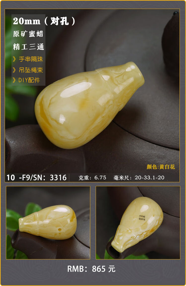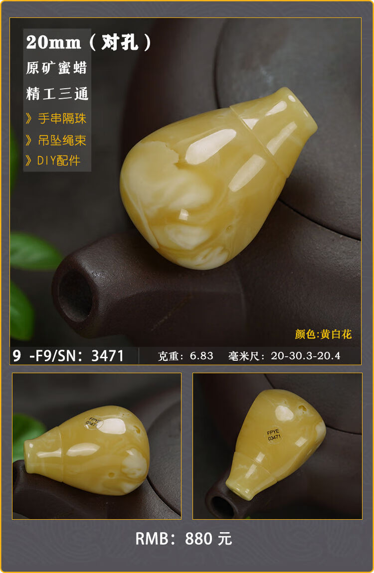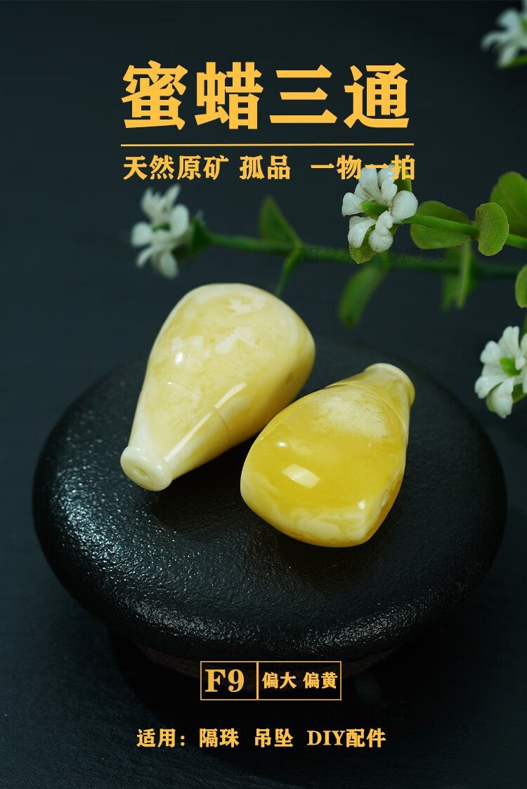 Baozha Natural Raw Mineral Beeswax Big Three-Way Buddha Head Bracelet Accessories Separated Beads Chicken Oil Yellow White Flower Baltic Sea Fidelity No. 1/F9