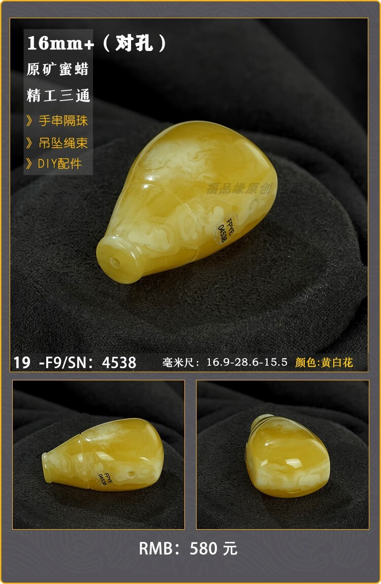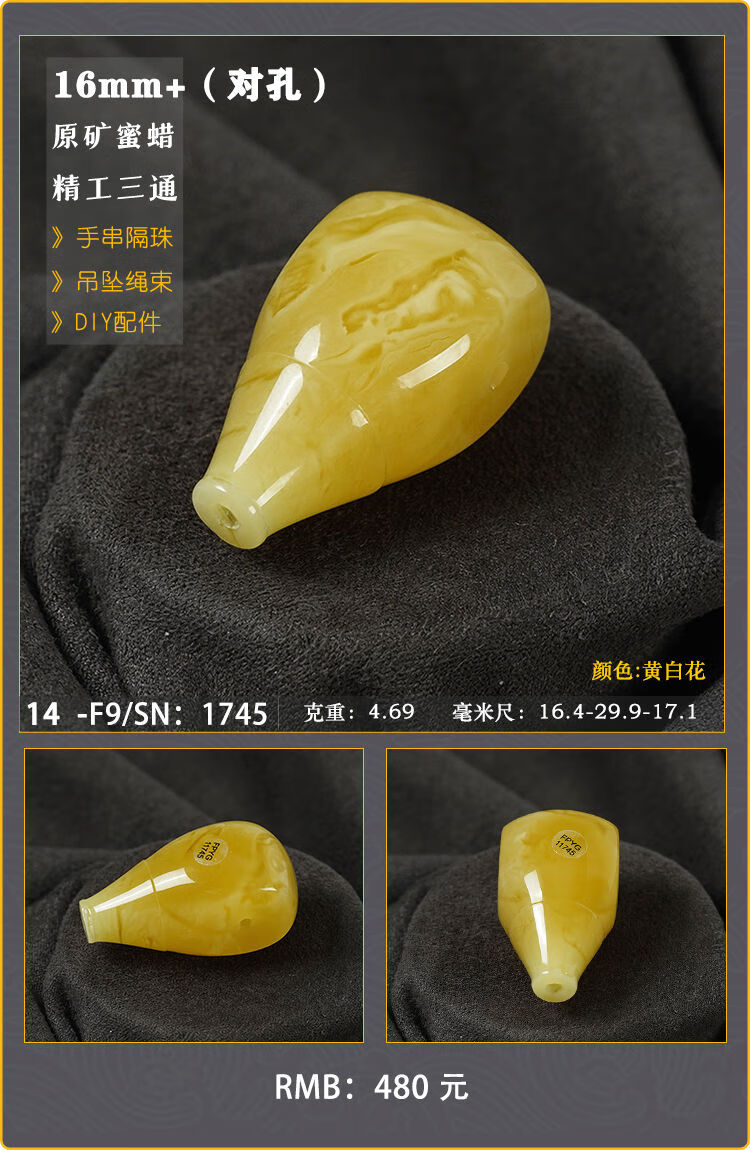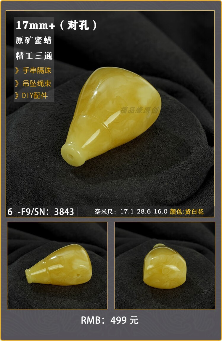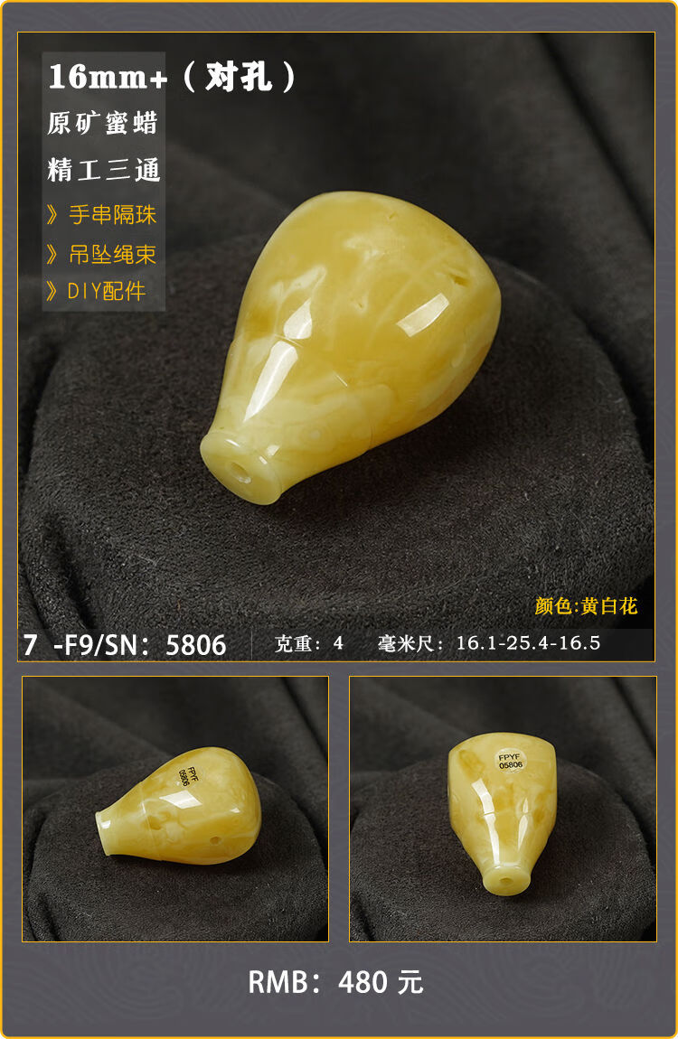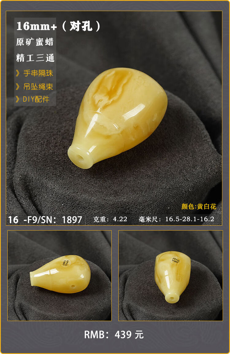 Baozha Natural Raw Mineral Beeswax Big Three-Way Buddha Head Bracelet Accessories Separated Beads Chicken Oil Yellow White Flower Baltic Sea Fidelity No. 1/F9