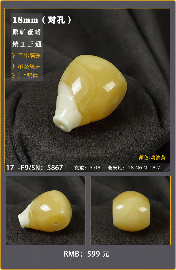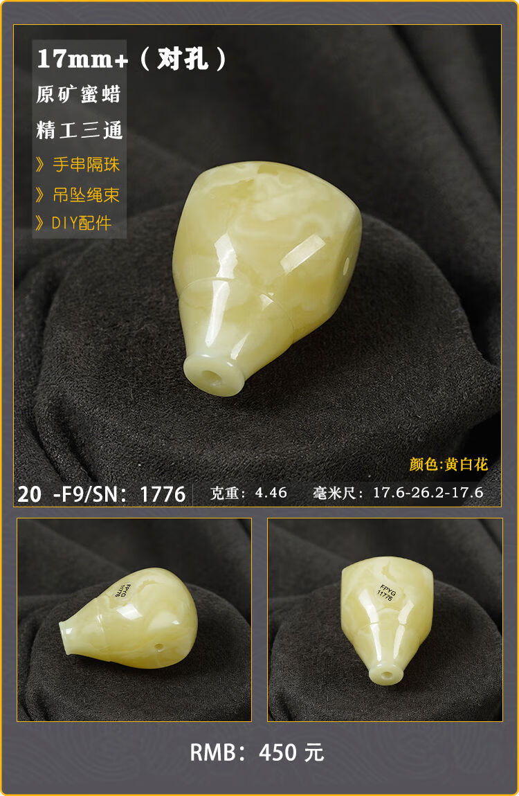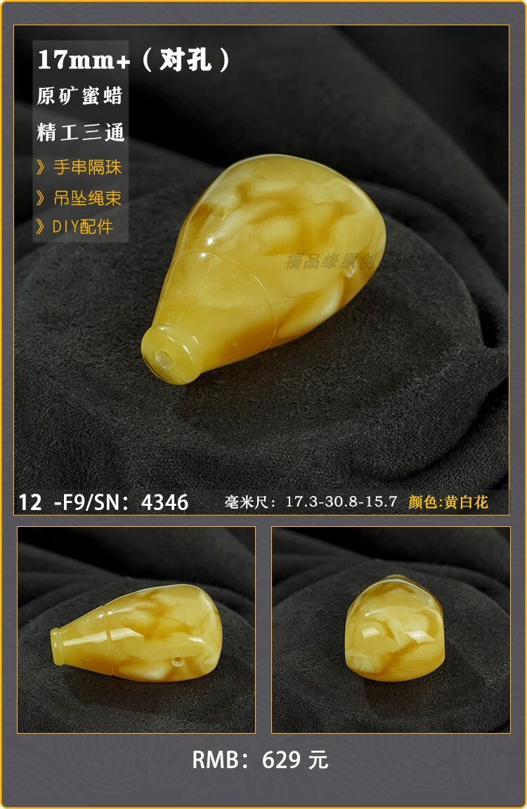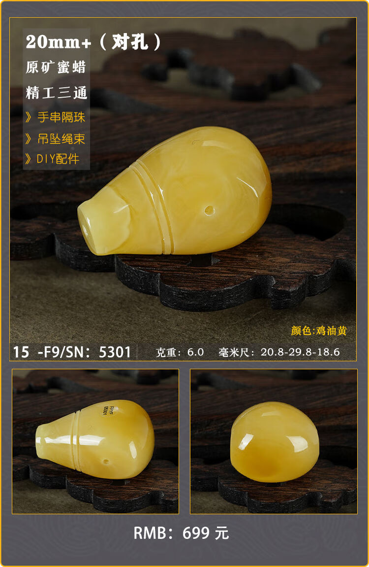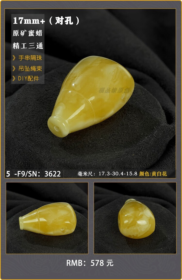 Baozha Natural Raw Mineral Beeswax Big Three-Way Buddha Head Bracelet Accessories Separated Beads Chicken Oil Yellow White Flower Baltic Sea Fidelity No. 1/F9