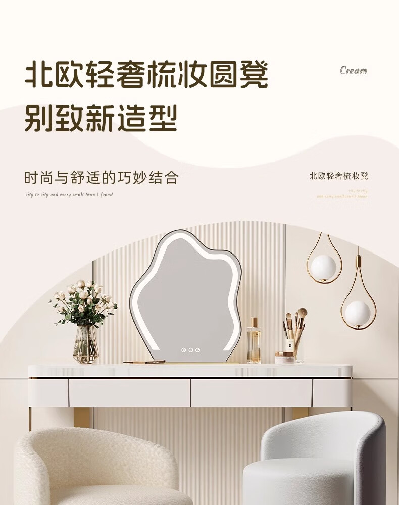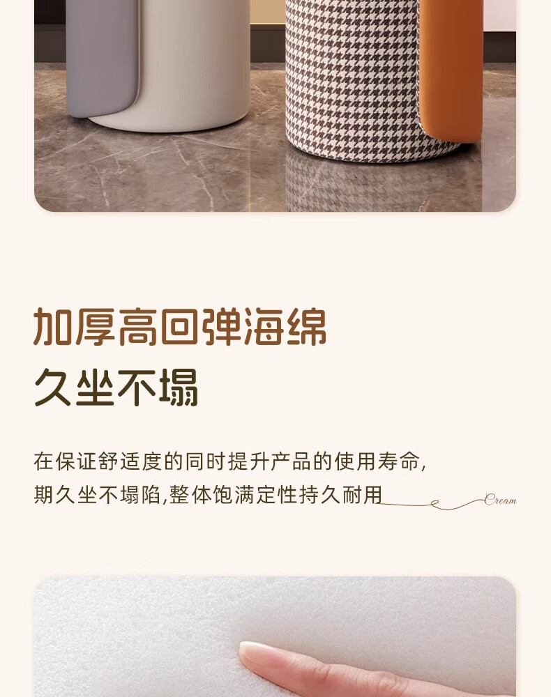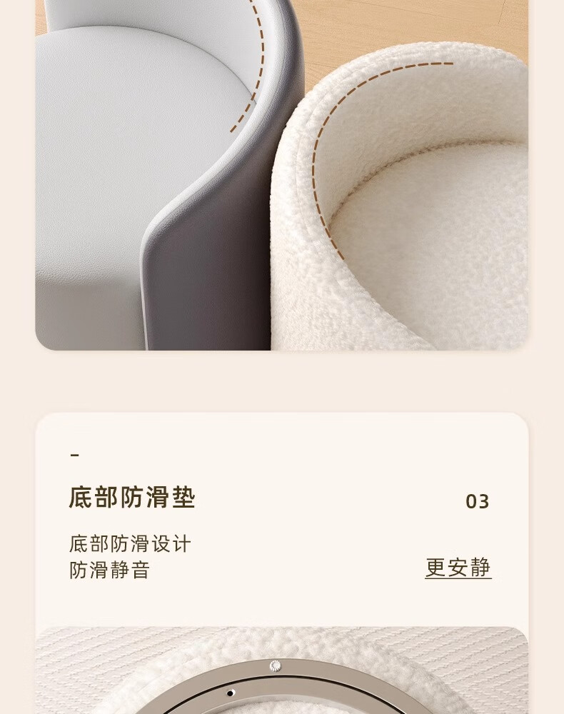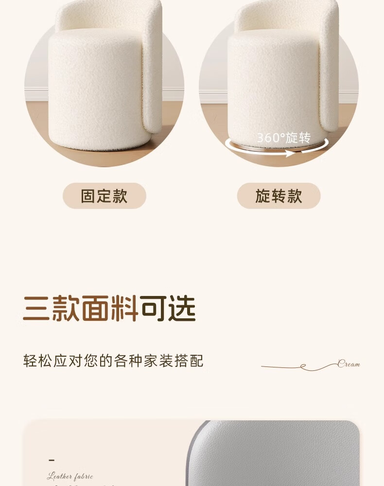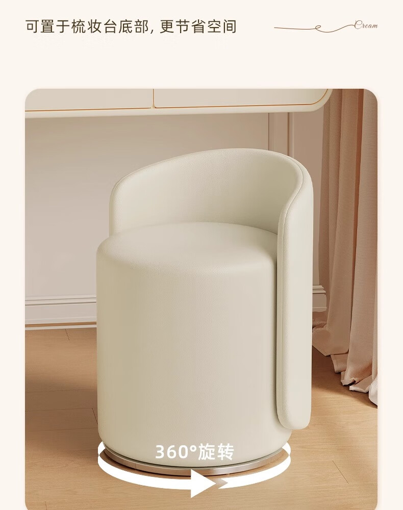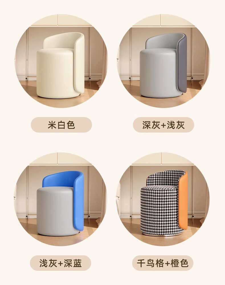 Qili makeup stool backrest, high-end dressing table stool, light luxury round stool, soft bag, simple makeup chair for bedroom, swivel stool, dark and light gray, premium PU leather, no rotation