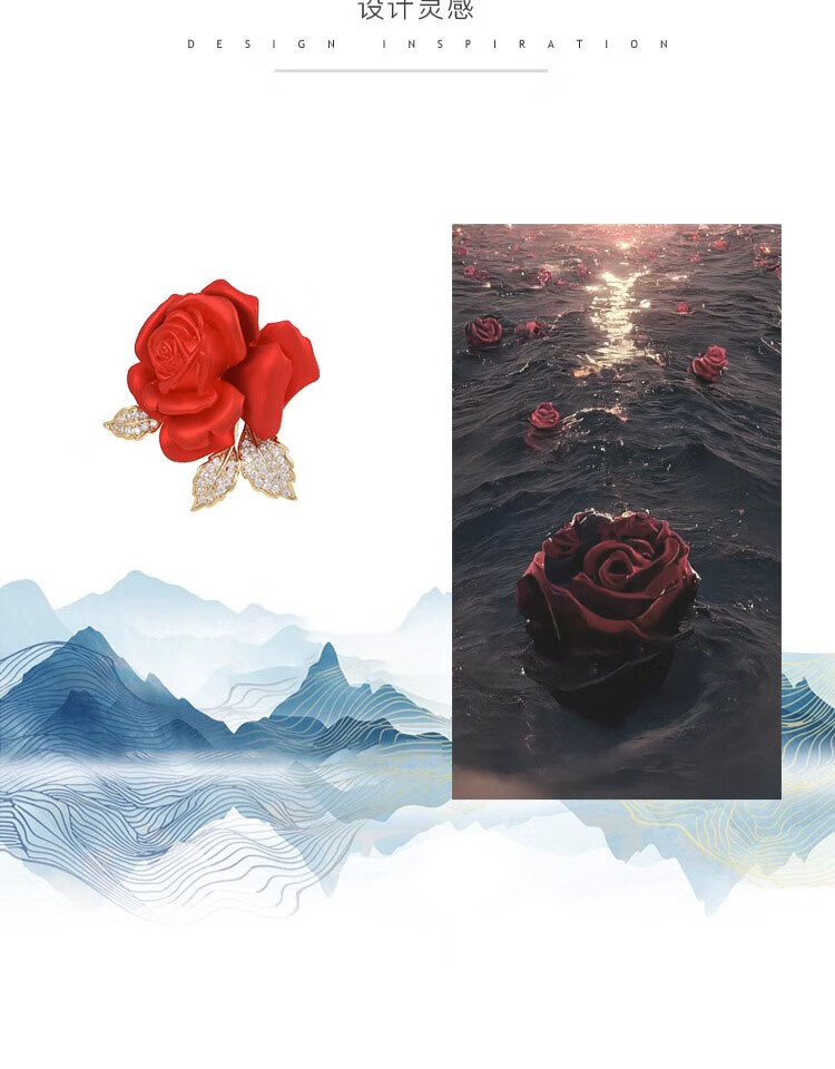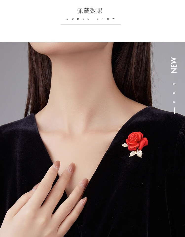 VISIT red rose brooch for women, light luxury, exquisite suit with gift gfn red flower gtrd