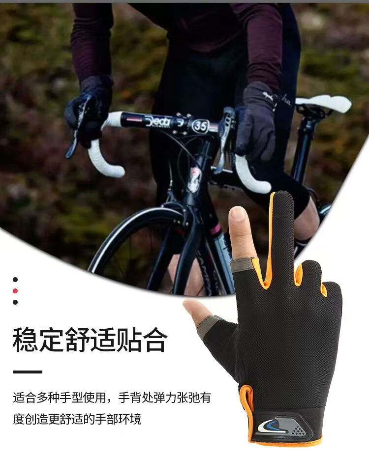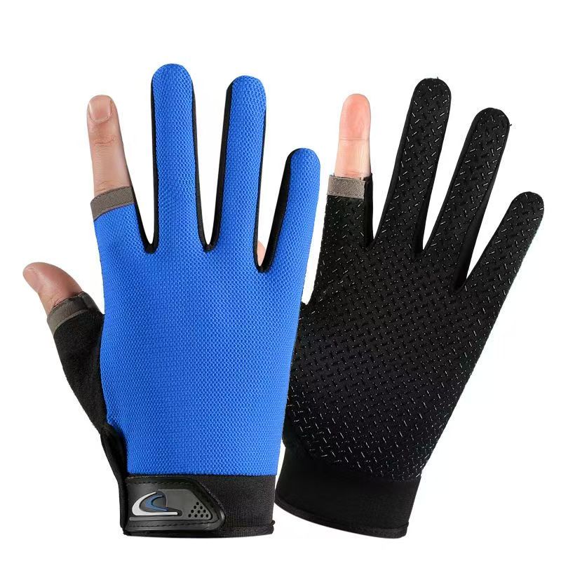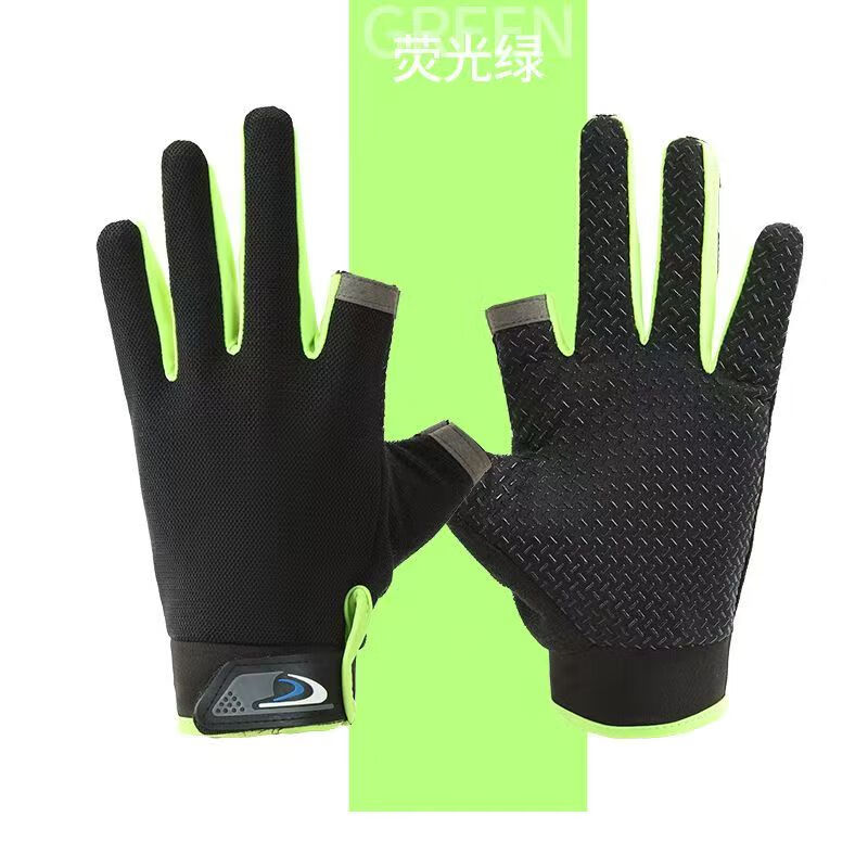 Fishing two-and-a-half-finger style sun protection anti-slip outdoor thin gloves breathable touch screen sports cycling gloves black two-finger style one size fits all 1 pair