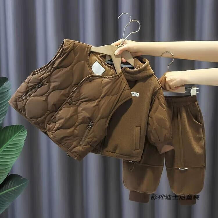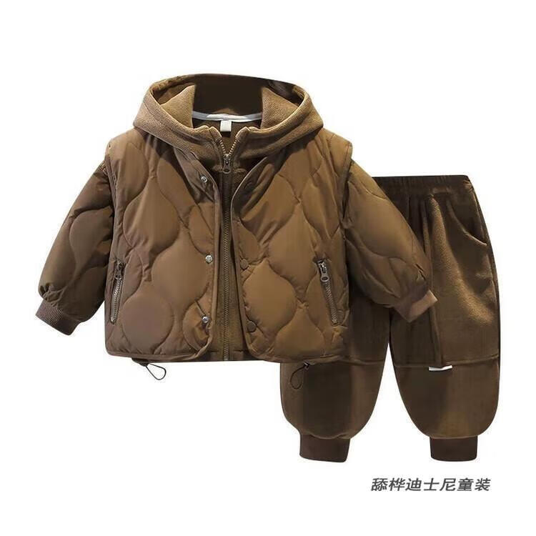 Disney Boys Autumn and Winter Cotton Clothes Set 2025 New 1-9 Years Old Children's Vest Three-piece Set Winter Thickened Clothes for Outerwear Gray Winter Thickened Three-piece Set 100