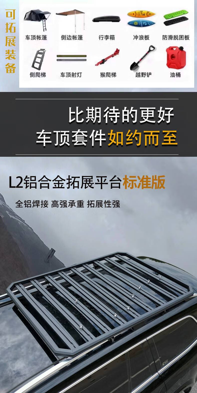 Suitable for Geely Galaxy L7E5 Ruilan 9 Yipai 008 special roof rack expansion platform SUV modification frame L2 platform 2.0m aluminum alloy sunroof version+