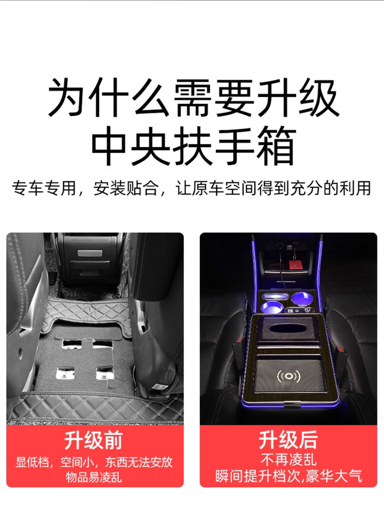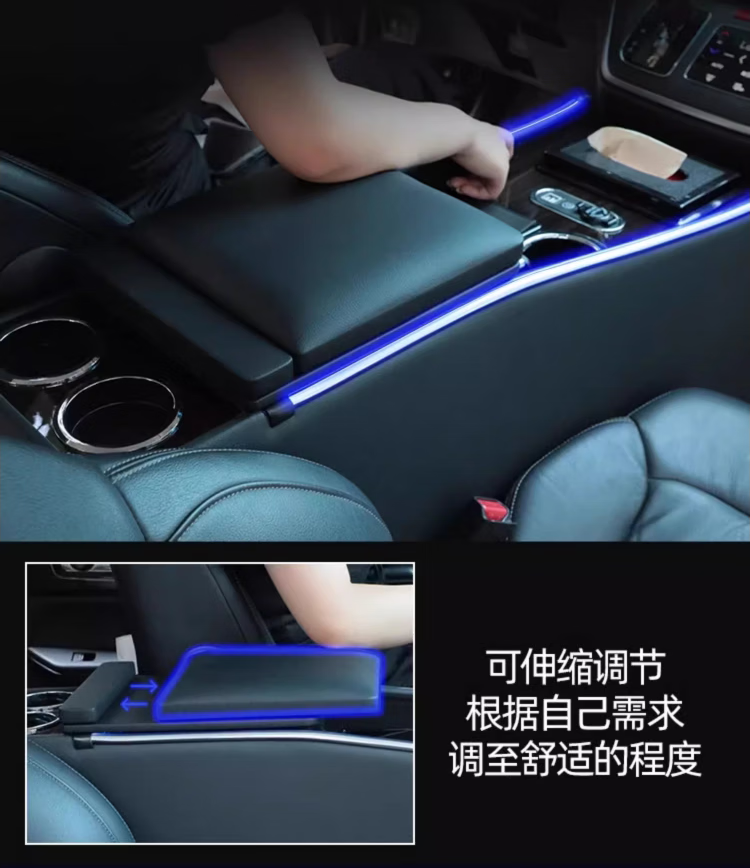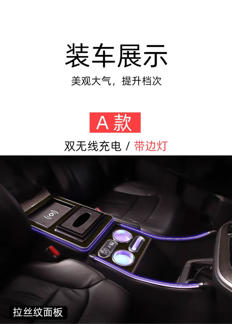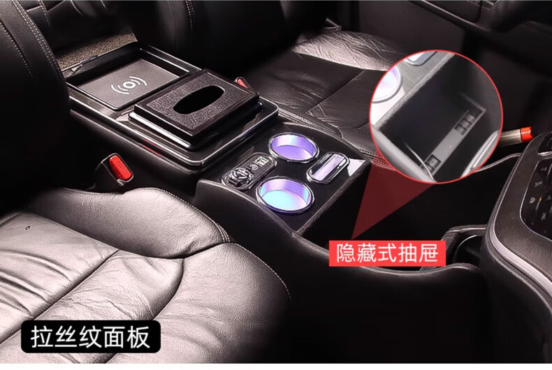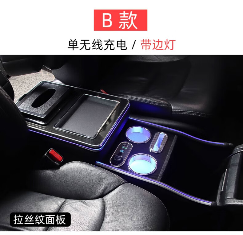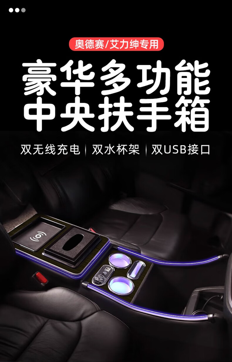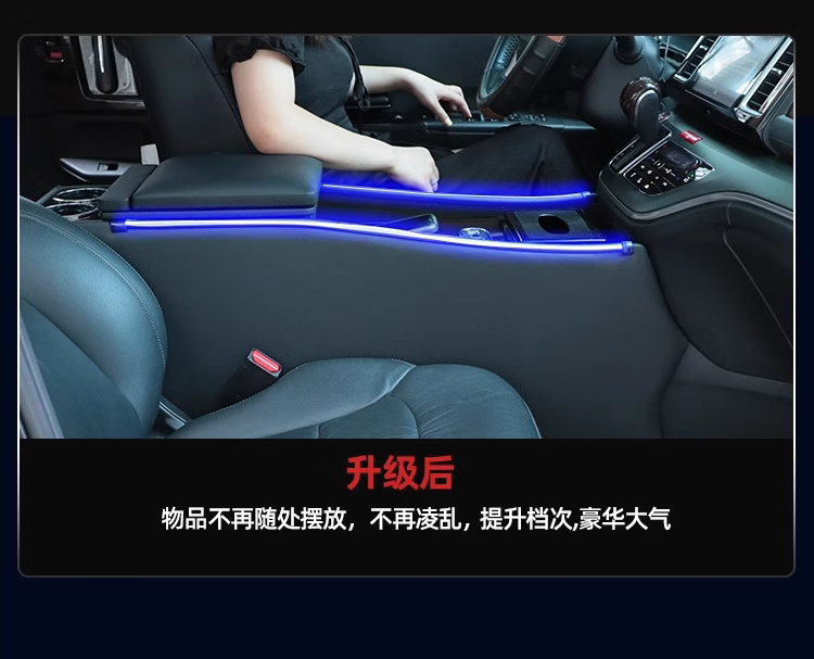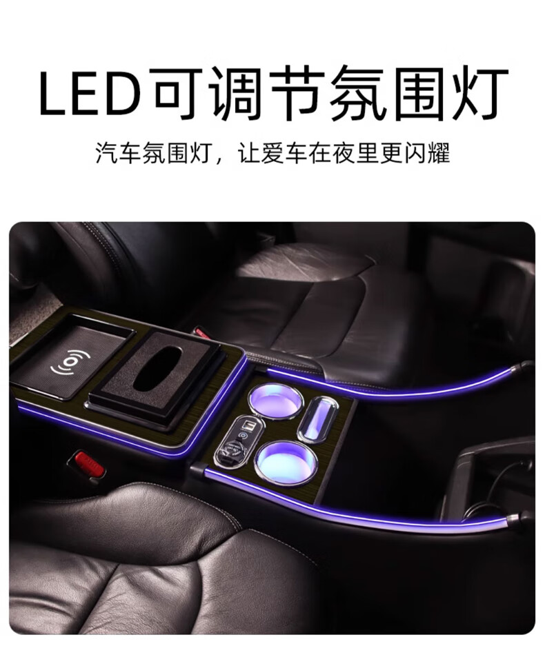 Qianzhong Odyssey armrest box, Alison car armrest box, punch-free center channel storage box interior modification parts, heightened version, brushed black - wireless charging + side lights, special car