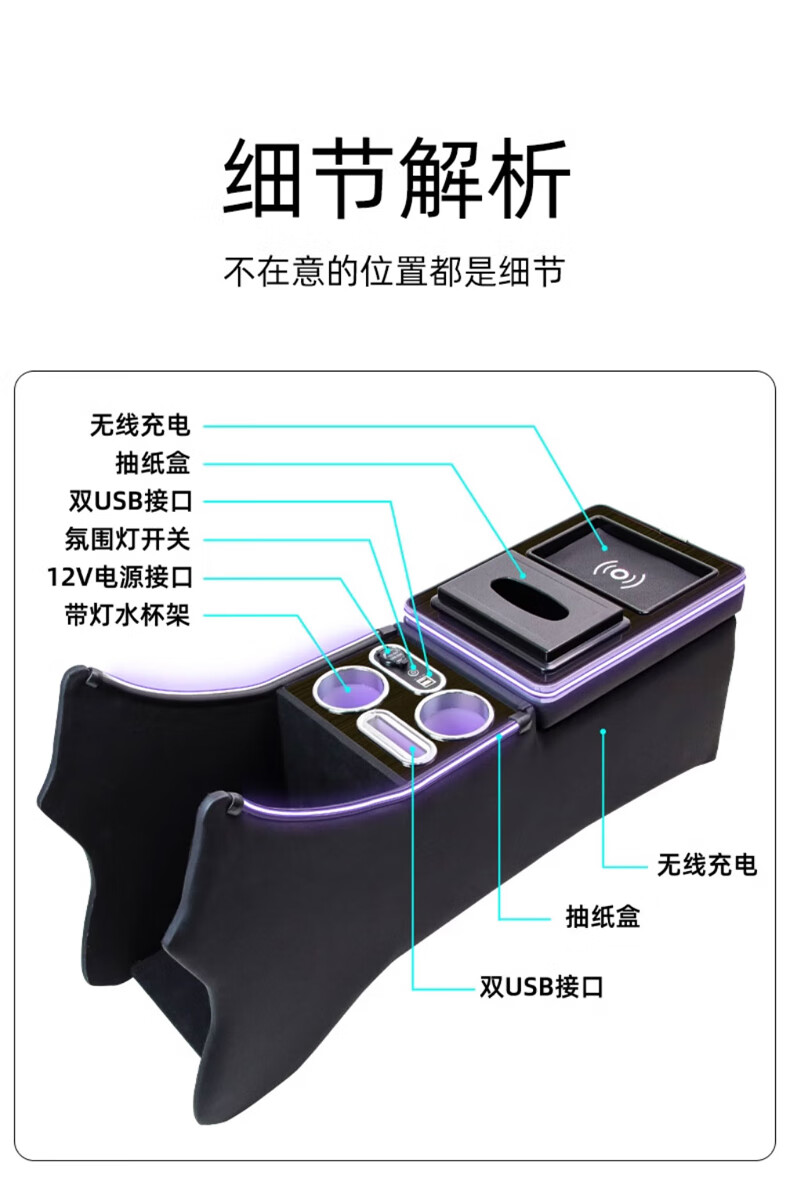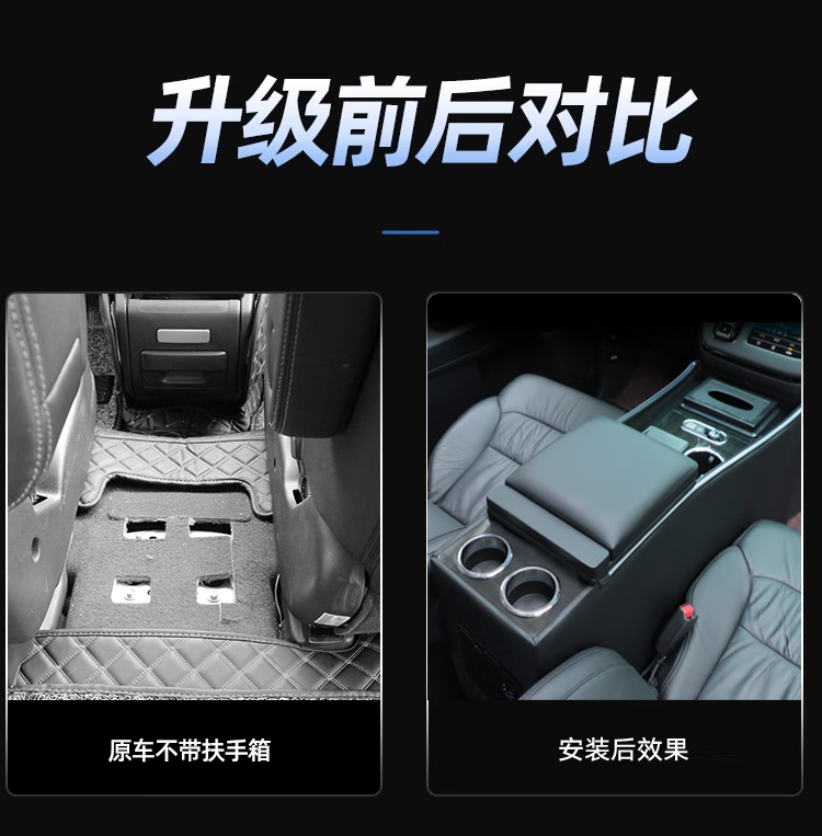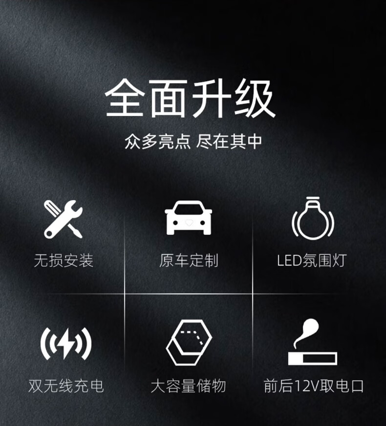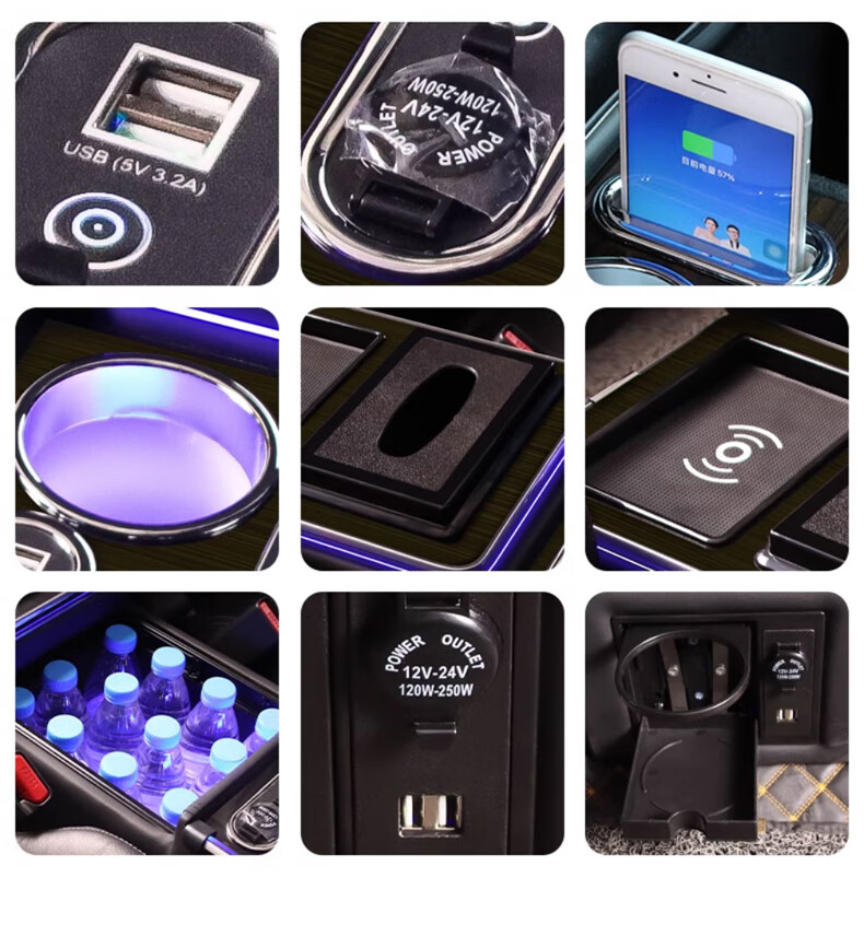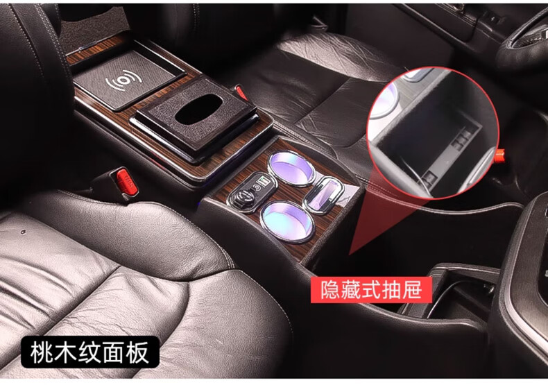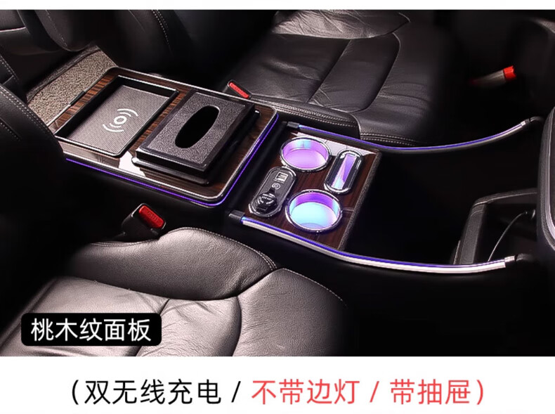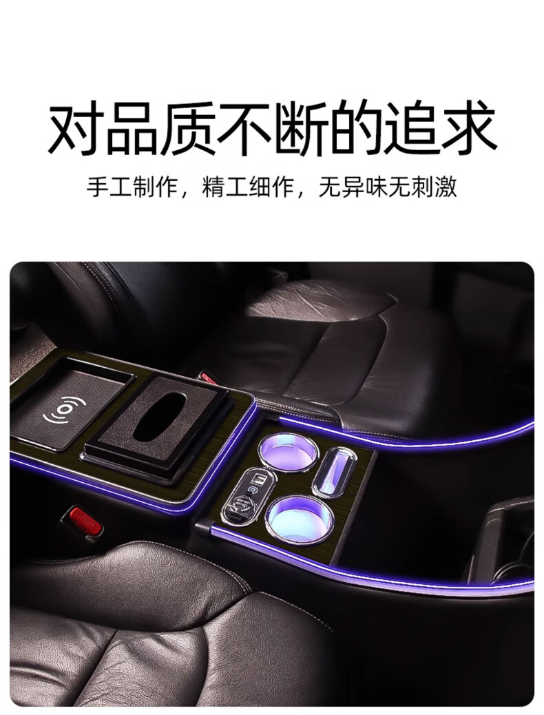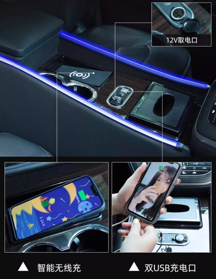 Qianzhong Odyssey armrest box, Alison car armrest box, punch-free center channel storage box interior modification parts, heightened version, brushed black - wireless charging + side lights, special car
