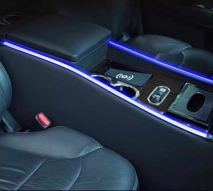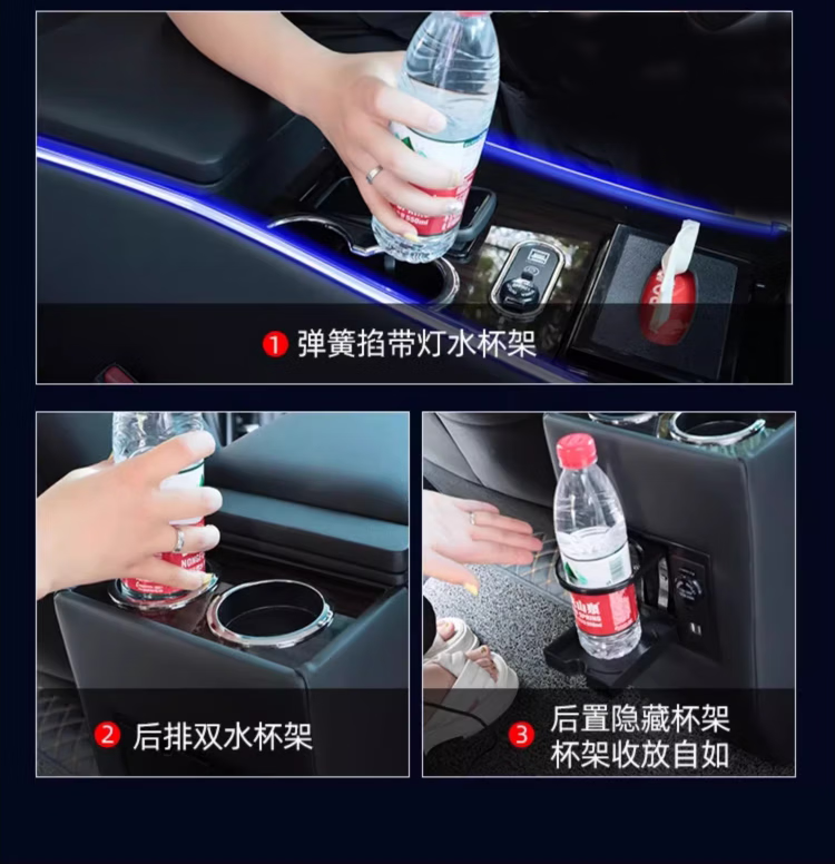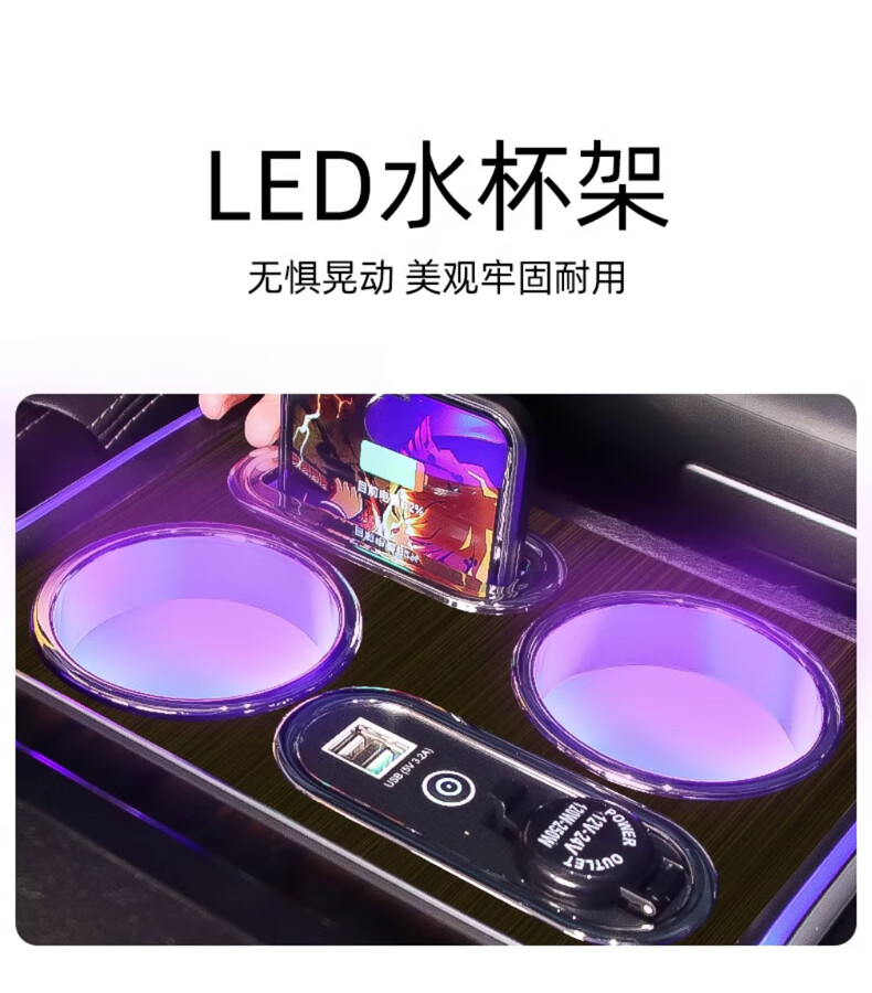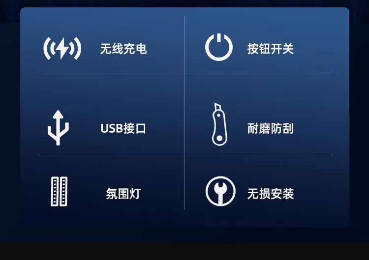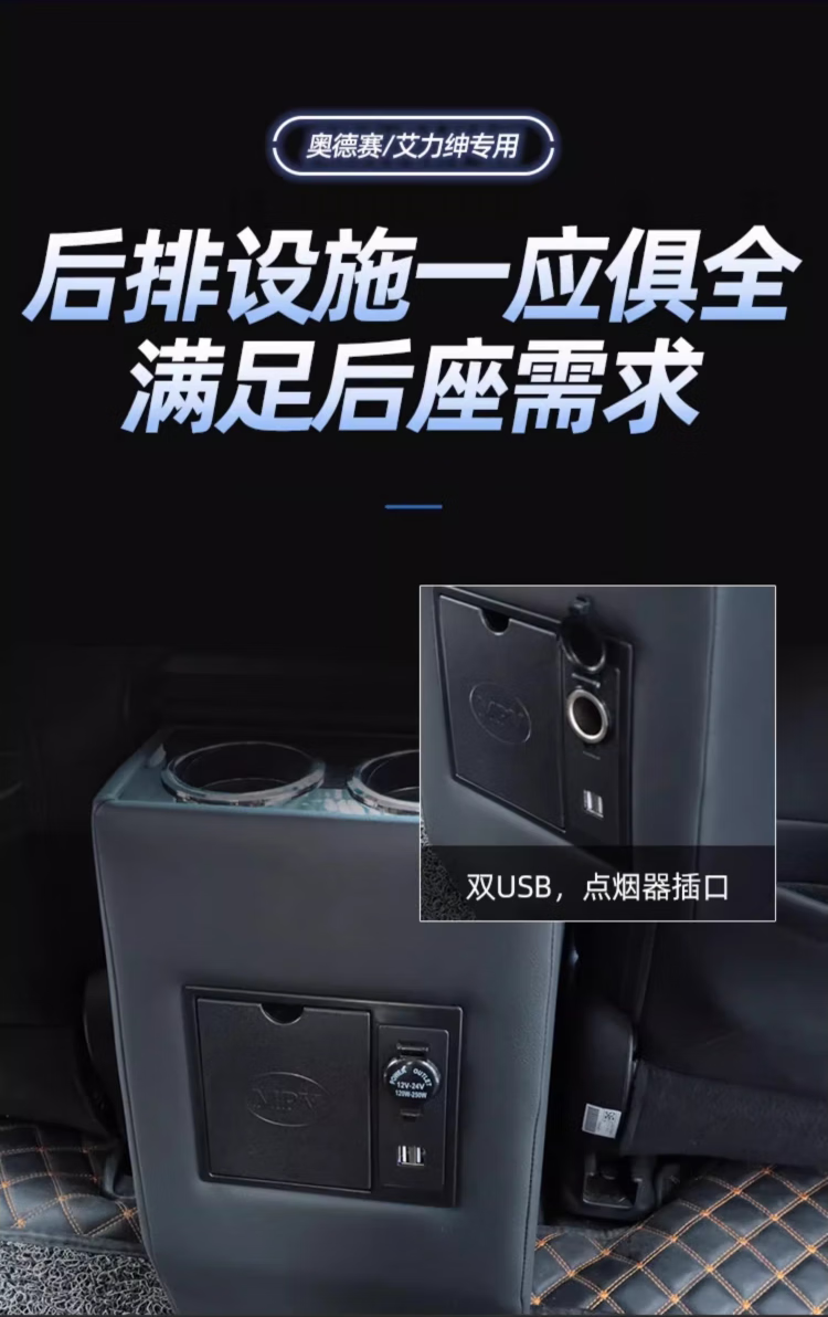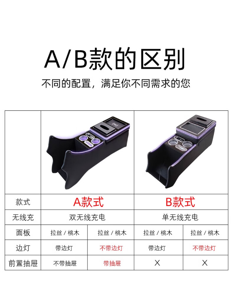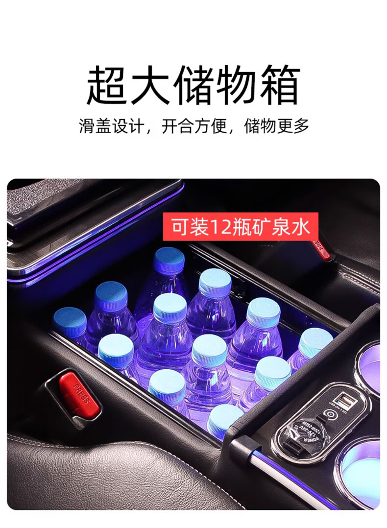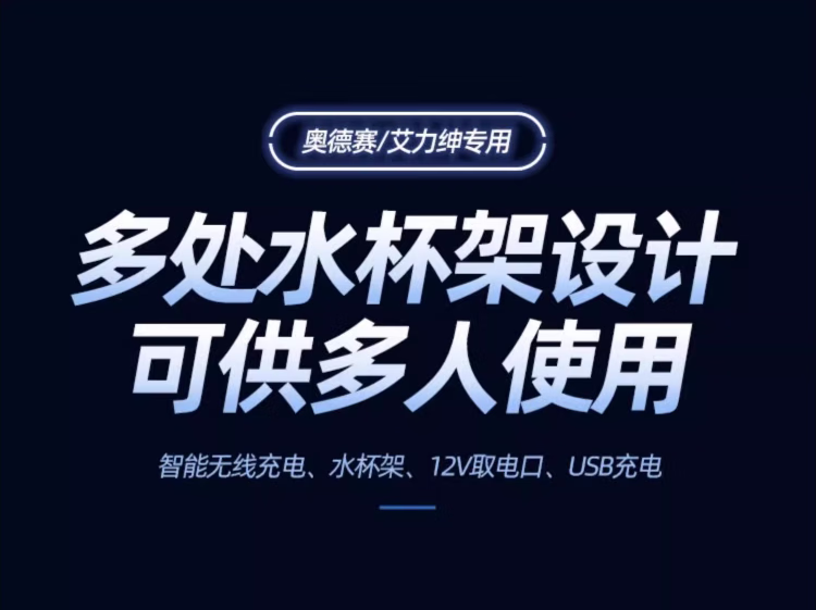 Qianzhong Odyssey armrest box, Alison car armrest box, punch-free center channel storage box interior modification parts, heightened version, brushed black - wireless charging + side lights, special car