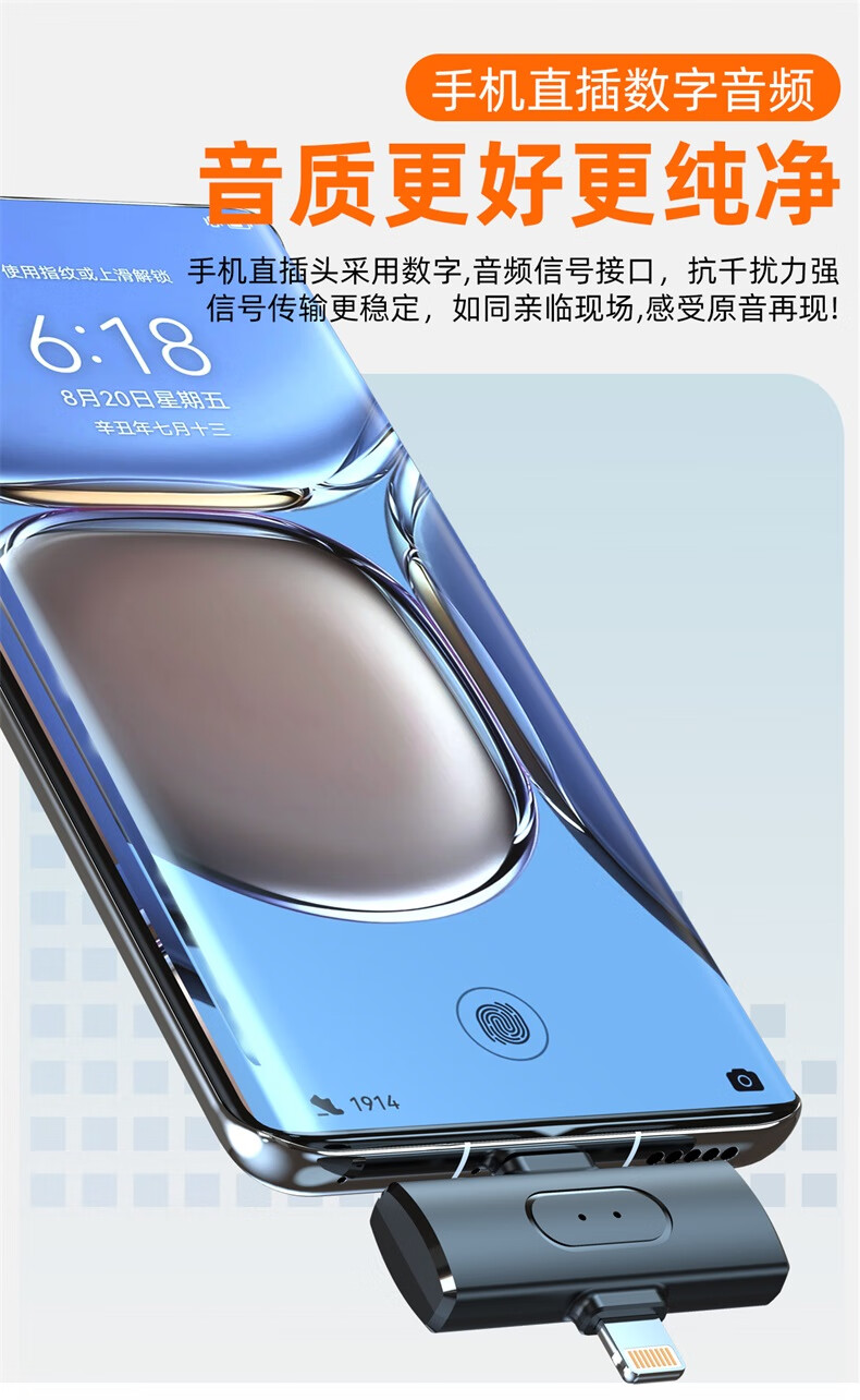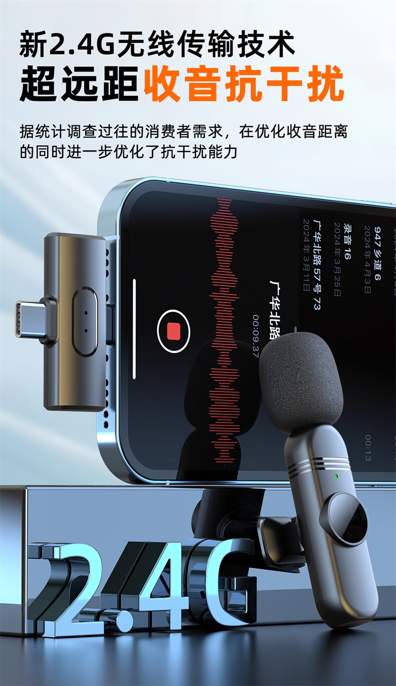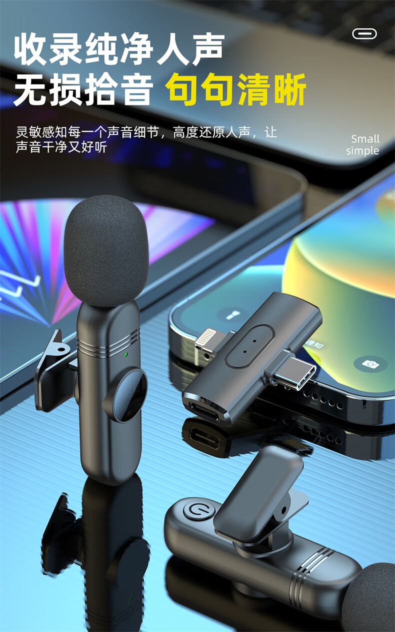 Pinshi two-in-one interface wireless lavalier radio microphone mobile phone live recording Bluetooth microphone Vlog outdoor interview short video suitable for Apple Android camera three-in-one two-person flagship version ENC noise reduction (Apple Android SLR)