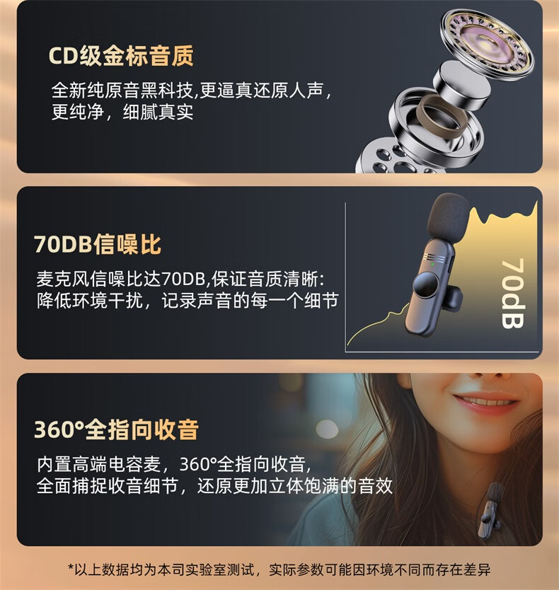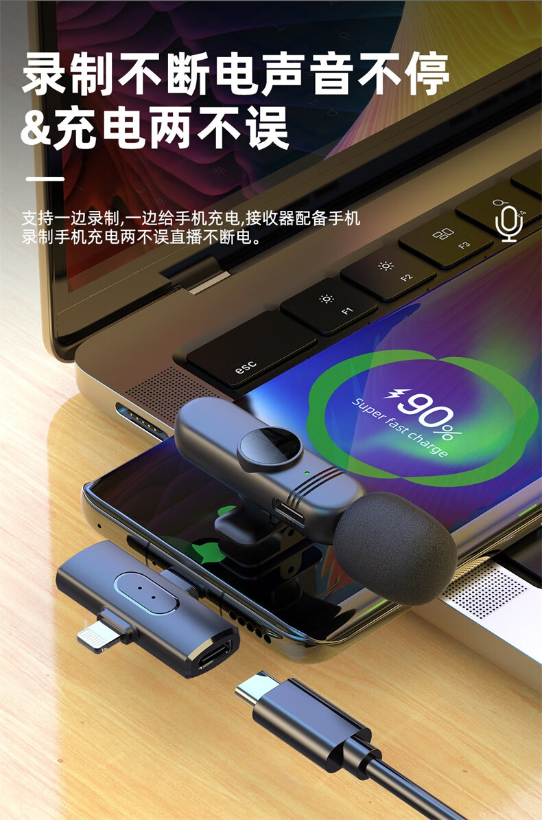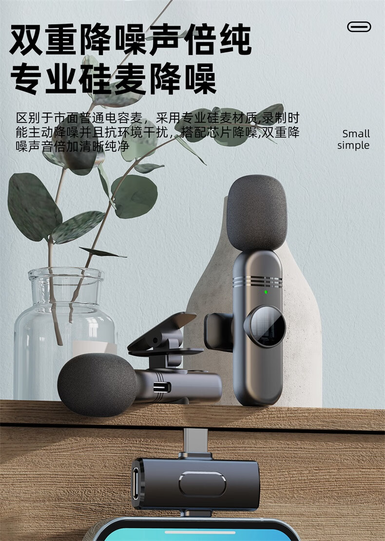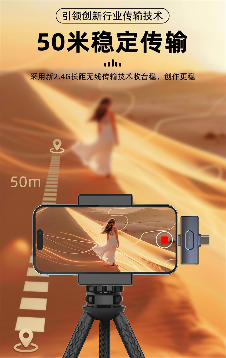 Pinshi two-in-one interface wireless lavalier radio microphone mobile phone live recording Bluetooth microphone Vlog outdoor interview short video suitable for Apple Android camera three-in-one two-person flagship version ENC noise reduction (Apple Android SLR)
