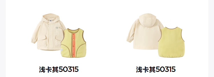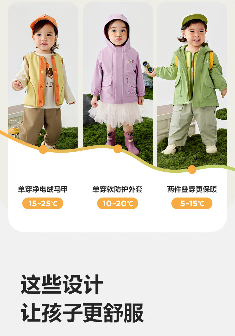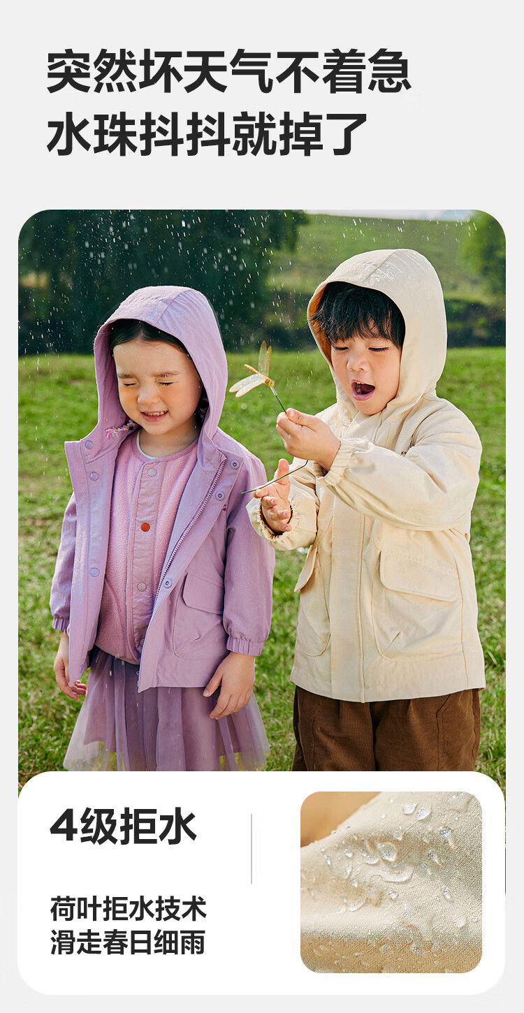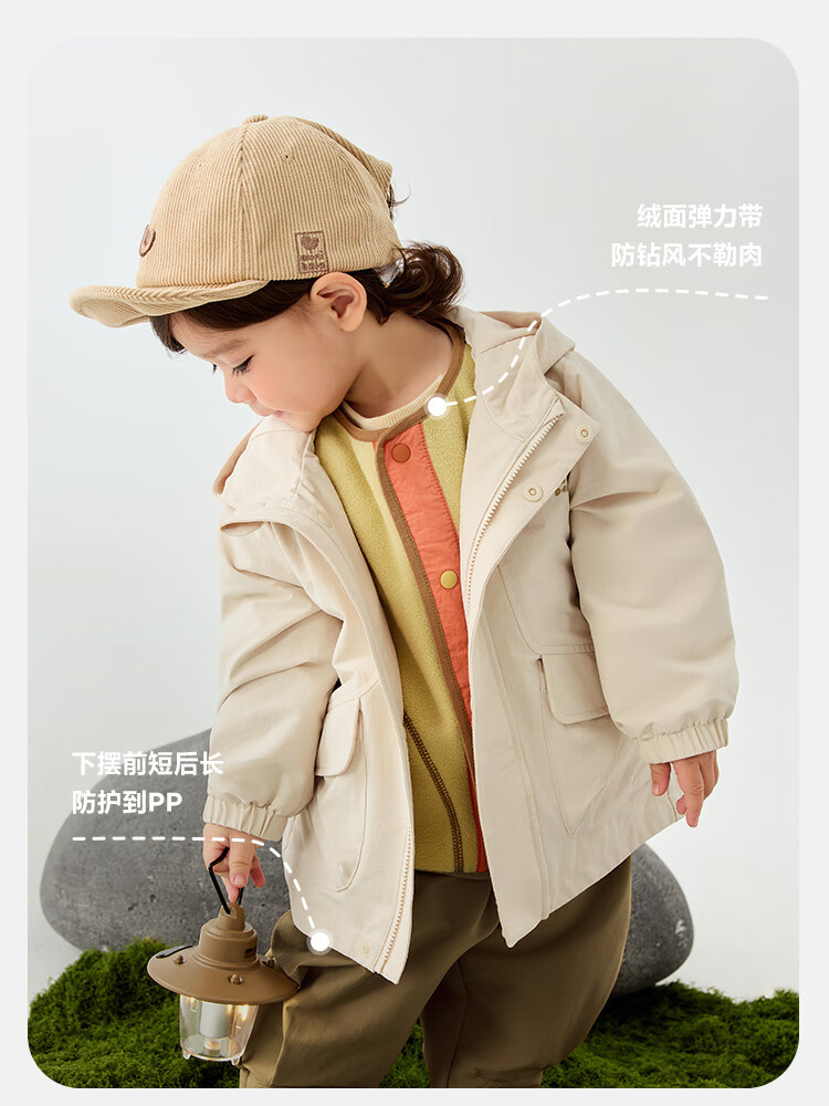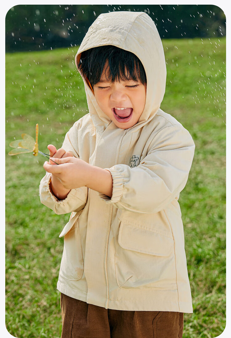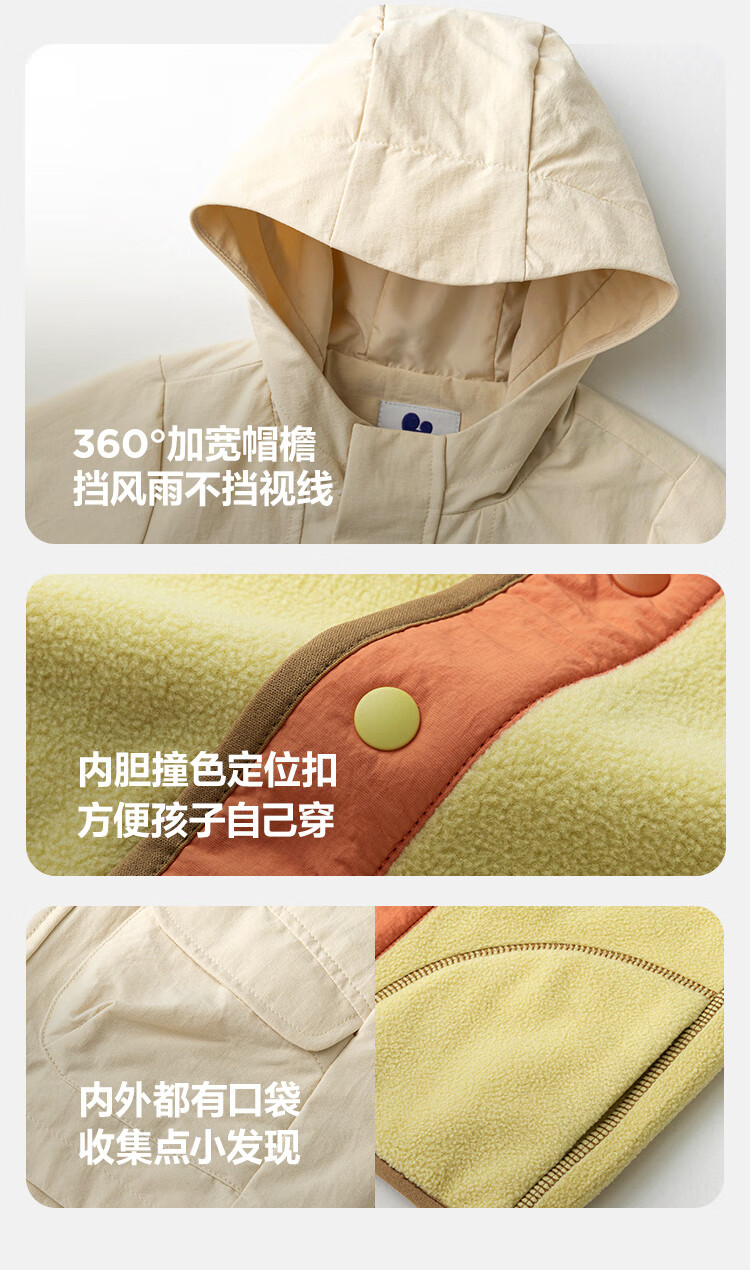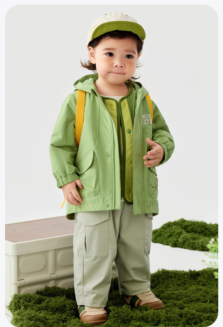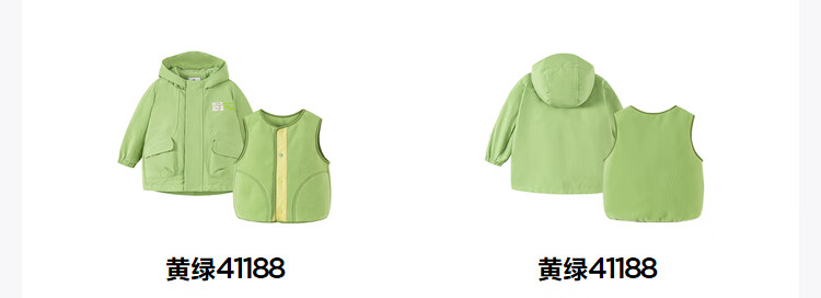 Mini Balabala three-proof hooded two-piece jacket for boys and girls, windproof, warm and skin-friendly jacket, small soft leather, yellow and green 41188 100