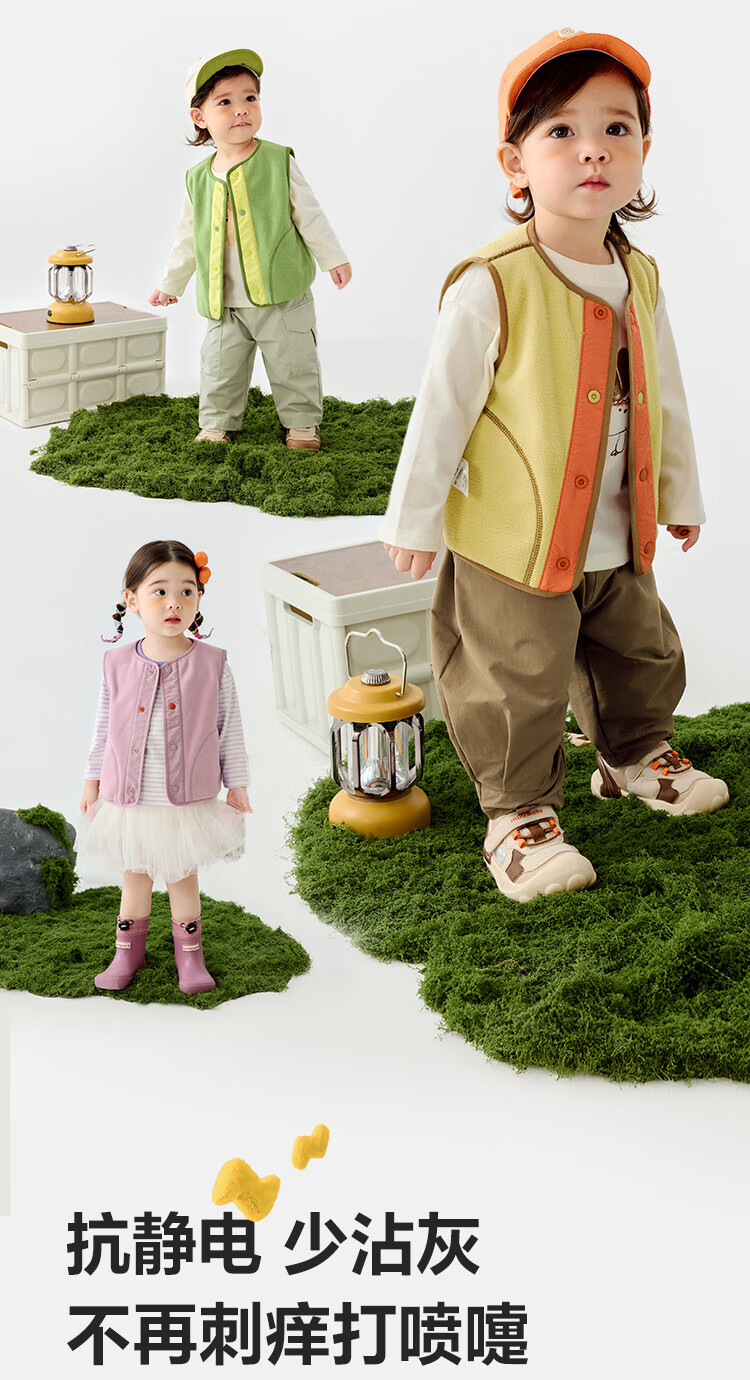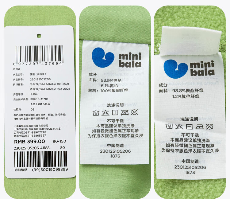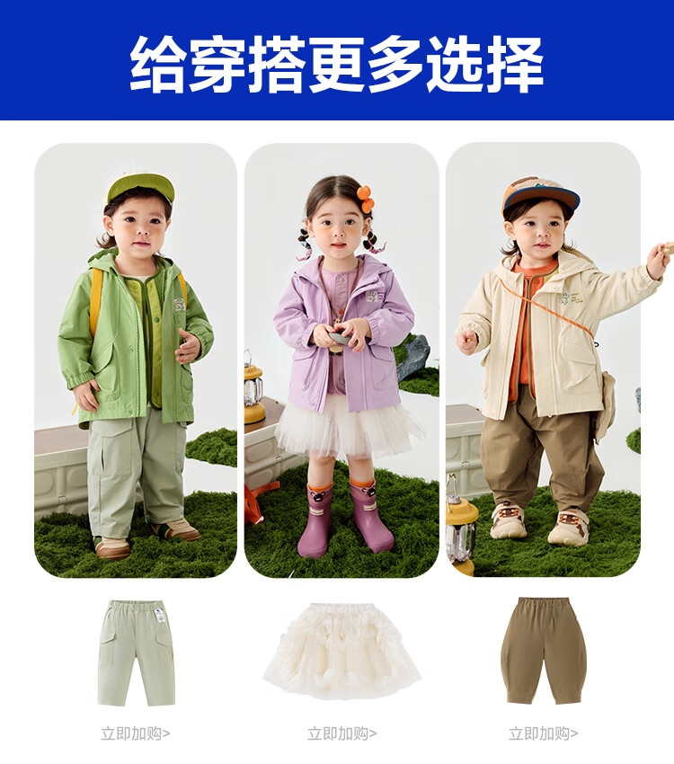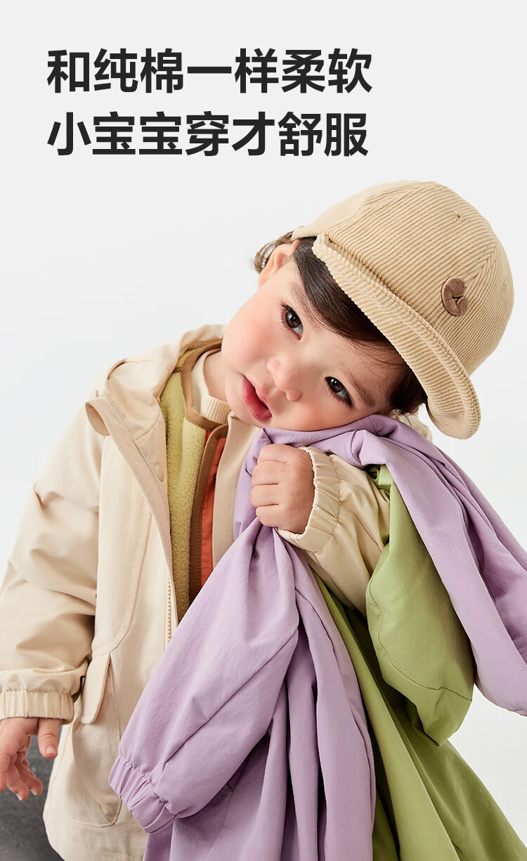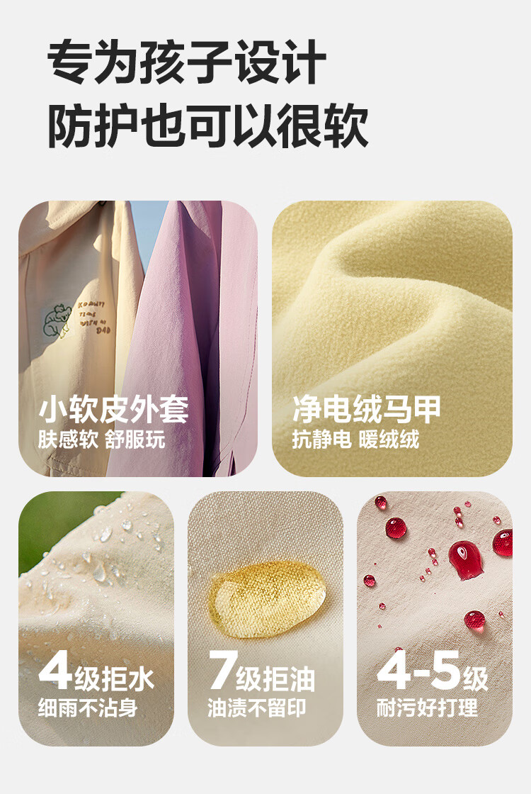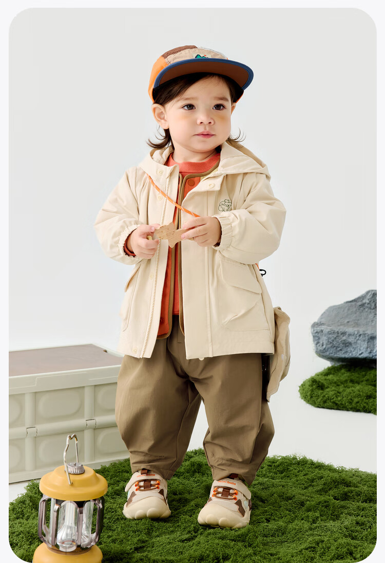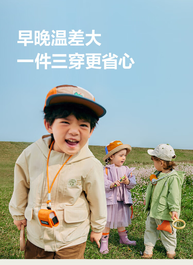 Mini Balabala three-proof hooded two-piece jacket for boys and girls, windproof, warm and skin-friendly jacket, small soft leather, yellow and green 41188 100