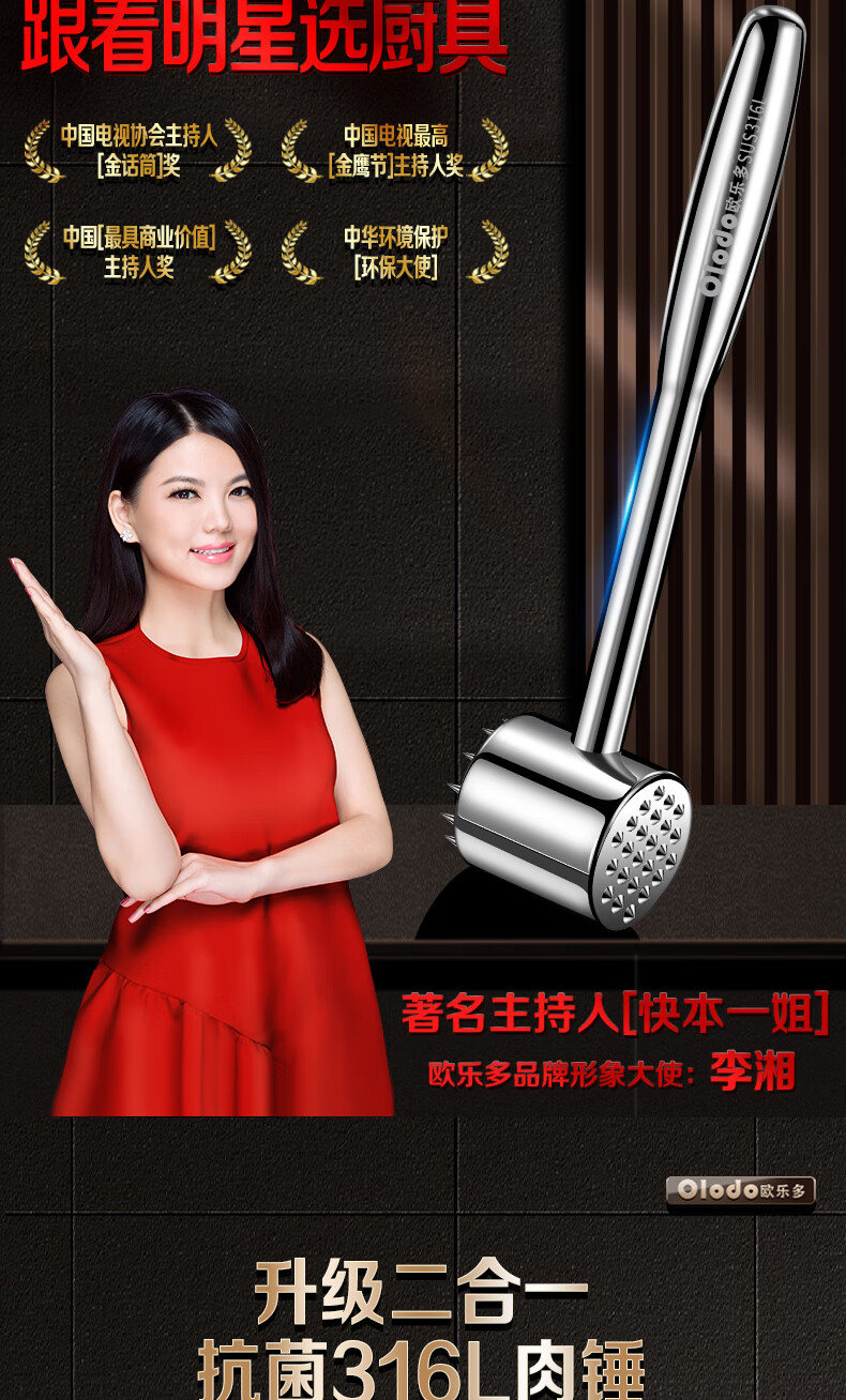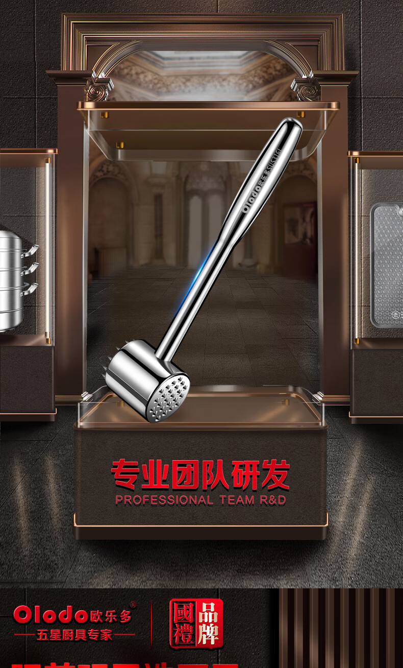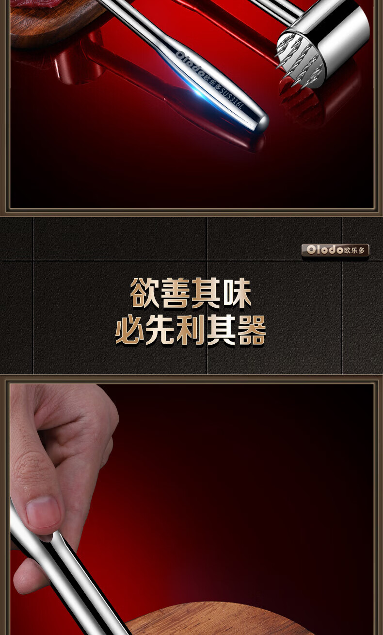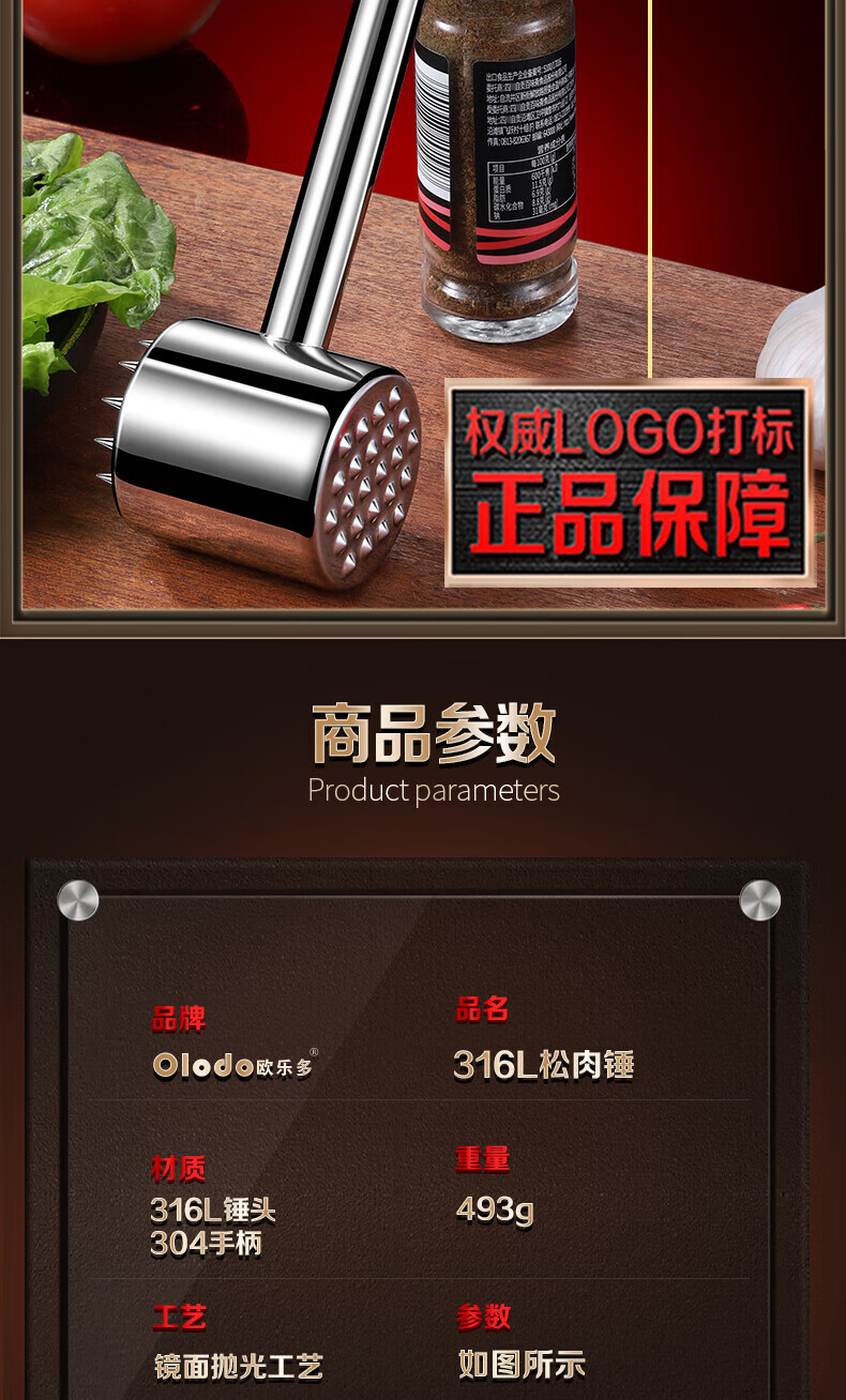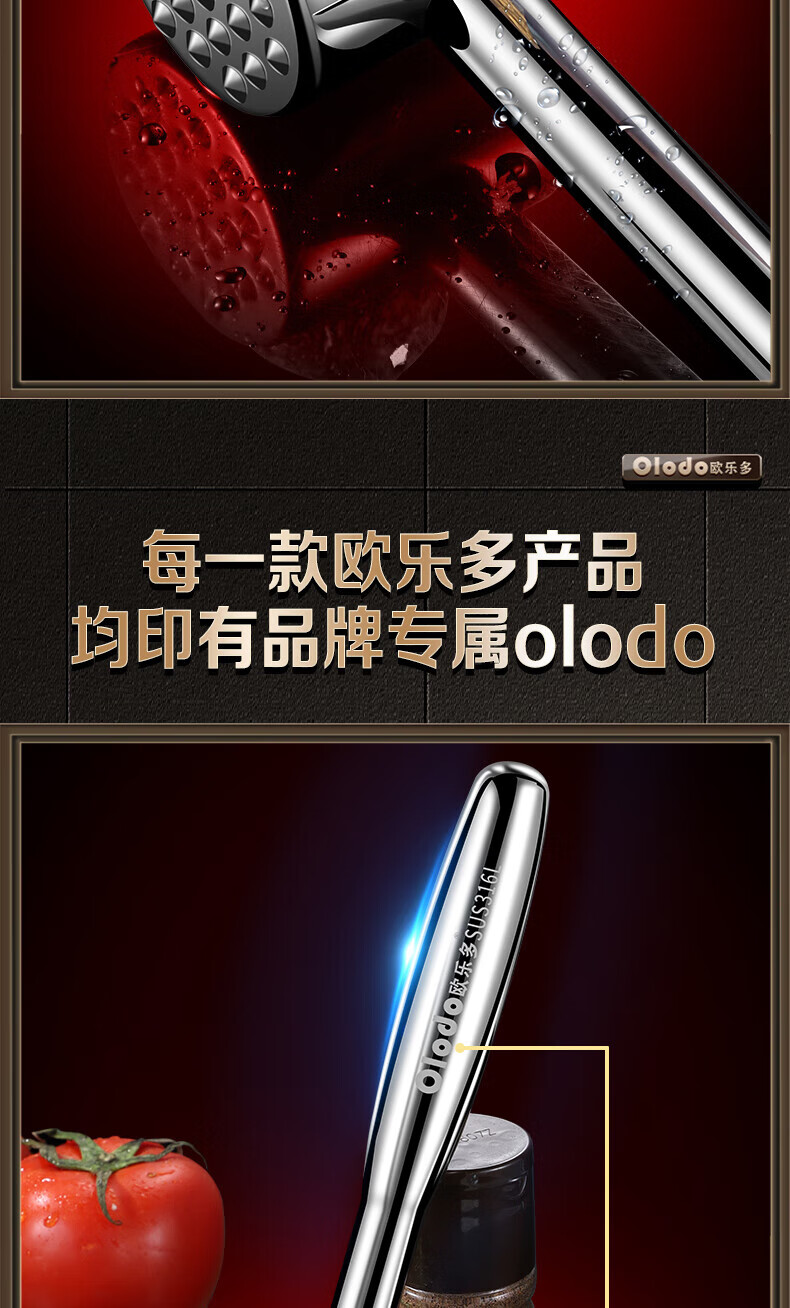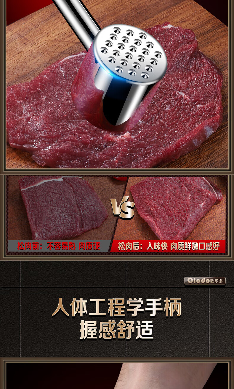 欧乐多(Olodo)316不锈钢肉锤牛排锤松肉锤松肉针双面肉锤加厚优质锤肉器敲肉锤 抗菌316L【19颗尖钉+24颗凸钉】