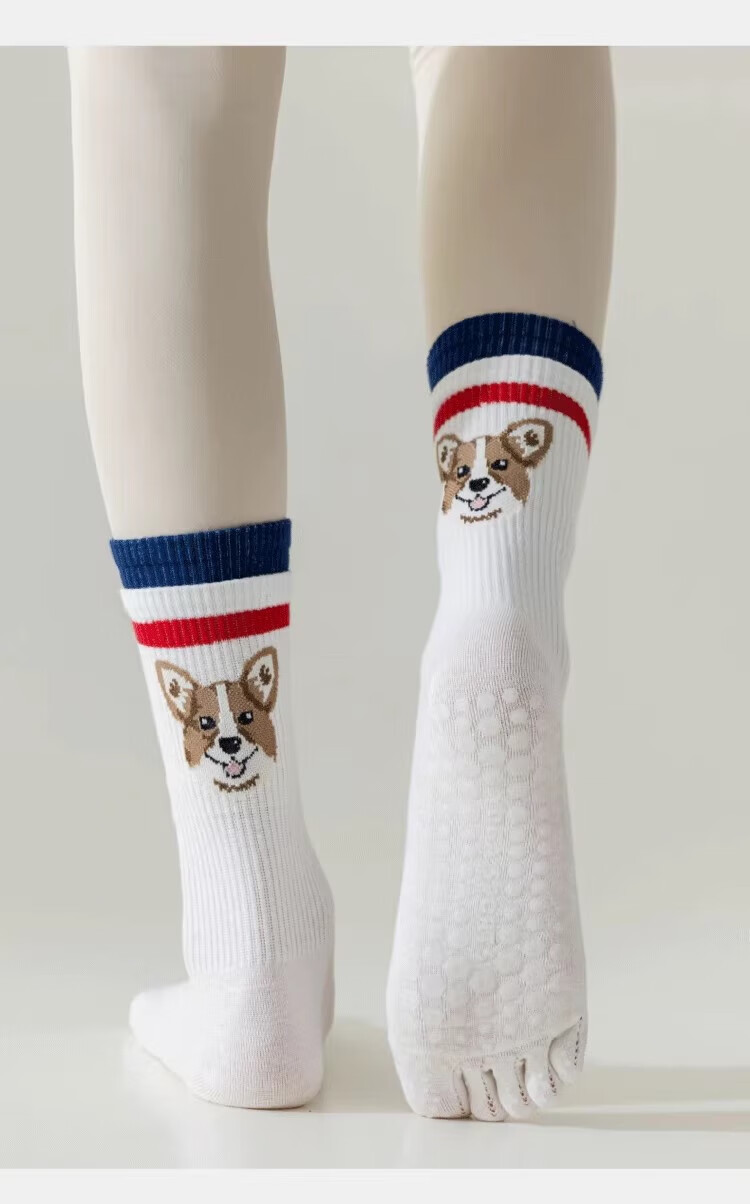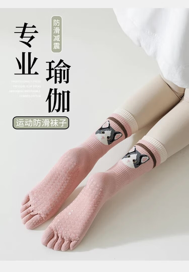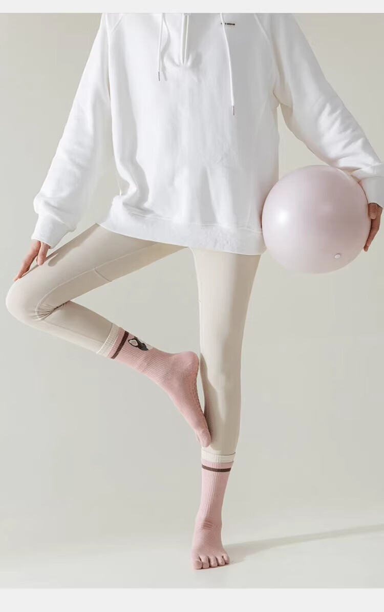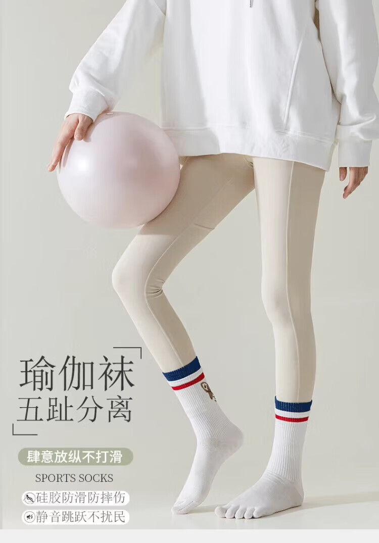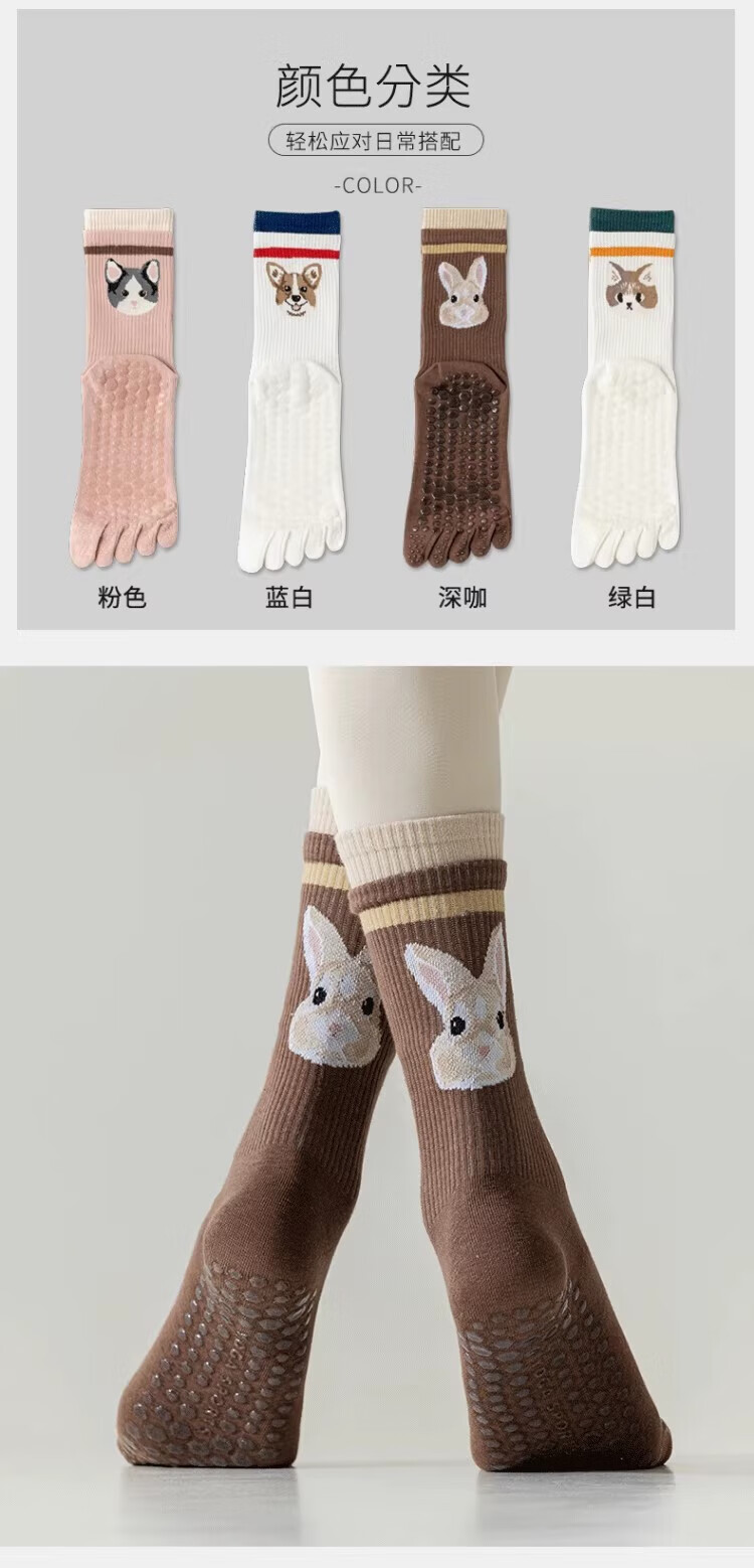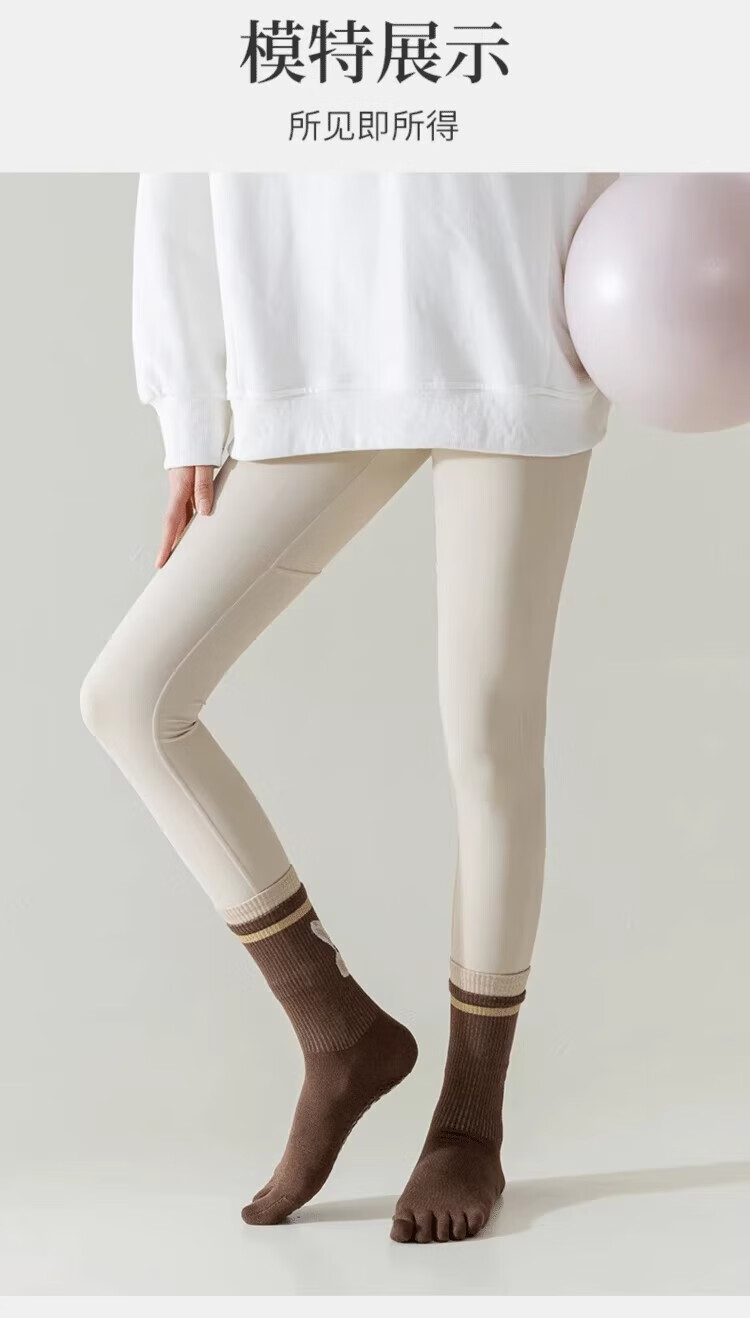LULUUVTTOH yoga women's mid-calf silicone non-slip toe socks Pilates fitness sports split toe socks indoor coffee color no Specifications