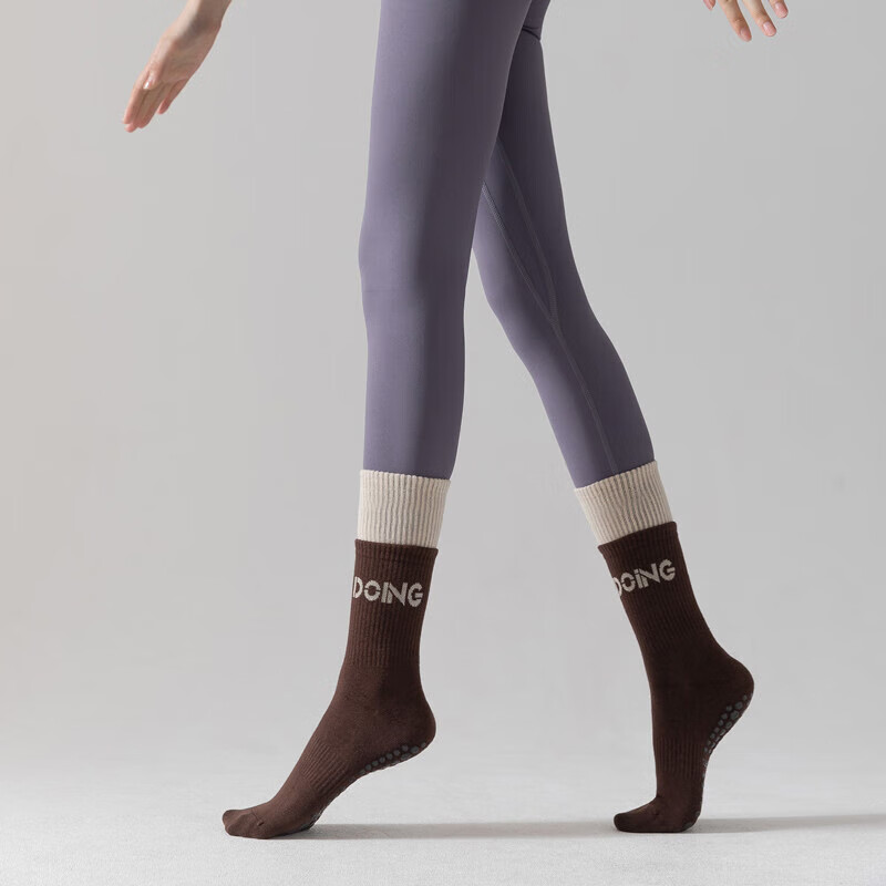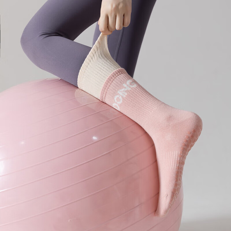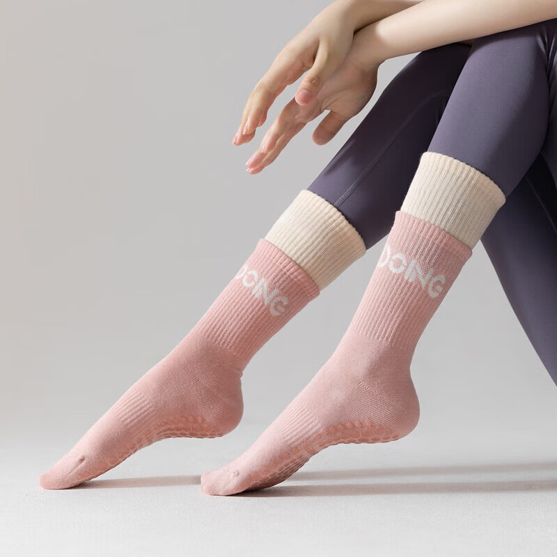 LULUUVTTOH silicone anti-slip yoga socks for women, color-blocked mid-calf socks, pure cotton, indoor fitness, Pilates, calf-high, sports and leisure socks, gray, no Specifications