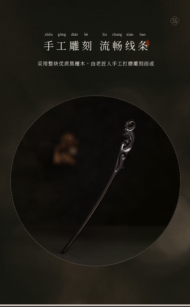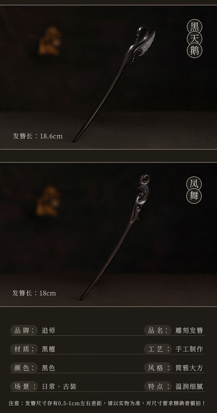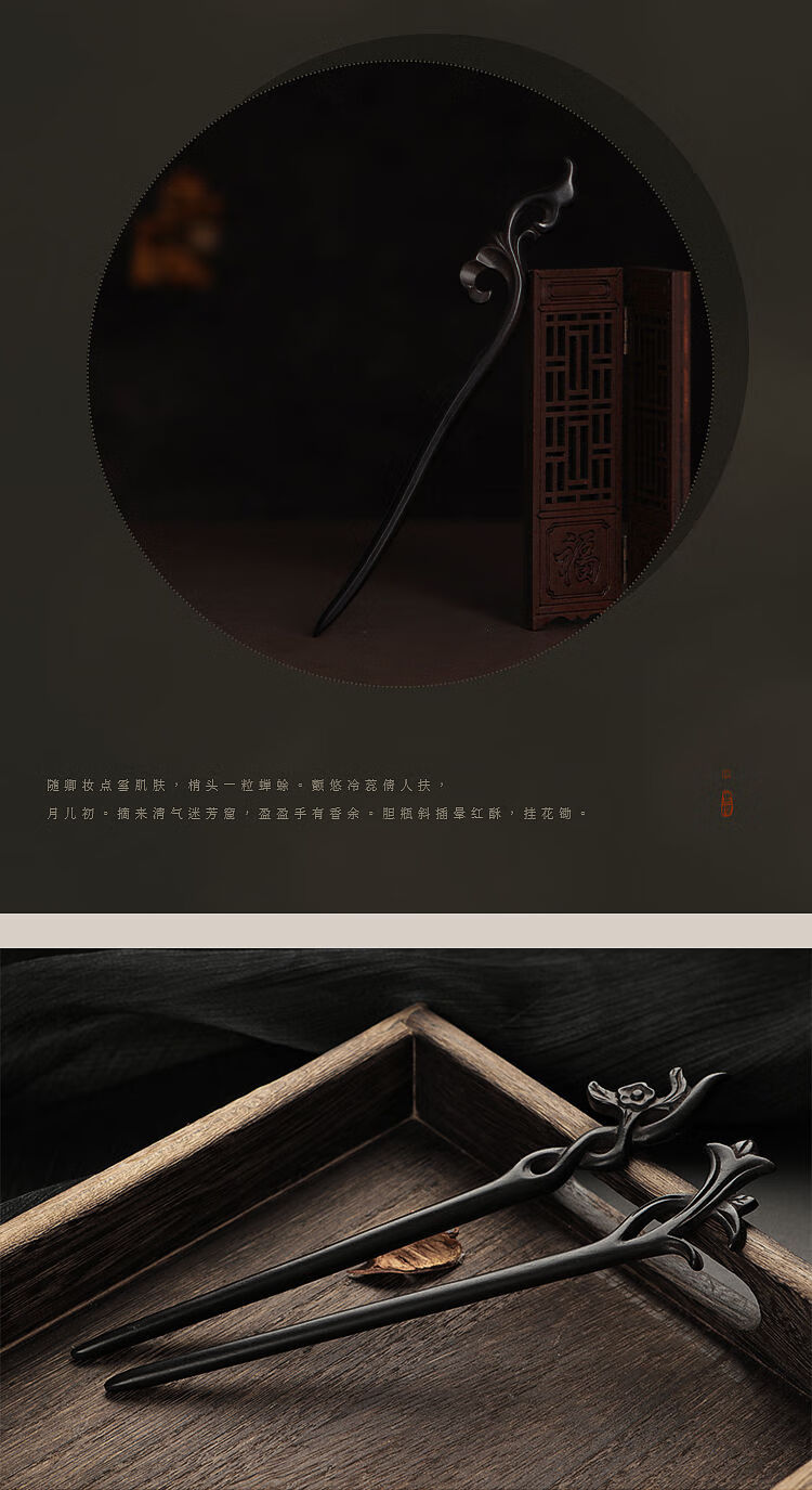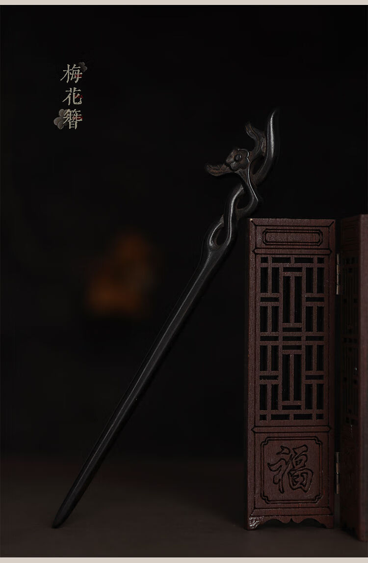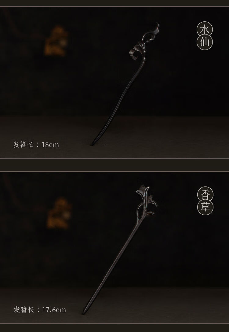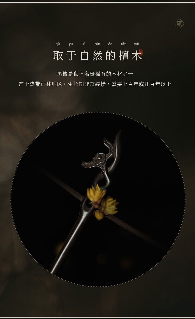 Nanzhi Natural Black Sandalwood Hairpin Ancient Style Women's Wooden New Chinese Style Hairpin High-level Daily Hairpin Wooden Hairpin Golden Branch 18CM Exquisite Gift Box